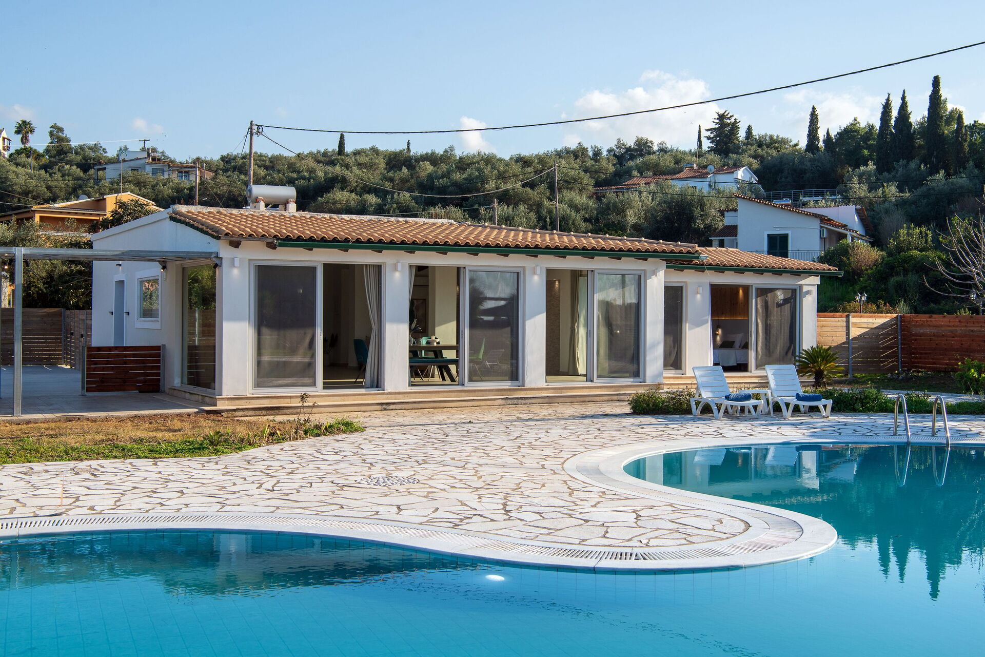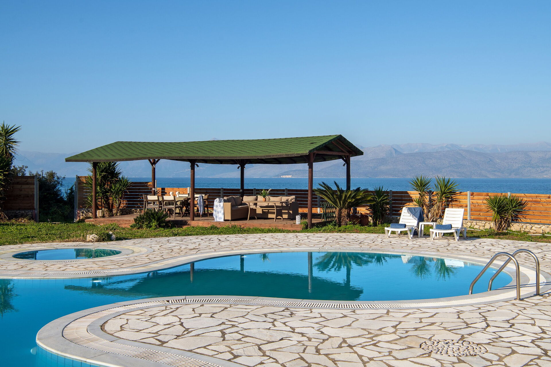 Villa Aurora Blue, lyxvilla med pool i Acharávi på Korfu i Grekland