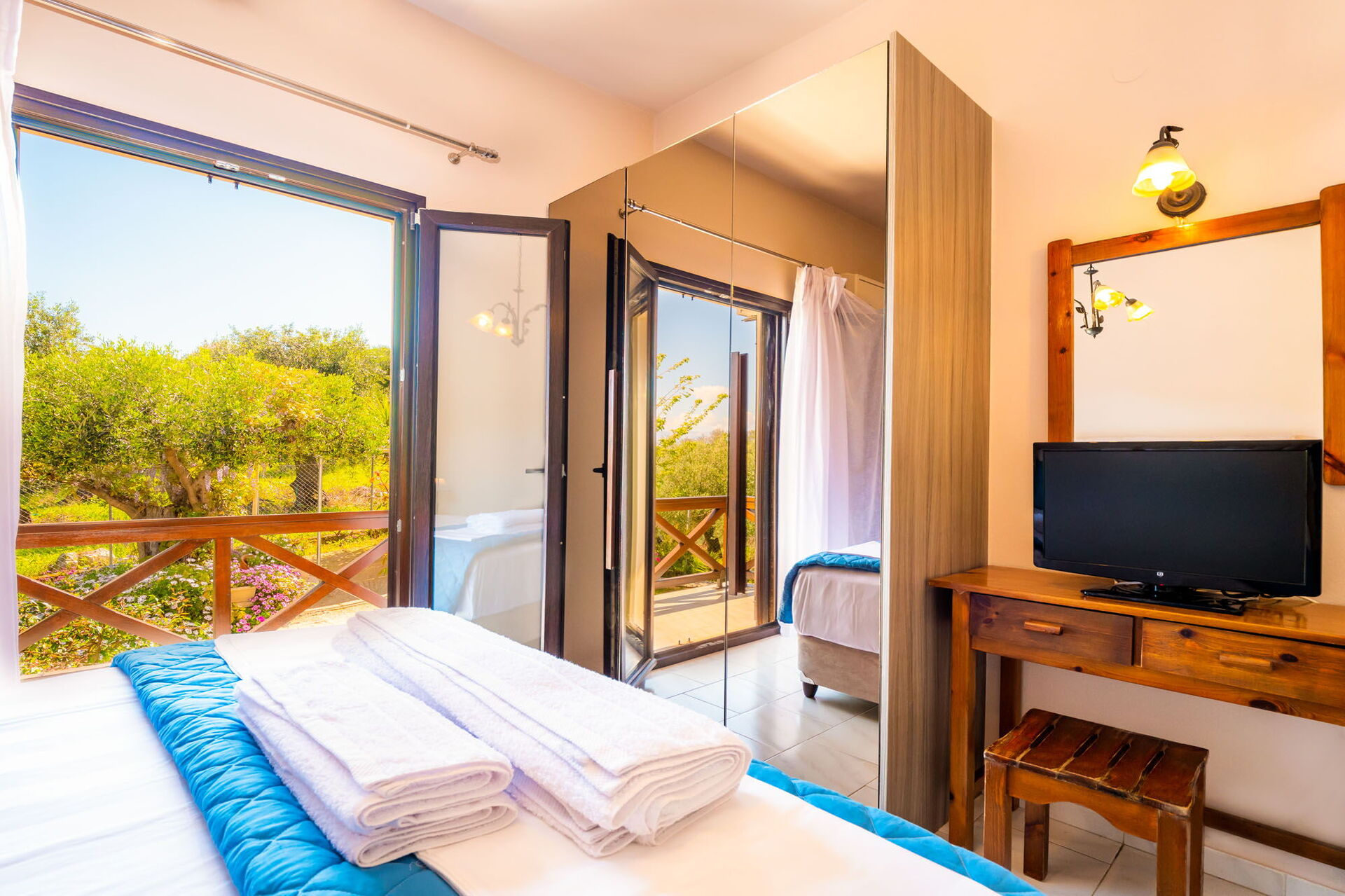 Avstånd: havet 400 meter bort (Agios Spyridon-stranden), Acharavi (butiker av alla slag) 5 km, Kassiopi 7 km, Palaiokastritsa 40 km, Korfu stad 43 km, flygplats 45 km.