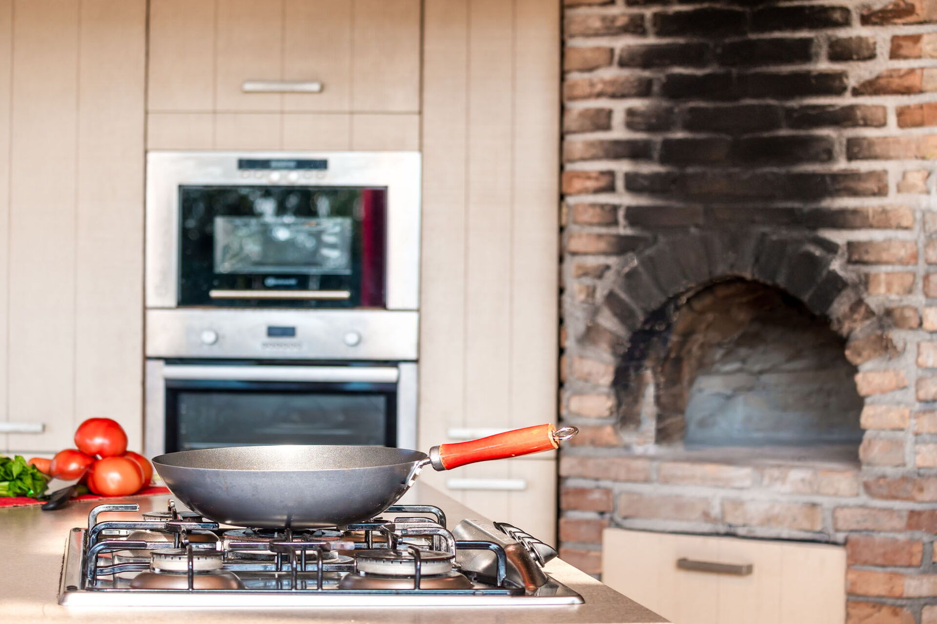- stort privat utomhusutrymme utrustat med kök, grill och vedeldad ugn