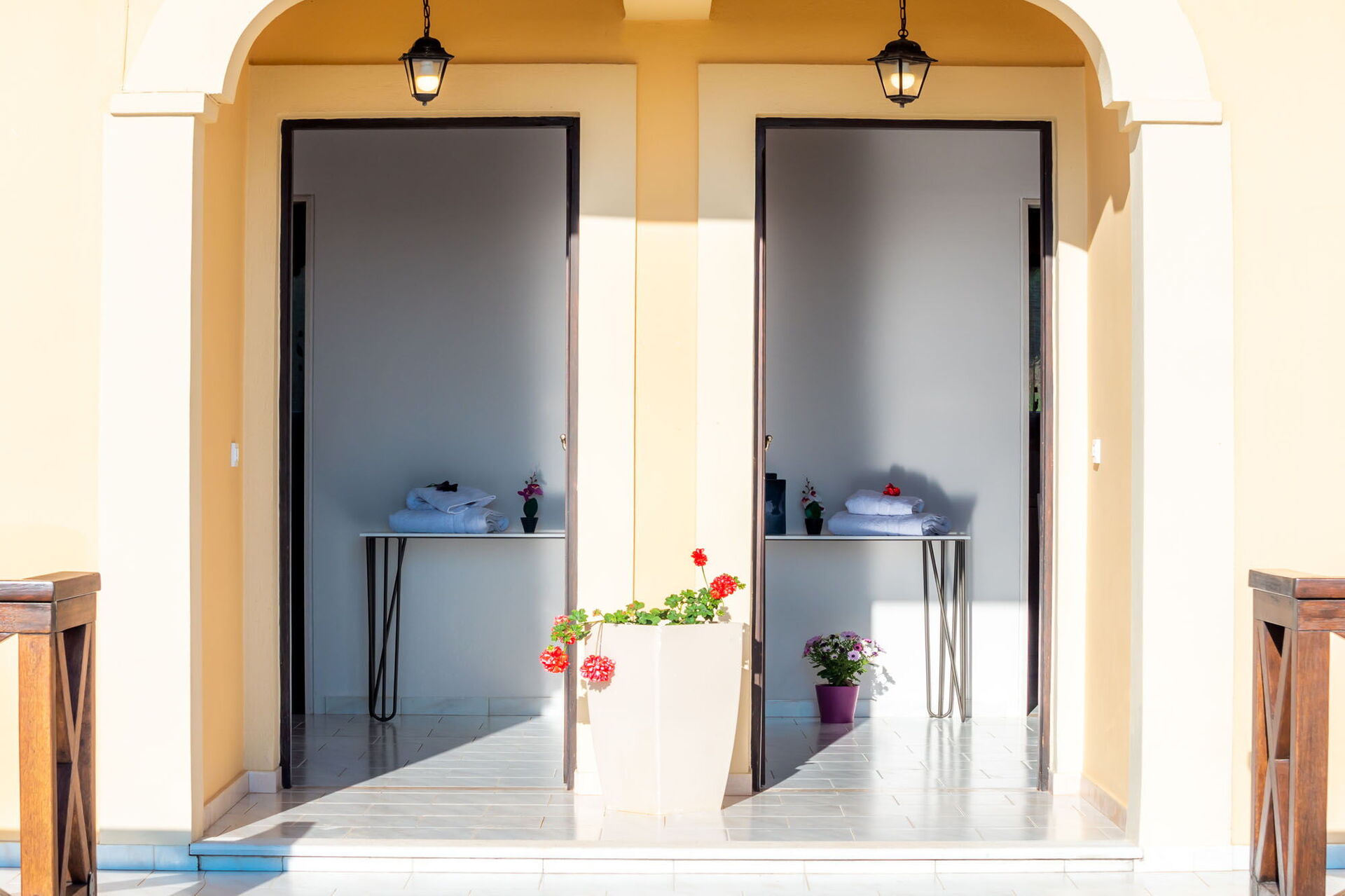 Villa Irida ligger på bottenvåningen i huset, medan ägarna bor på de två översta våningarna. Ägarna är vänliga, respekterar gästernas integritet och använder varken utomhusområdena eller poolen.