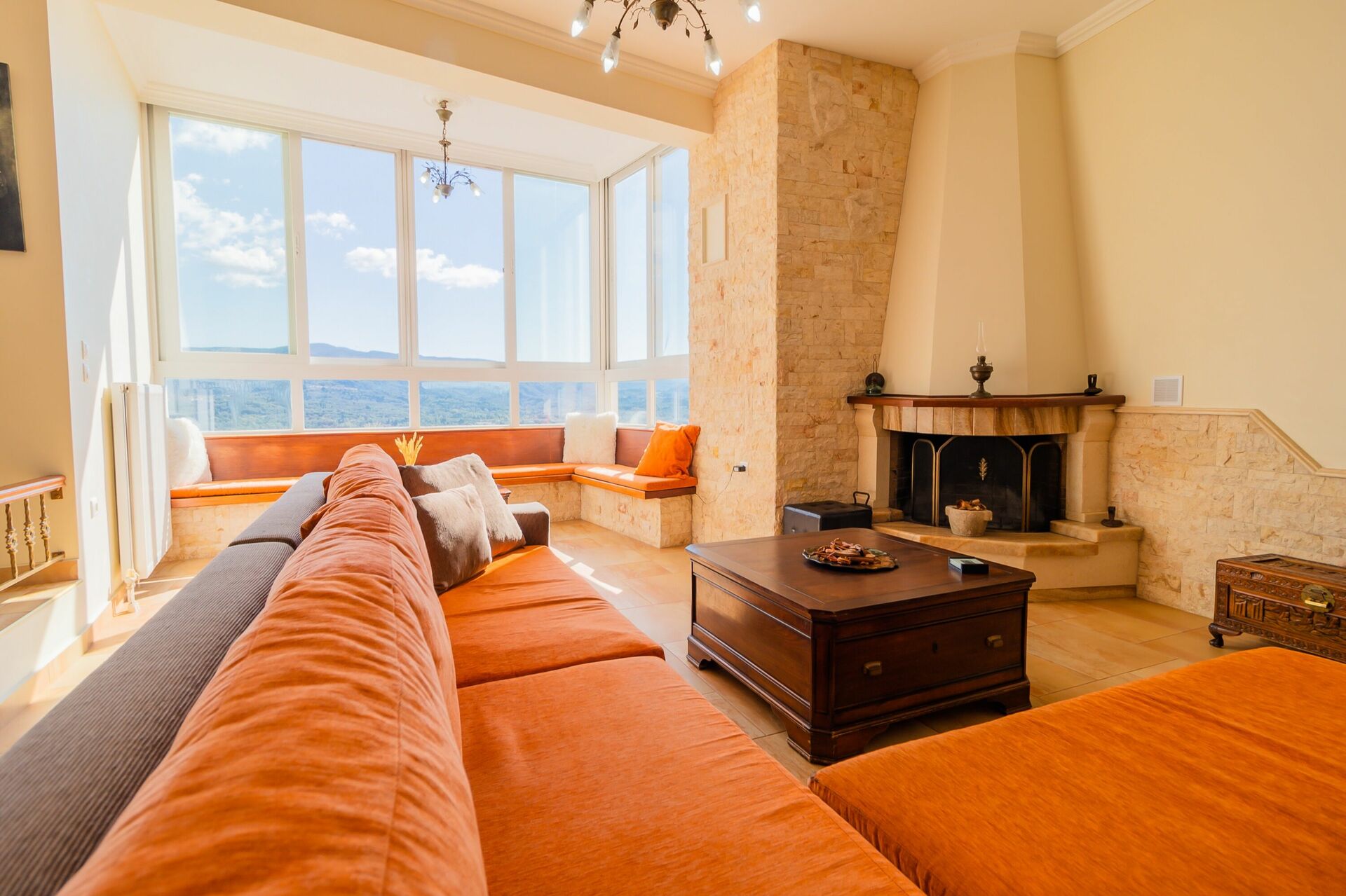The views are outstanding and it’s a joy to sit on the balcony or in the window seat. It really is so peaceful. Lots of space and comfortable rooms. Thoughtful storage and fully equipped kitchen. The dishwasher is a table top one - felt a waste of electricity to run it so we washed old style!! Would be superb house for a larger family gathering. So much room so nobody is on top of anyone. The village was a bit remote from the areas we enjoyed to spend our time, but it’s a peaceful place to return to at the end of the day and the villagers are friendly and welcoming. Fanis is a lovely host, happy to help in any way, can offer to source you meat or fish and even let us try his own red wine from his vineyard. The village car park is safe for parking rather than using the space outside the villa - unless you rent a tiny car or have full insurance to limit the risk of any knocks. The road is narrow as expected and the locals are so used to them dashing up and down but for visitors they take a little getting used to. There is a village mini shop for breads, milk and juices etc. Doukades is not too far away and has some lovely restaurants. Agios Gordios was our favourite beach. So relaxing and friendly. I would recommend some seat pads for the outside dining table. We’re tall and even for us the chairs are too low for the table height. lots to like about this villa - We had a great stay here. Fanis is welcoming, warm and friendly. Helpful and delightful to his guests.