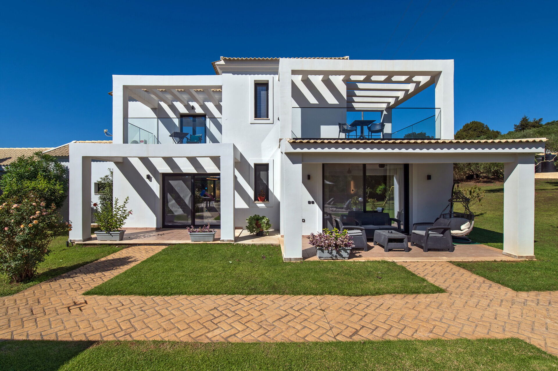 Villa Melitti är smakfullt inredd med en ljus och modern interiör. Huset är fördelat på två våningar och erbjuder 4 sovrum med plats för upp till 8 personer.