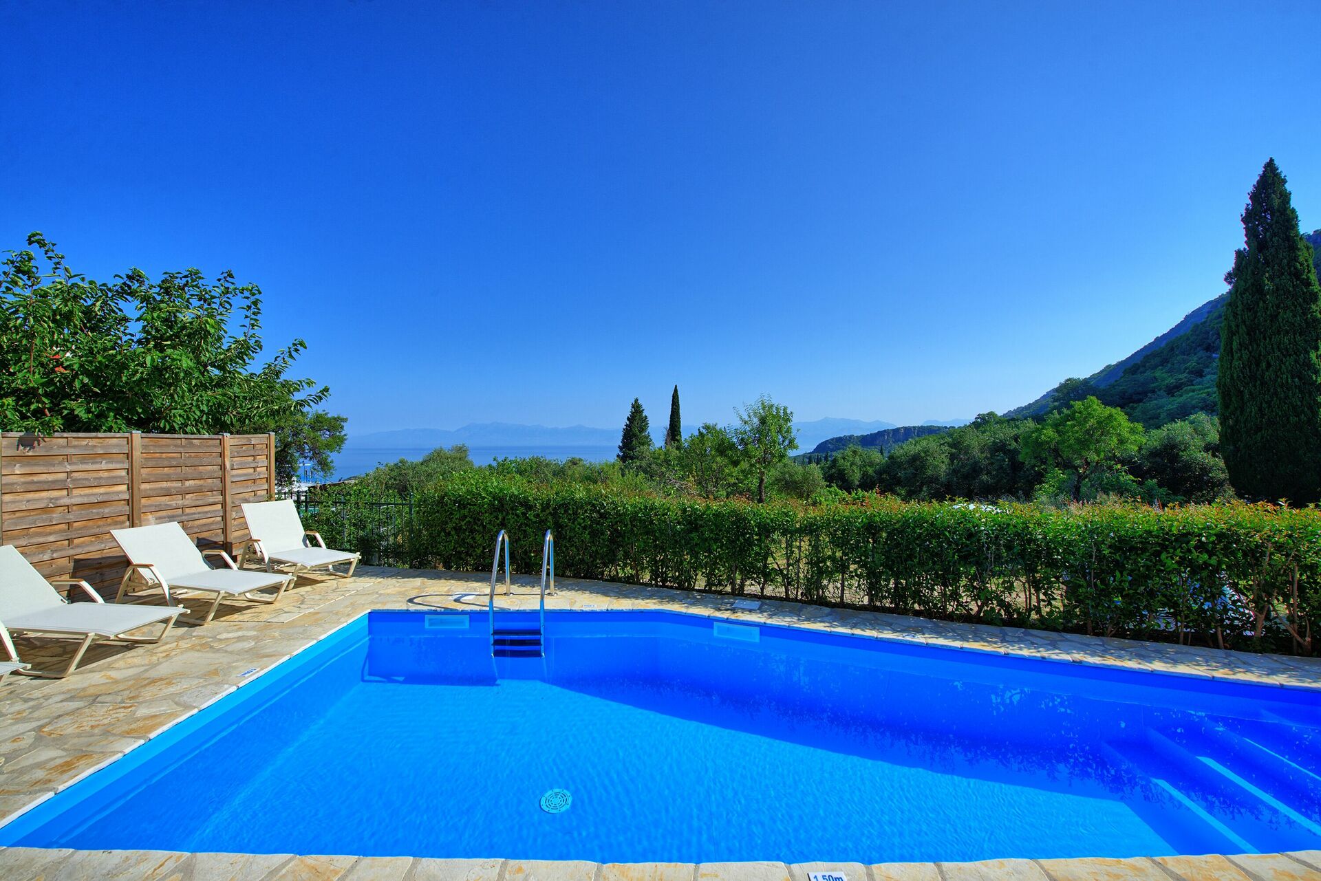 The Villa has a small private pool in the garden, perfect for cooling off after a day of sightseeing or on the beach. It is located on the edge of the village of Episkepsi which has a small village shop and three tavernas. Due to the location you do need a car. Acharavi is the closest town which has several Supermarkets and number of excellent restaurants, plus tour agencies who will happily sort out things like boat trips.