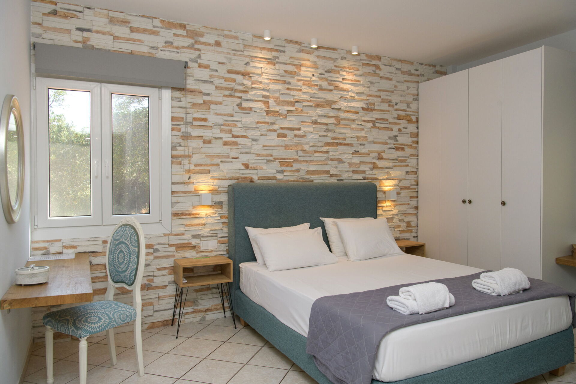 Stunning views from it’s hilltop aspect, of the sea and Albanian coastline from day break to sunset.