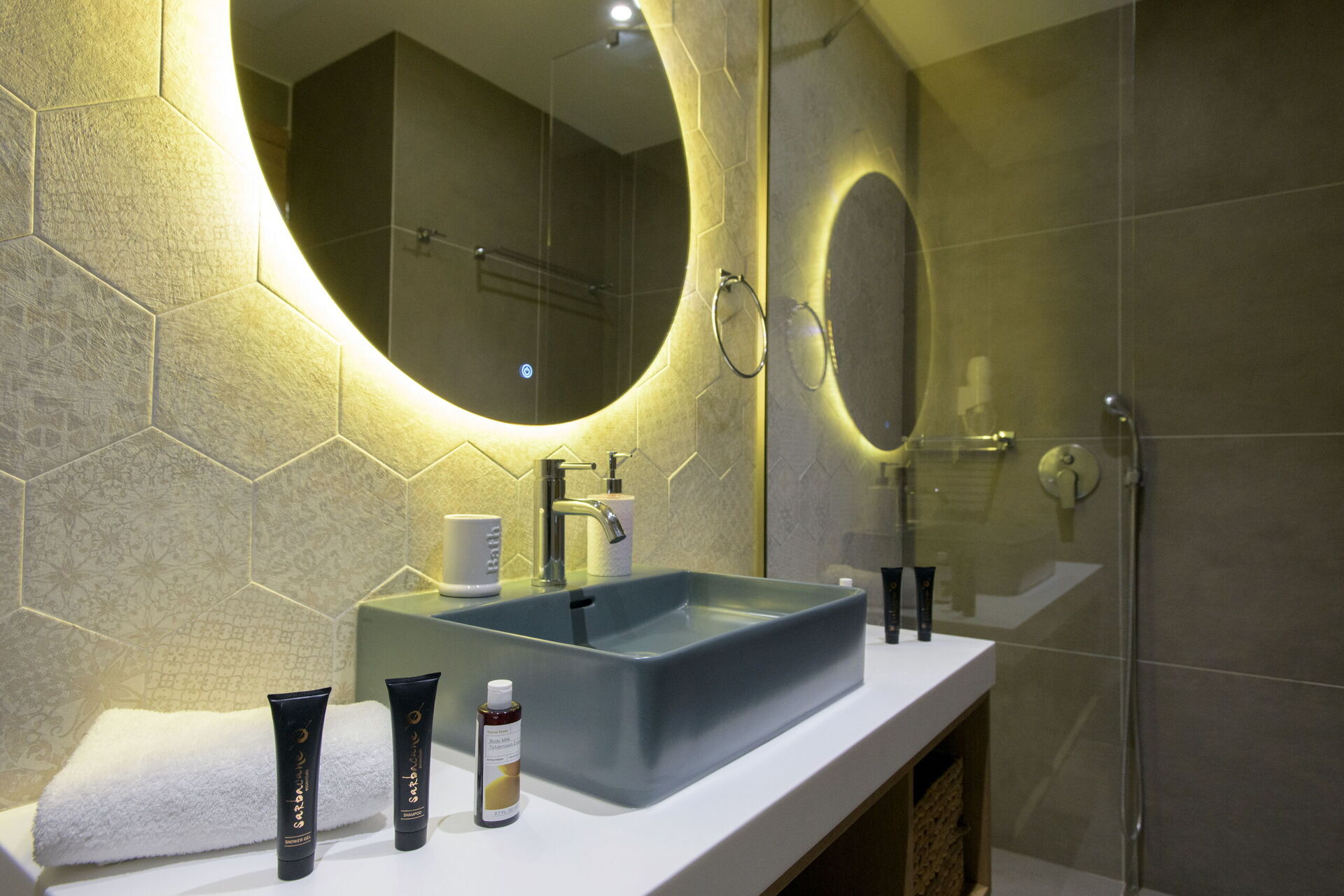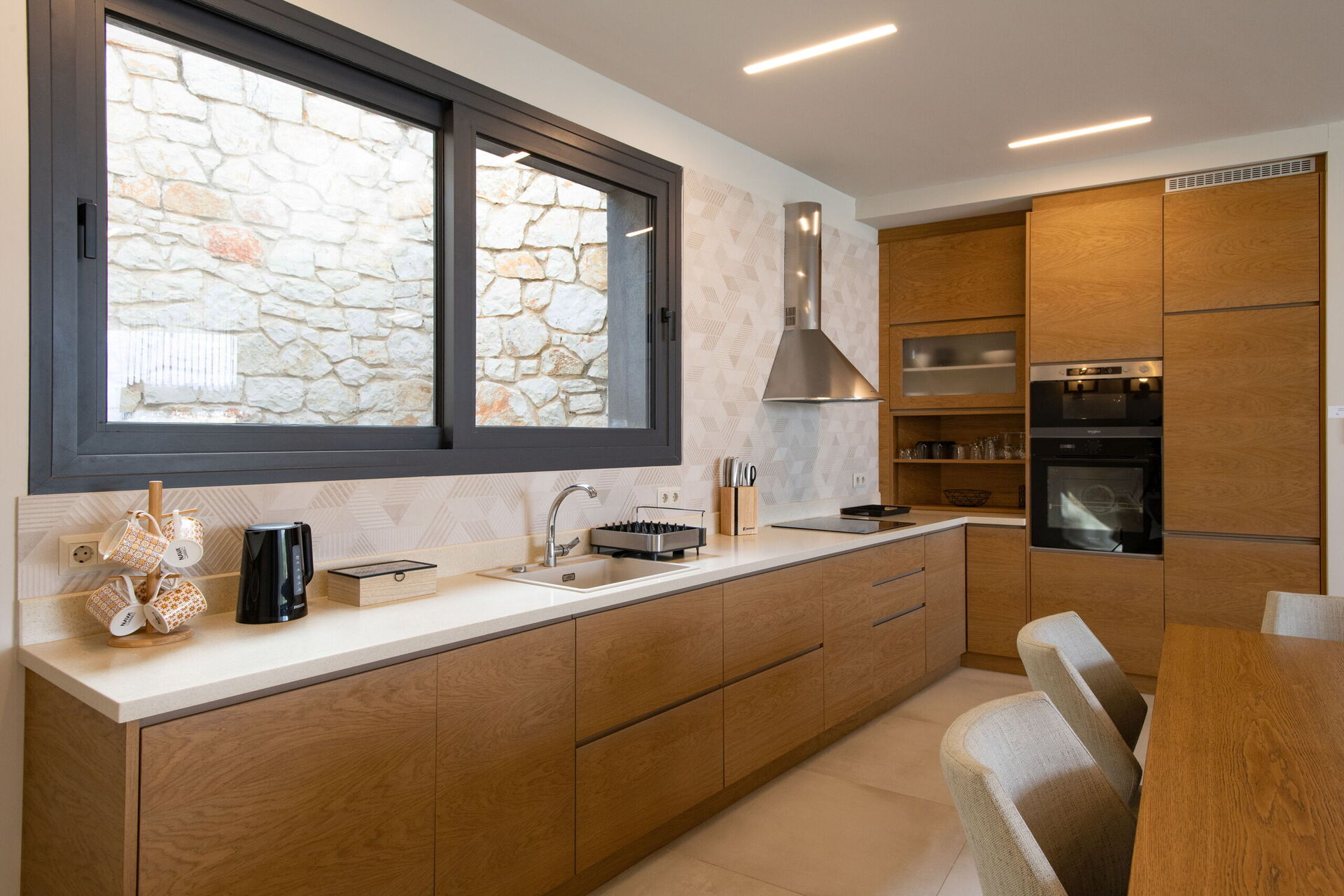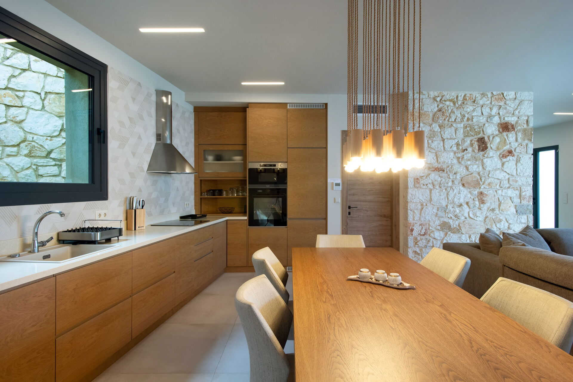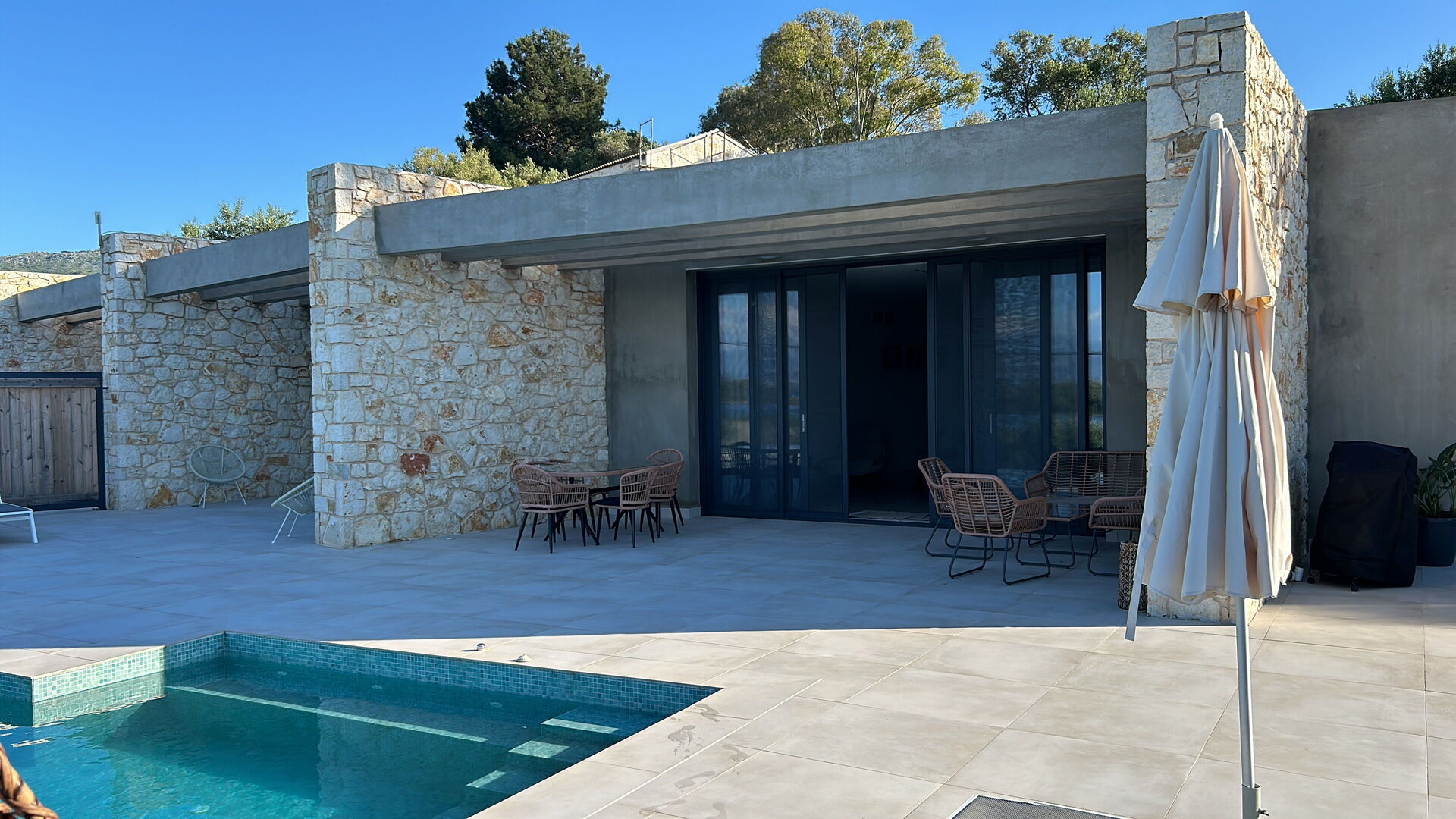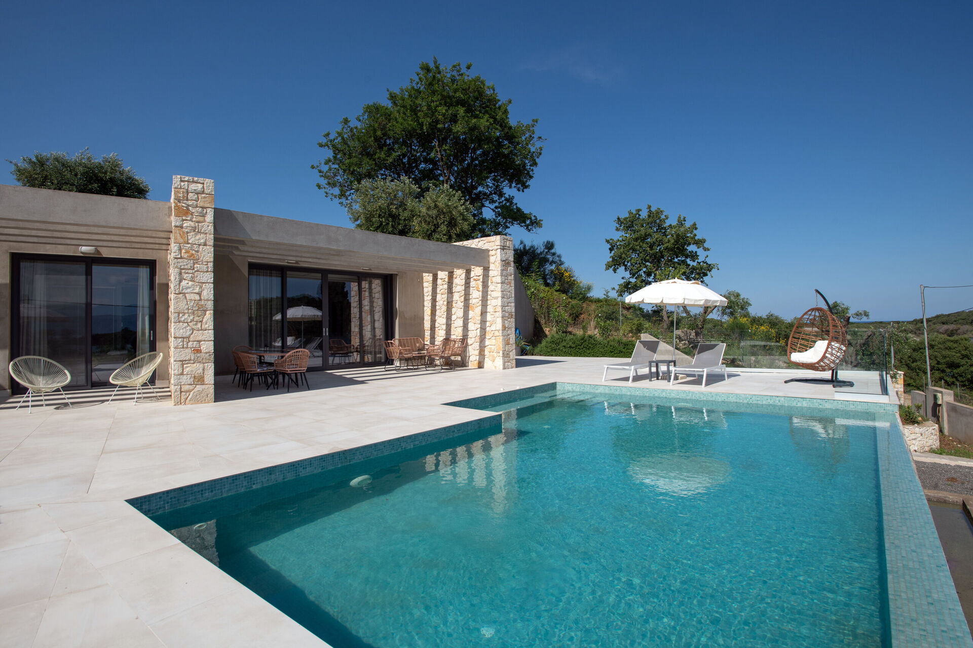 Huset har 3 sovrum, 3 badrum, ett stort vardagsrum och en underbar uteplats, perfekt för att njuta av den varma grekiska solen vid poolen, eller njuta av att grilla tillsammans utomhus.