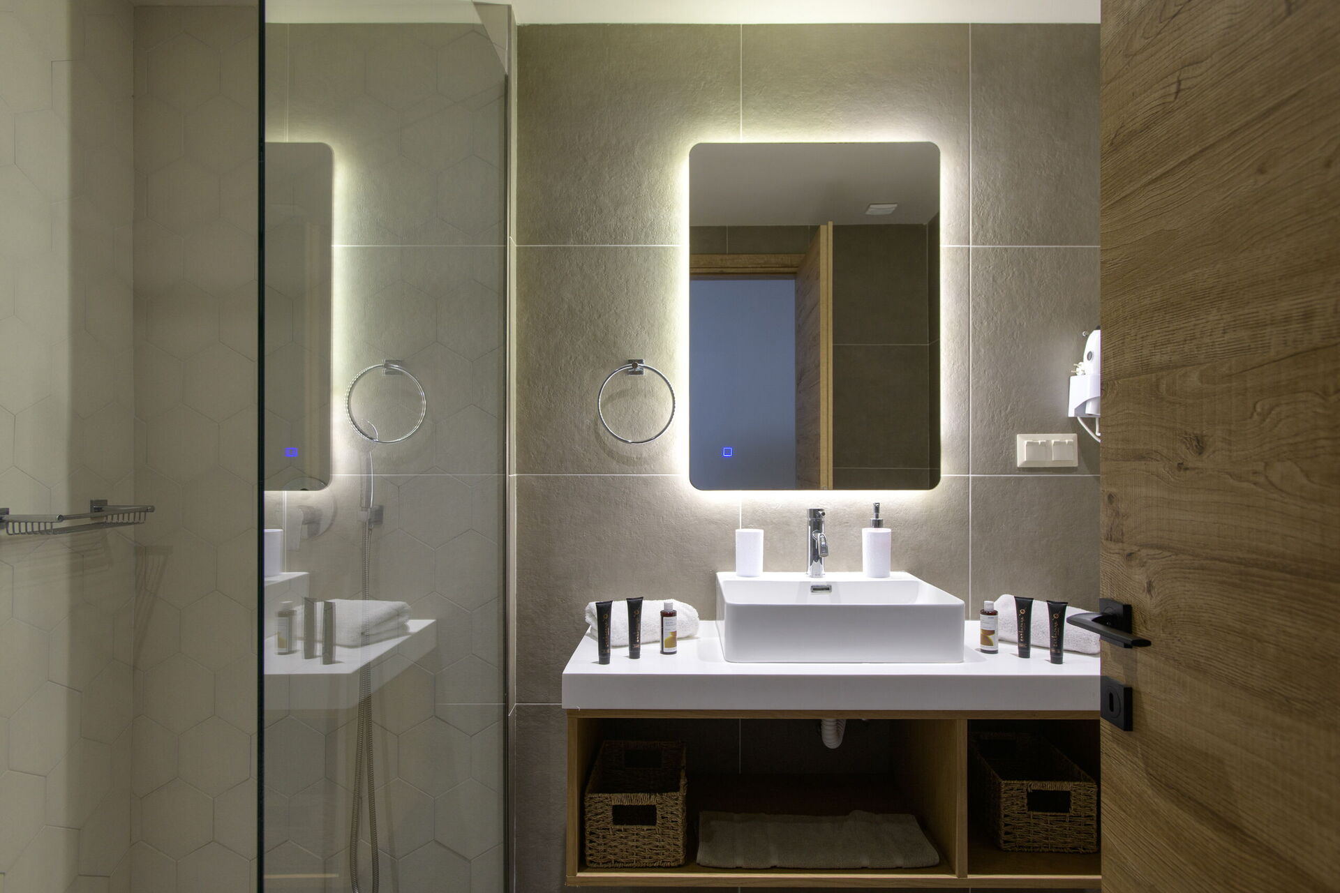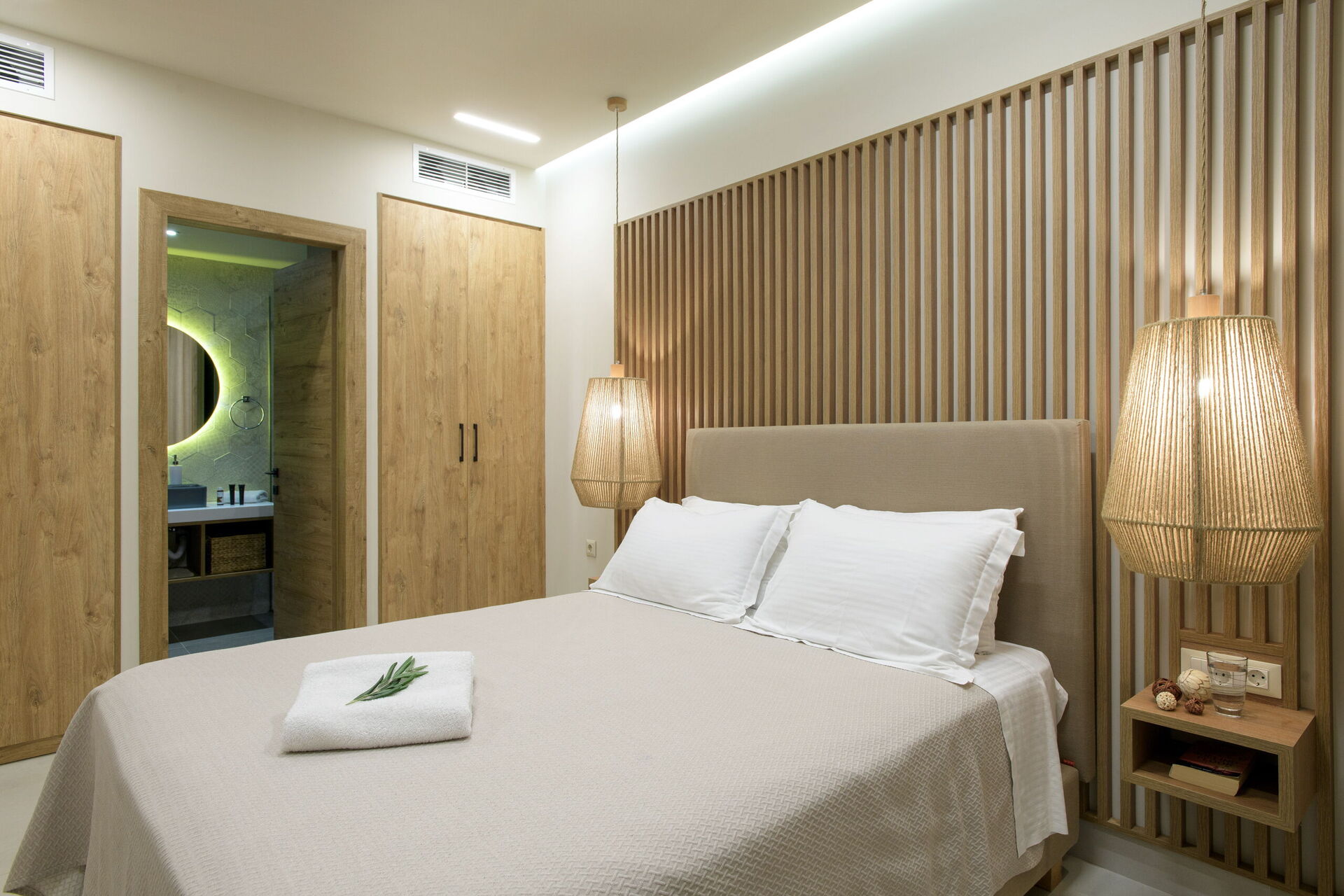 Vardagsrum med vardagsrum (smart-TV), matplats och kök (ugn, frys, diskmaskin, mikrovågsugn, brödrost, vattenkokare och kaffebryggare); TOALETT; 2 sovrum, alla med eget badrum med dusch; sovrum med 2 enkelsängar (kan sättas ihop på begäran) och eget badrum med dusch.