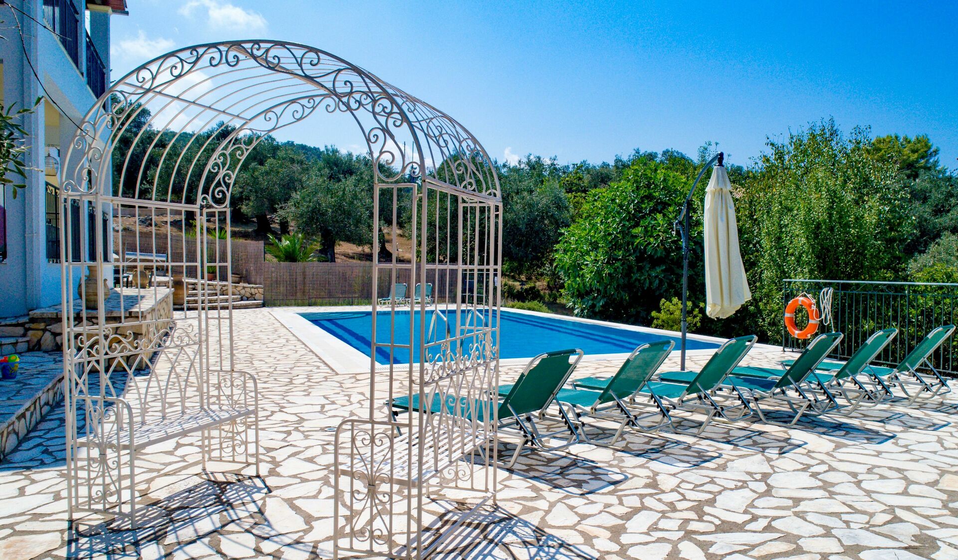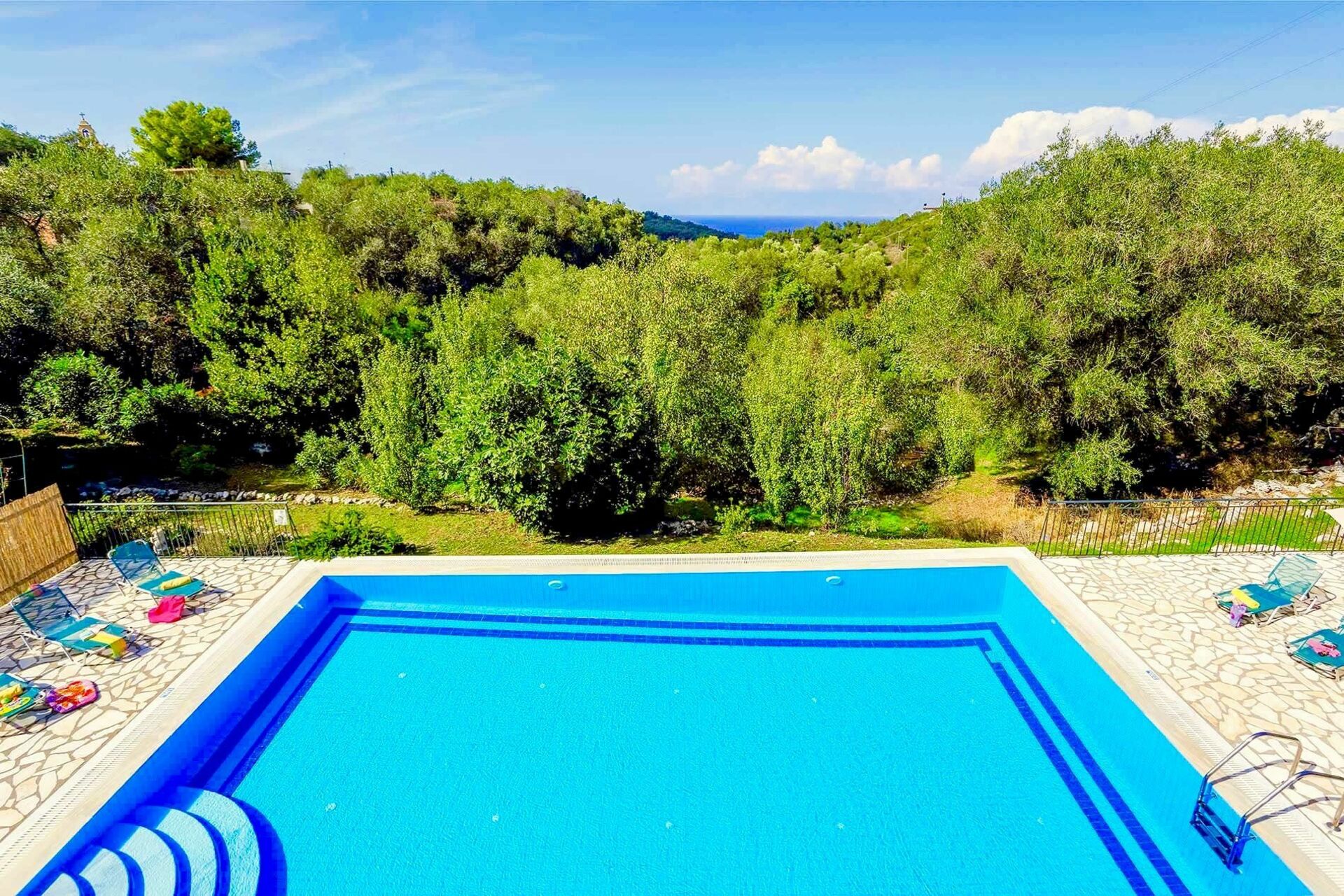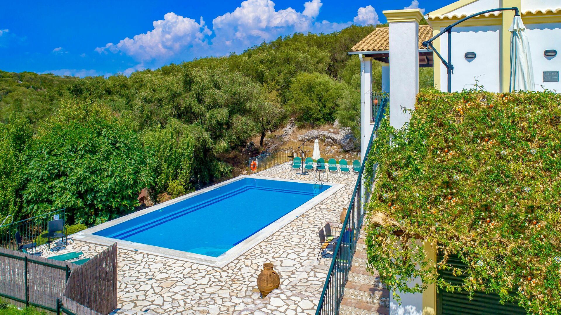 It is private and secluded and just off a main village road (unusual as many roads to villas in Corfu can be unnamed and rough terrain)