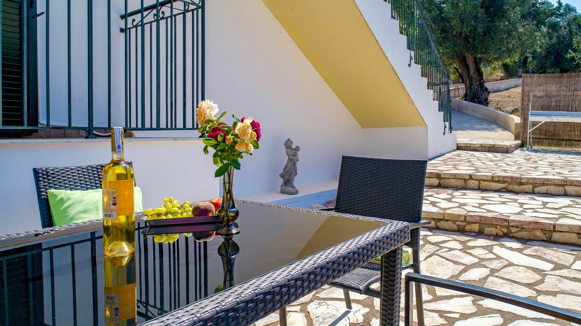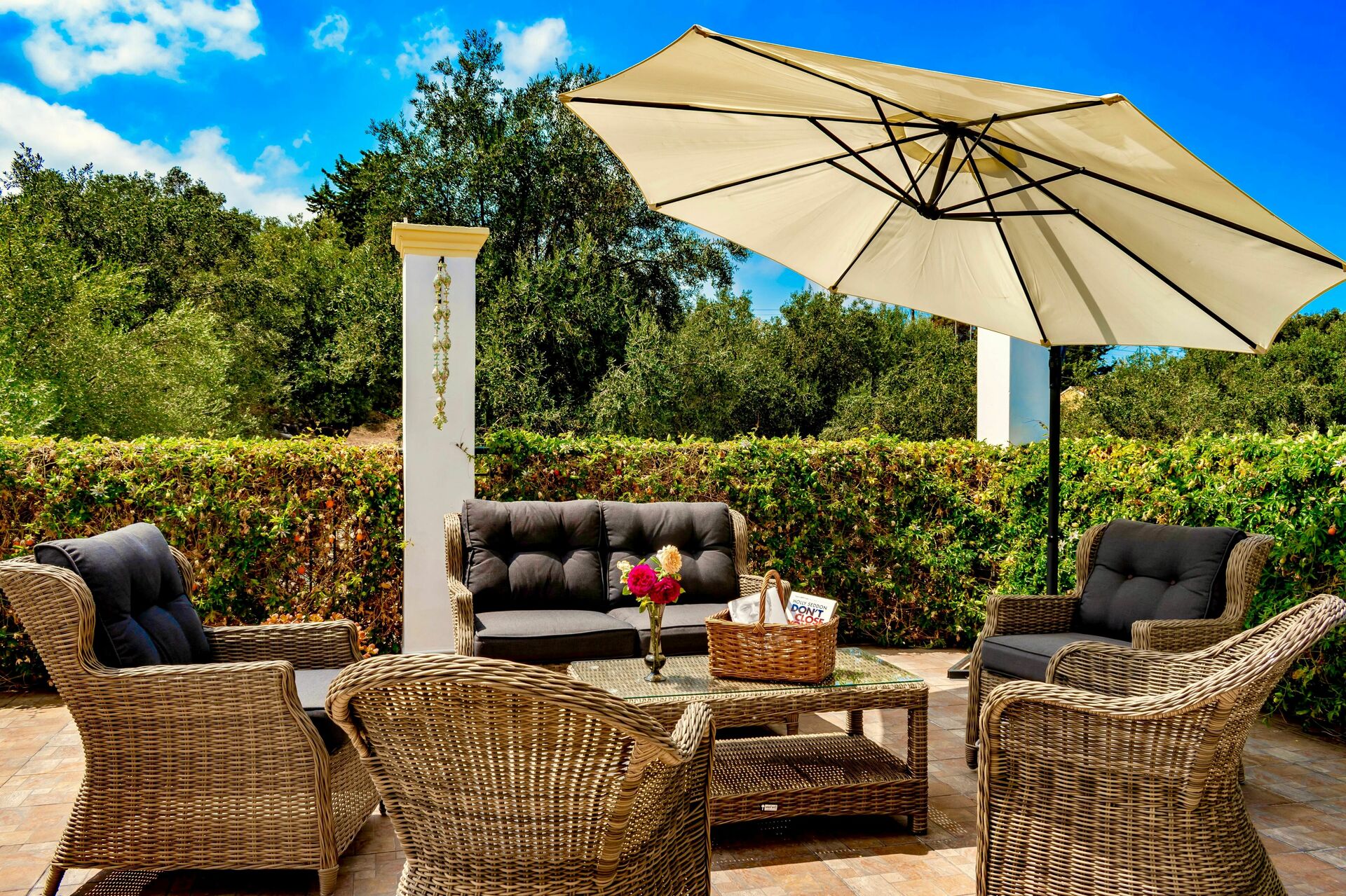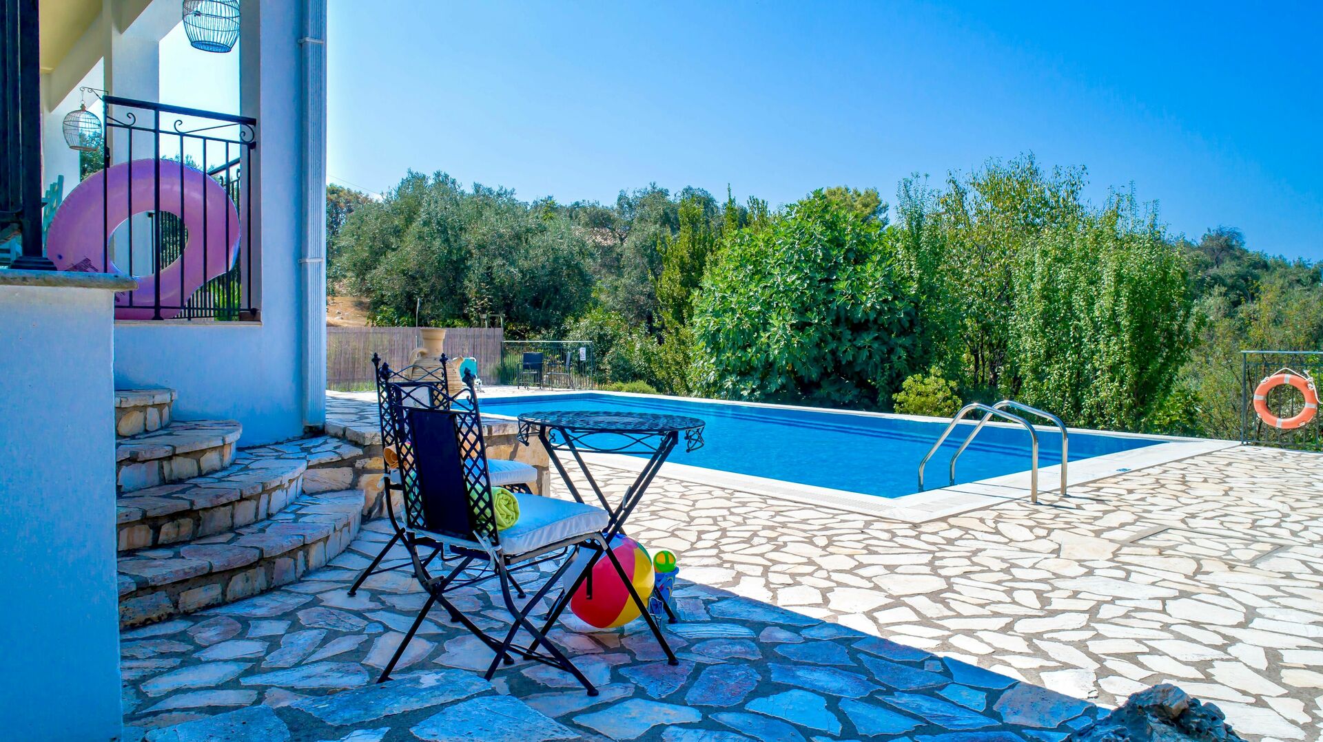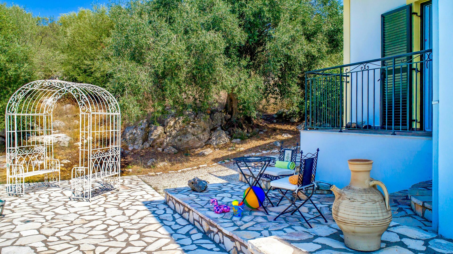 It is private and secluded and just off a main village road (unusual as many roads to villas in Corfu can be unnamed and rough terrain)