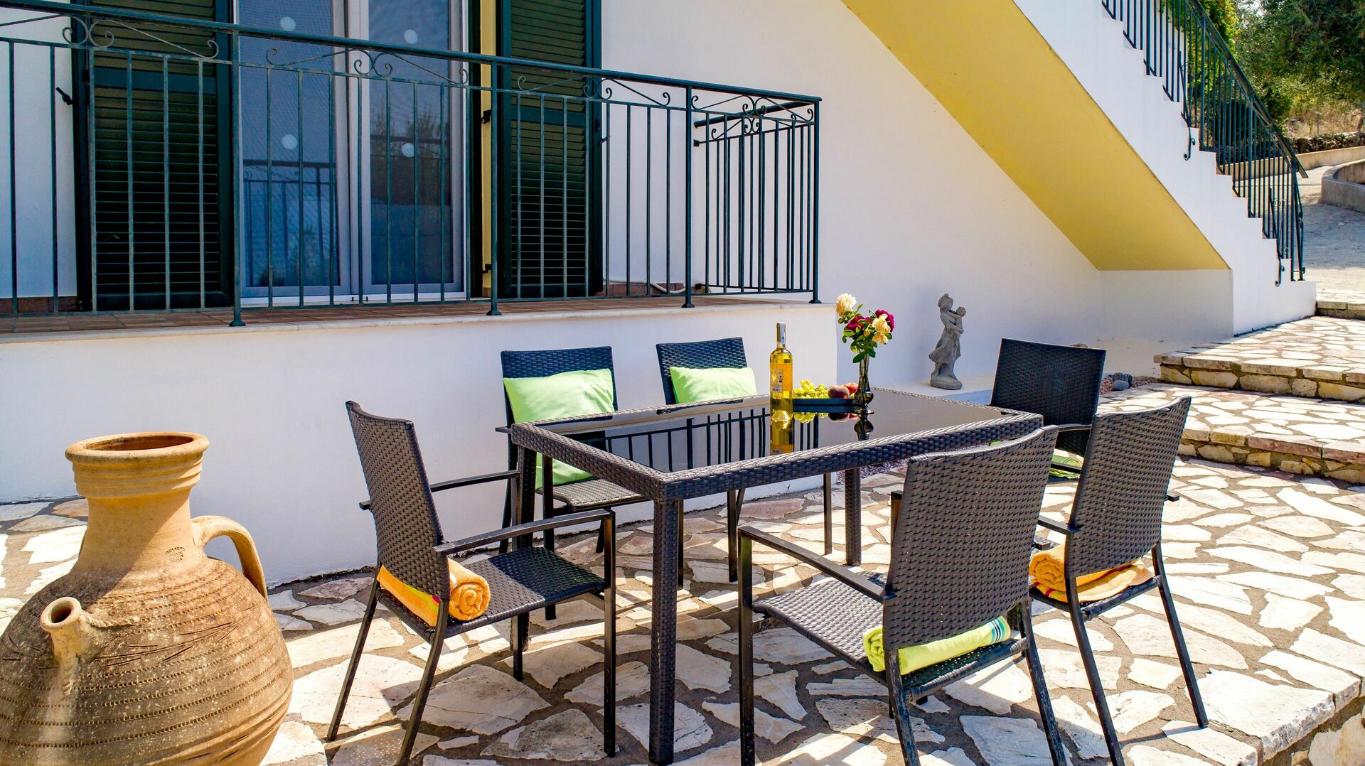 Villa Di Giovanni is the place to be, it is perfectly located: 5 min from the wonderful Kalamaki beach, 10 min from Akharavi its restaurants and city life, 1h away from Corfou.