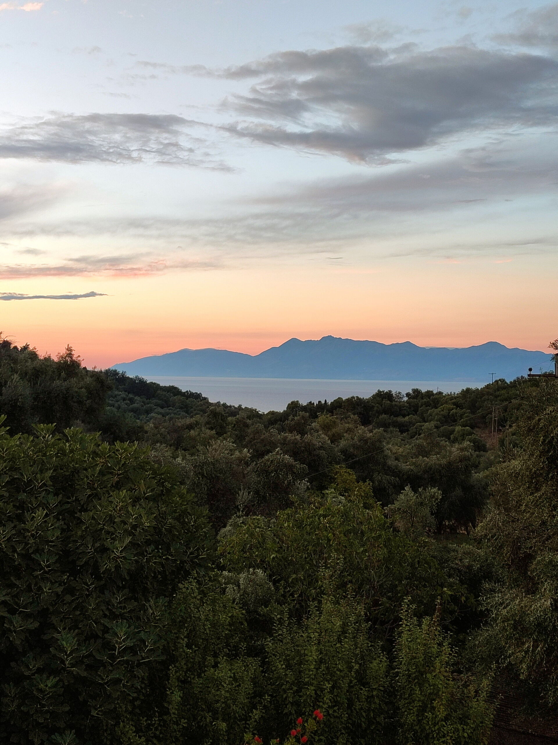 Lovely quiet location just outside the village of Peritheia, surrounded by gardens. The view of the sea and the mainland from the top balcony is one which will stick in the memory for a long long time.
