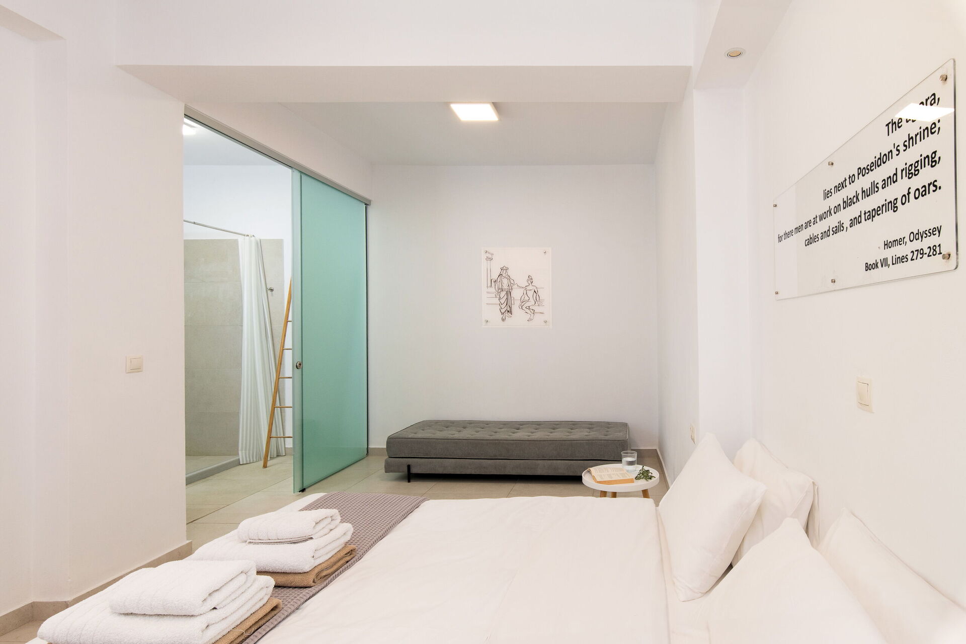 Stugan stod färdig hösten 2019 och är över 2 våningar anslutna med en sidotrappa. Huset har stora altandörrar, stora fönster och designmöbler och har sol från morgon till kväll. På bottenvåningen finns ett rymligt vardagsrum (soffor, wi-fi, luftkonditionering) med angränsande kök (fullt utrustat) samt 2 sovrum (båda med privat badrum). Ett sovrum har en dubbelsäng + en soffa (som kan omvandlas till en enda bäddsoffa i full storlek), medan det andra sovrummet är en tvilling. Övre våningen är identisk med den nedre, förutom att sovrummet endast har en dubbelsäng och inte en extra bäddsoffa. Stora terrasser på båda våningarna ger en magisk utsikt över Joniska havet och den albanska kusten nedanför.