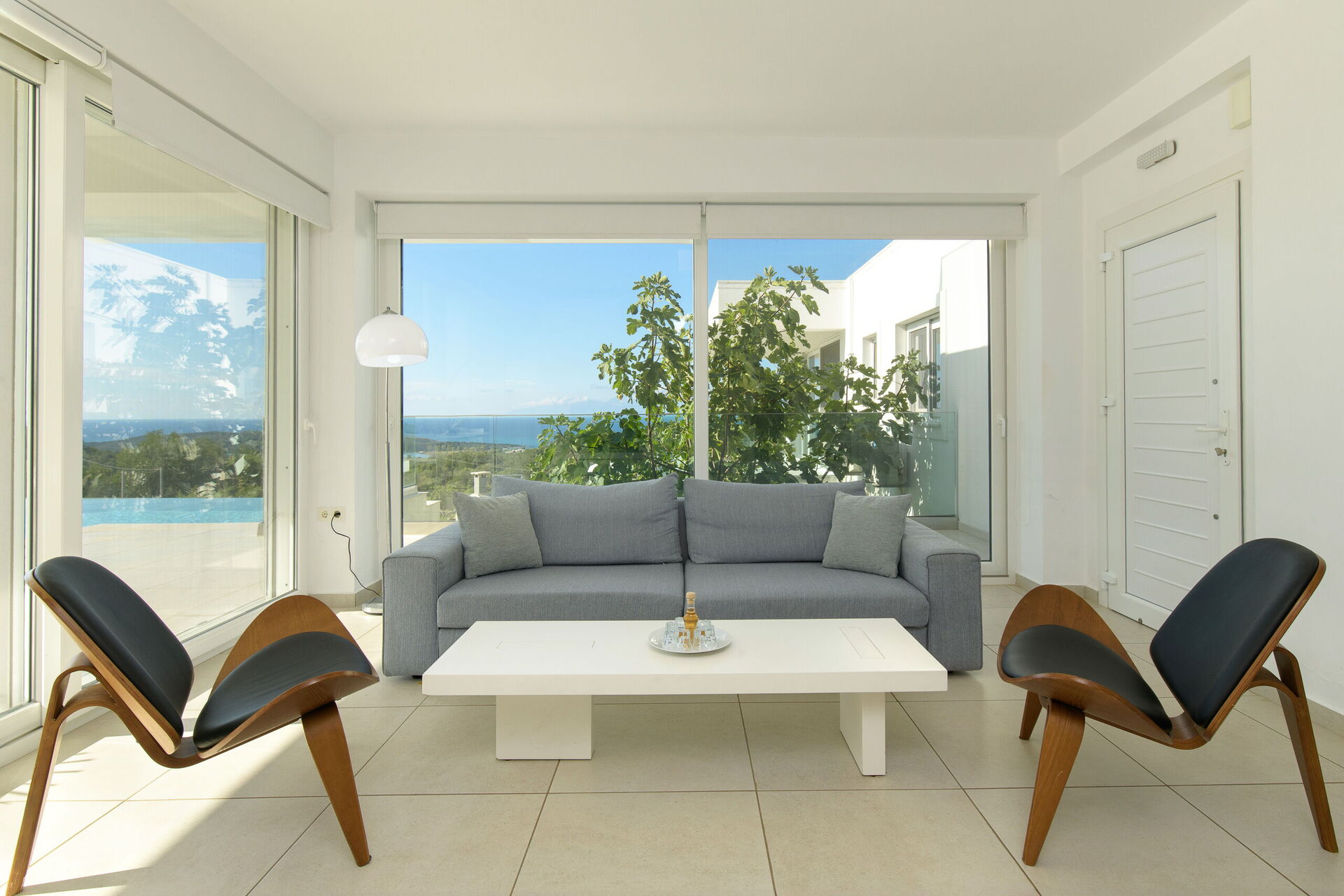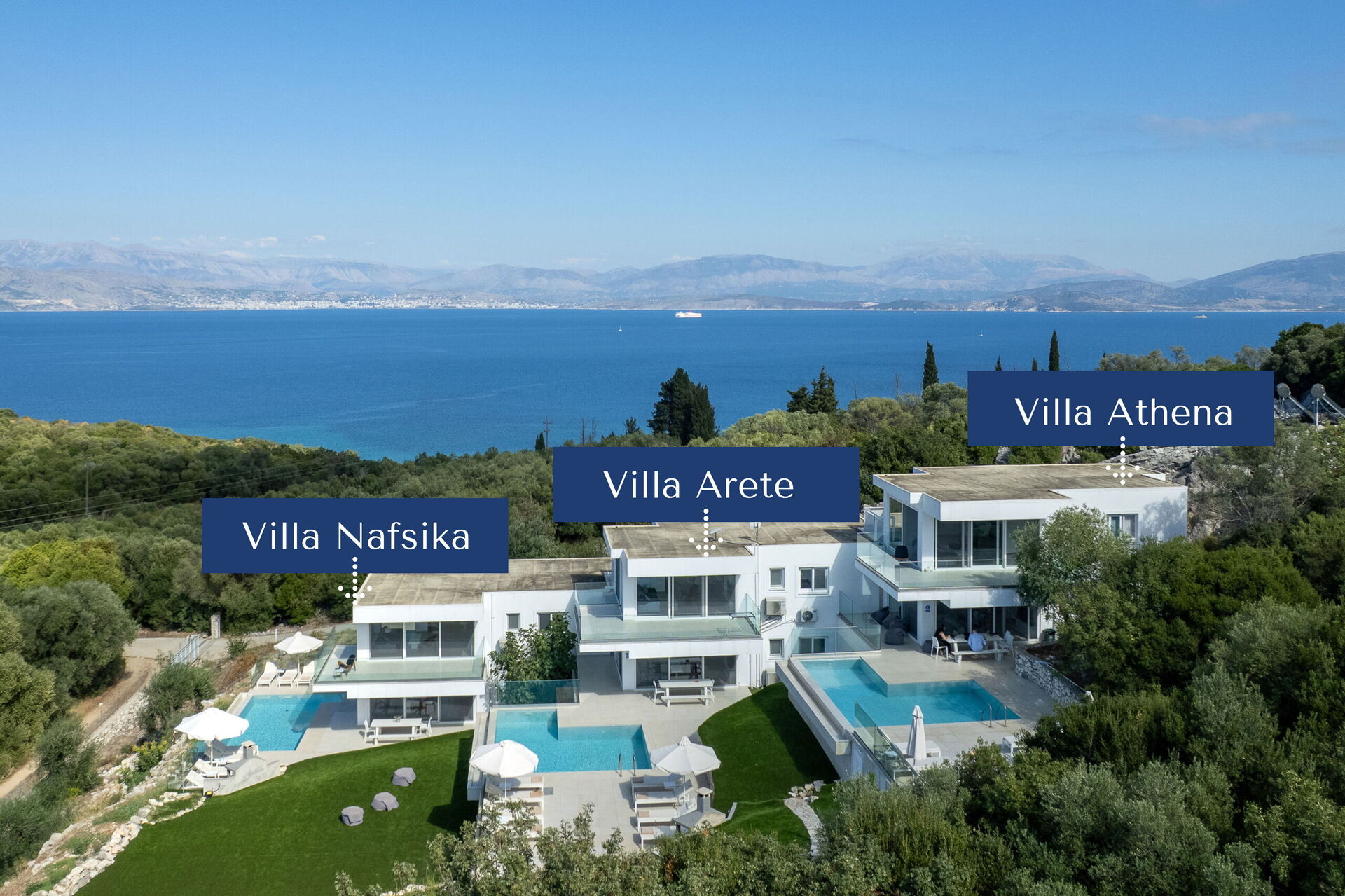 Villa Arete är en helt med ett unikt läge i Perithia-området i den nordöstra delen av Korfu. Semesterhuset är en del av den exklusiva fastigheten "Perithia View" och har avslutats till högsta standard för att erbjuda gästerna en överlägsen semesterupplevelse för de kräsna. Med 4 sovrum, 4 badrum, stora vardagsrum och uteplatser samt en privat pool, innehåller detta hus allt du kan önska dig under en semester vistelse. Det höga läget (men ändå mycket nära fantastiska stränder) med 180 graders panoramautsikt ger en underbar naturupplevelse med möjlighet att njuta av både soluppgången och solnedgången från en och samma fastighet.