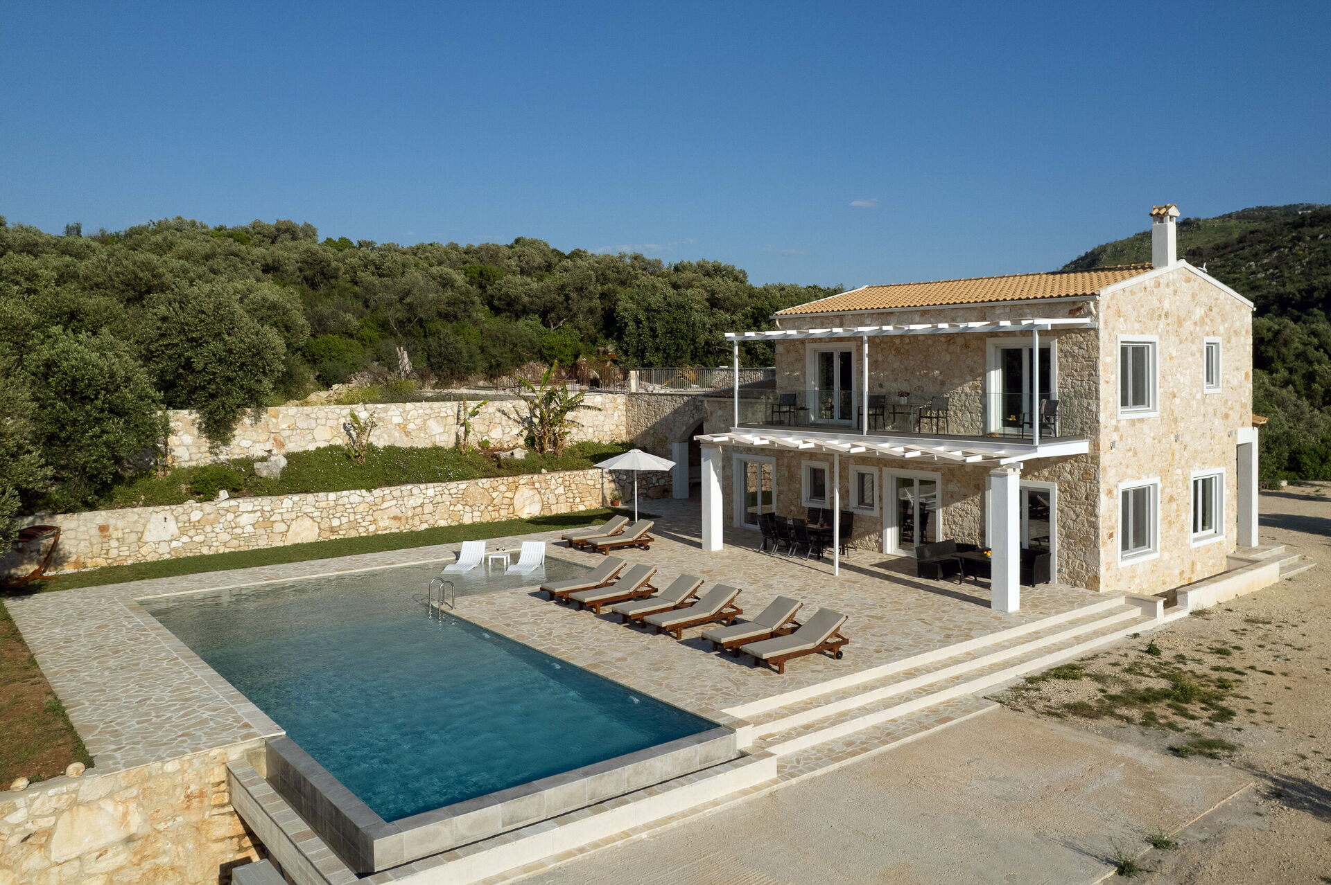 På fastigheten finns en imponerande infinitypool med panoramautsikt – den perfekta platsen för att svalka sig under varma sommardagar eller njuta av en drink i solnedgången.