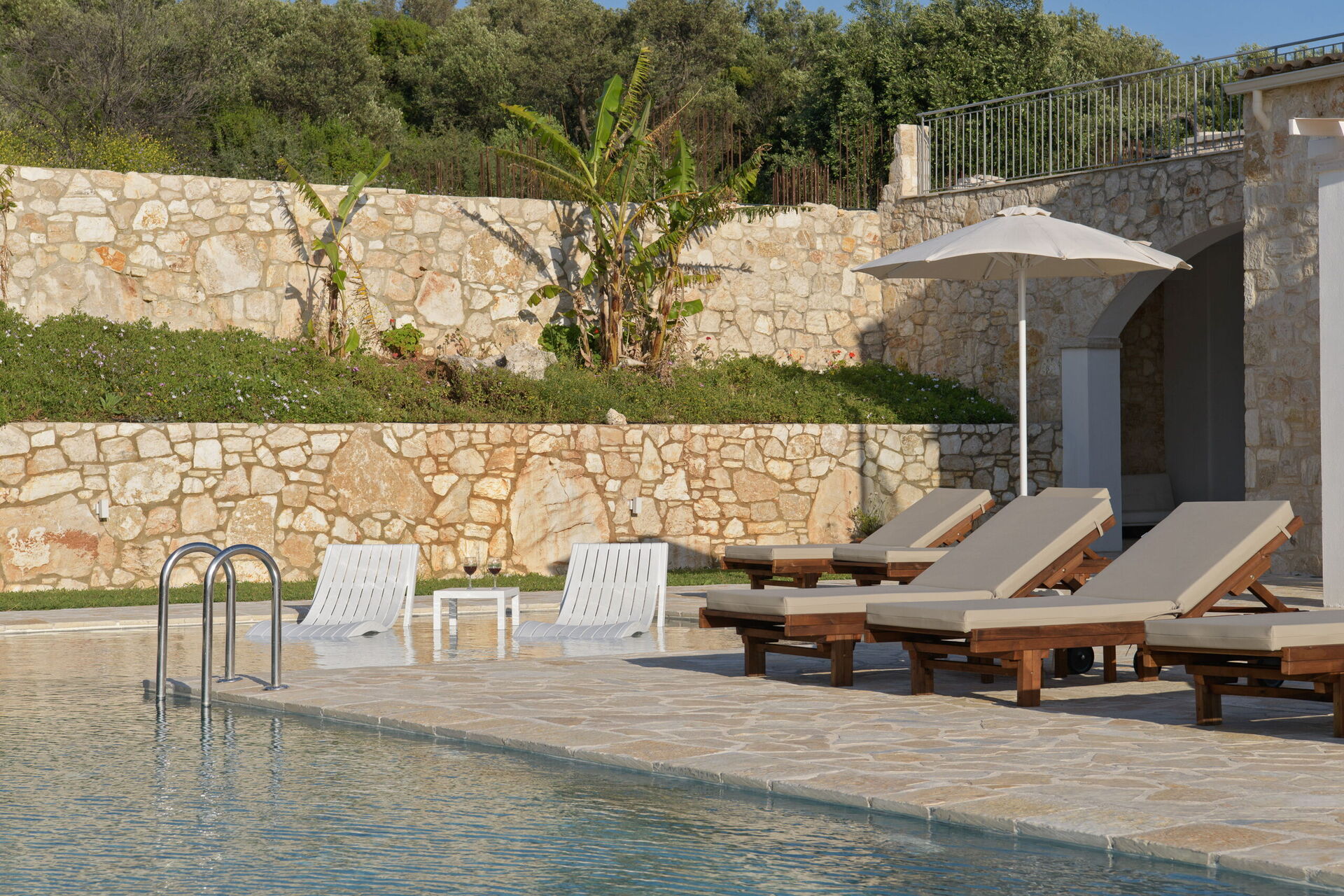 De rymliga terrasserna är möblerade för att kunna äta utomhus och koppla av i en förtrollande omgivning.