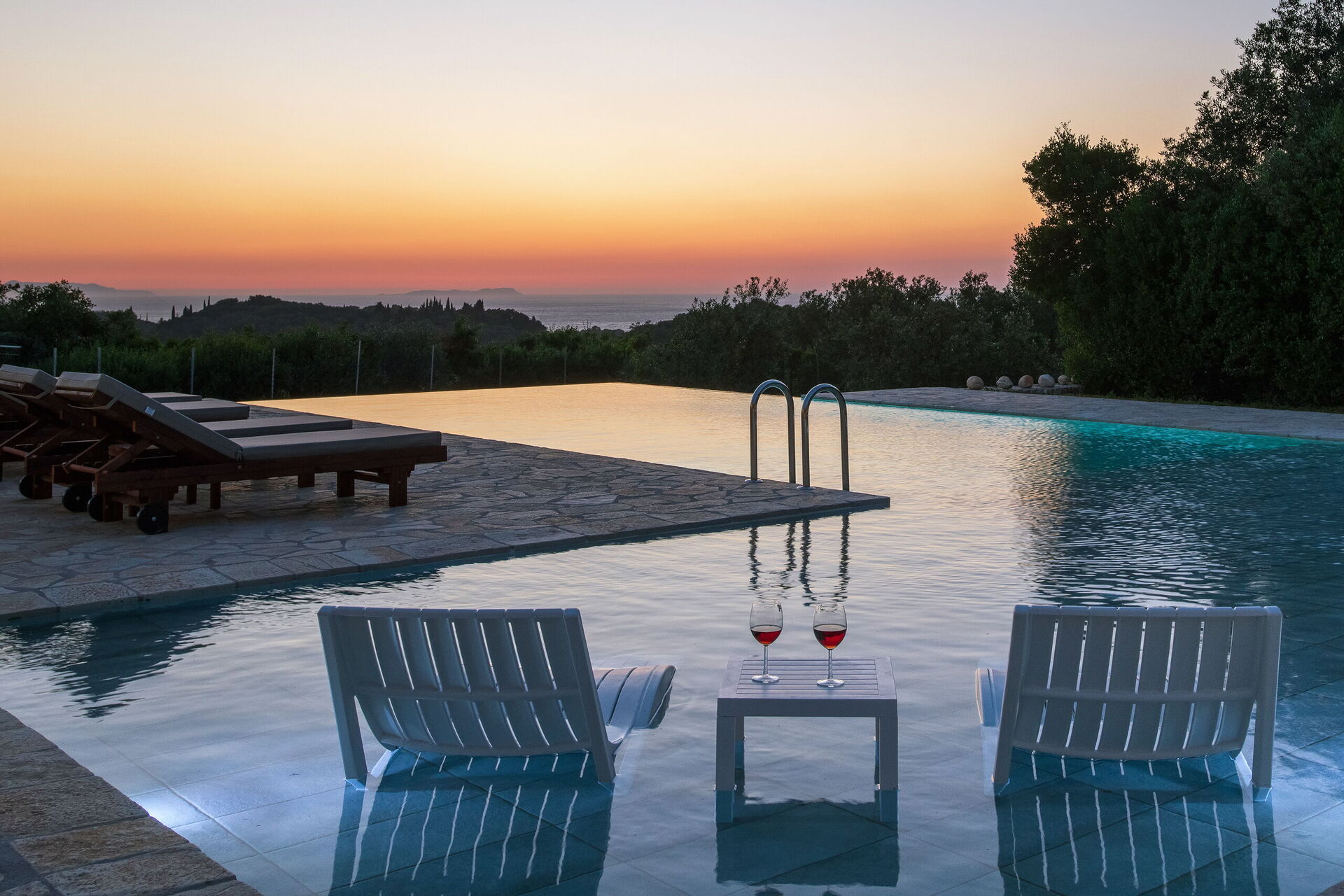 Villa Sunset, lyxvilla med pool i Perítheia på Korfu i Grekland