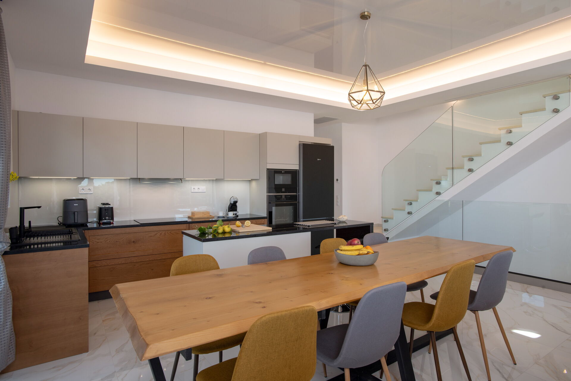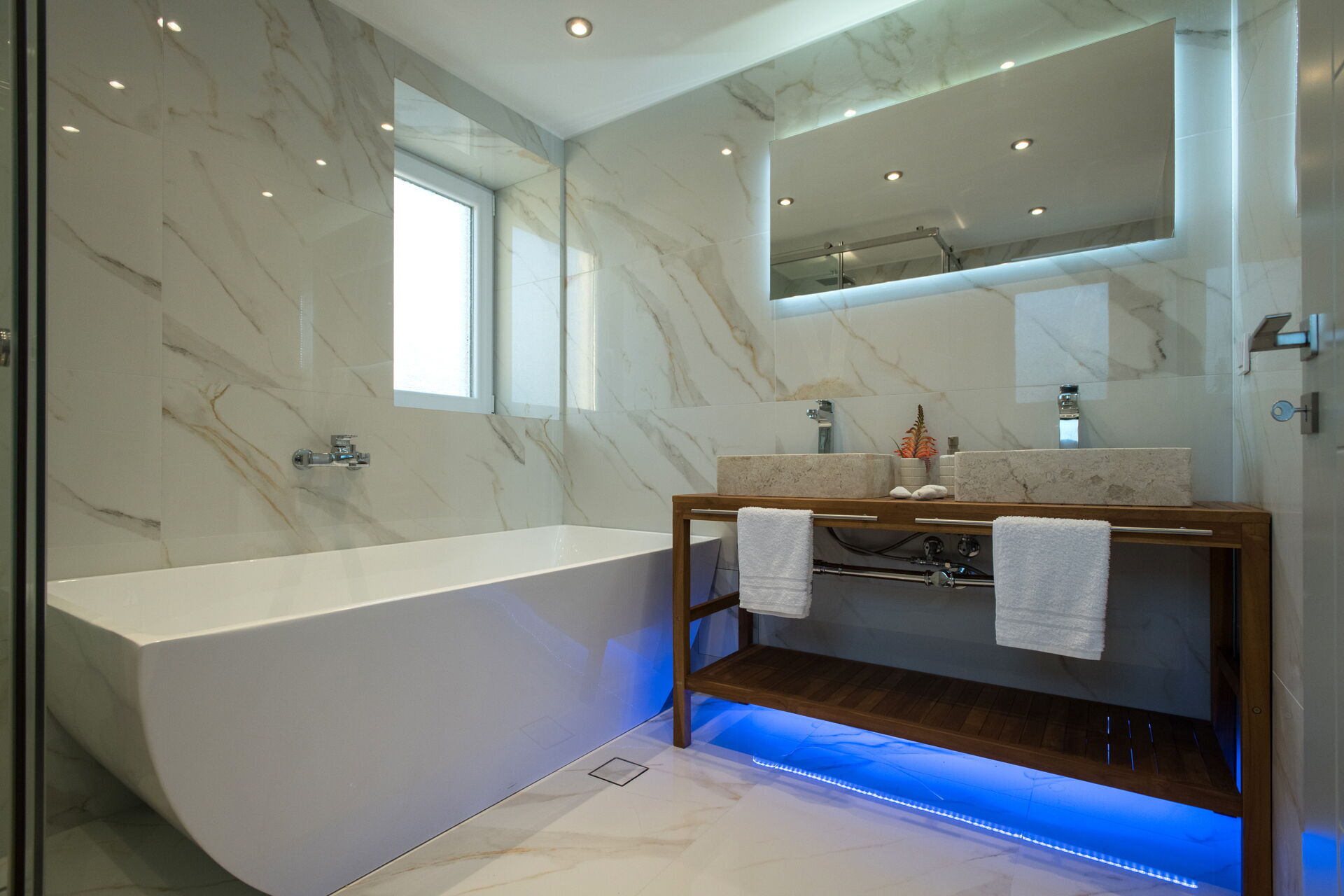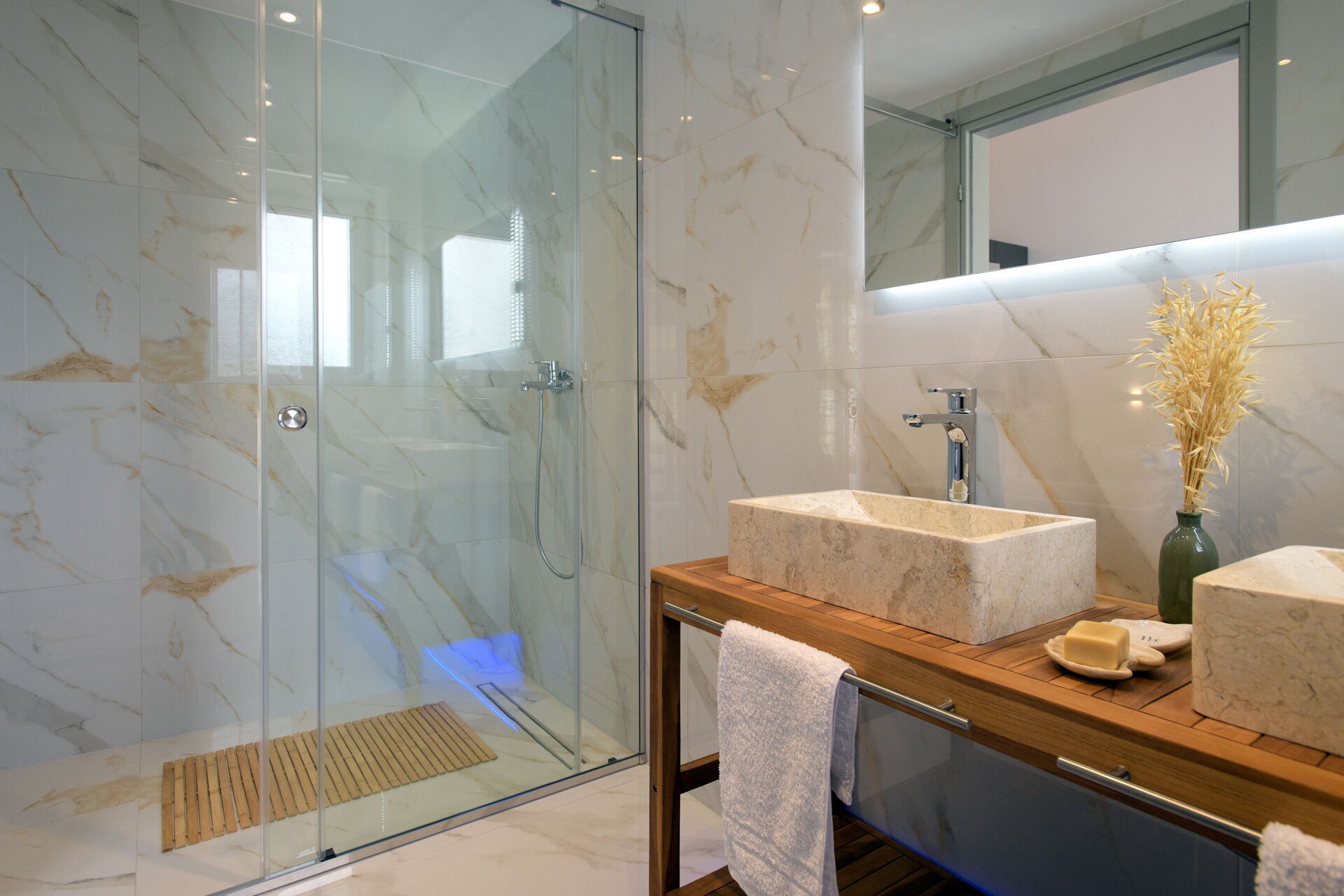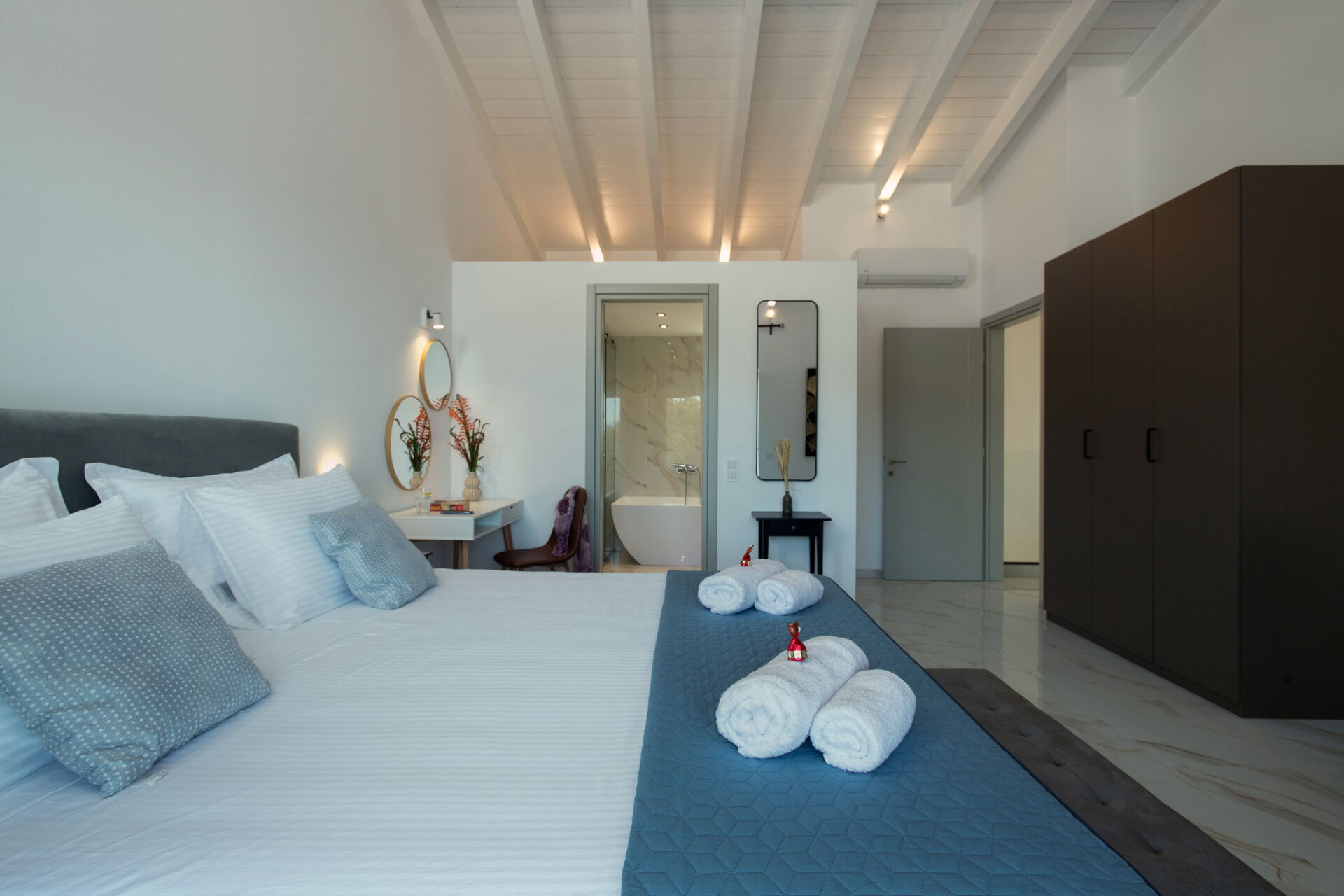 Villan har 3 våningar med 3 sovrum och stora gemensamma utrymmen, inklusive ett wellnessområde med inomhusbubbelpool (belägen i villans källarvåning).