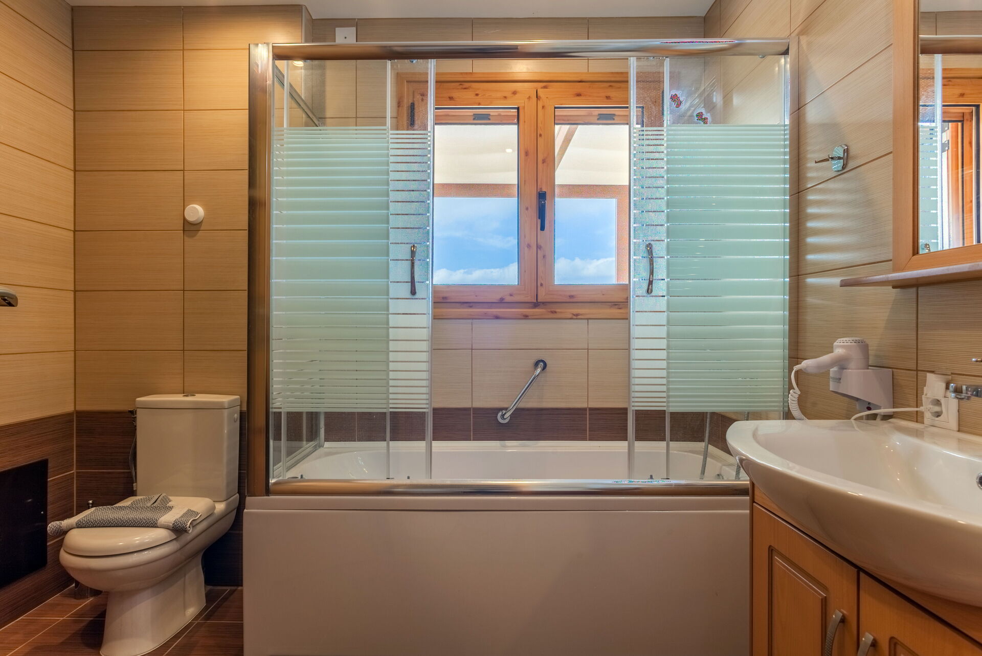 1 sovrum med fransk säng (luftkonditionering) med tillgång till panoramaterrass, badrum med dusch och badkar, 1 tvåbäddsrum (luftkonditionering) med panoramabalkong, badrum med dusch och badkar
