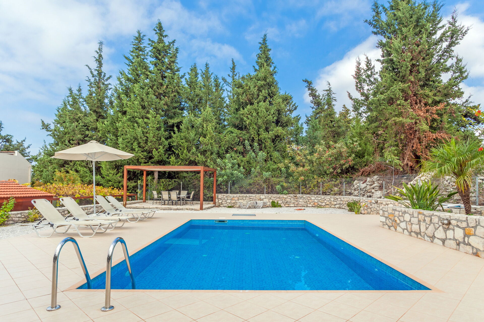 Villa Giorgos är fridfullt belägen på en kulle med stora utomhusområden och vacker panoramautsikt som sträcker sig ända ner till havet, bara några få kilometer bort.