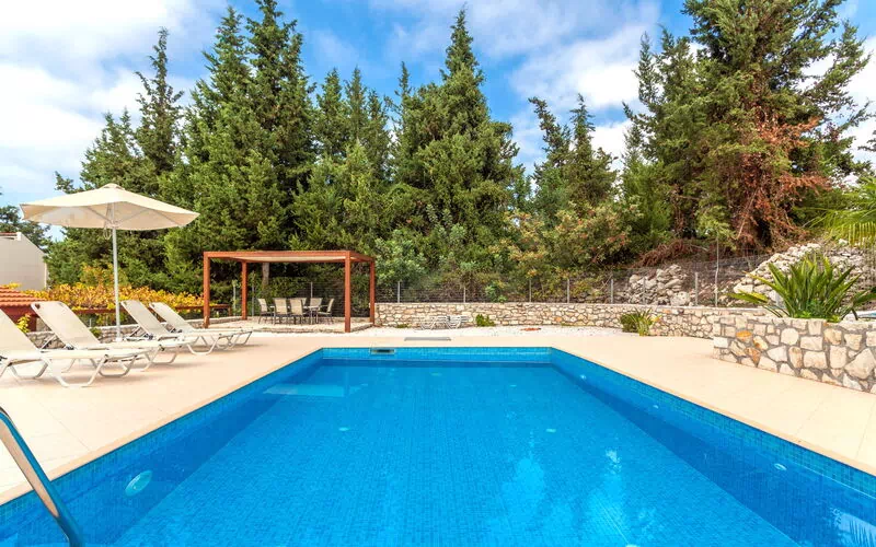 Den stora trädgården och de två vackra poolerna som uteslutande används av gästerna i de tre lägenheterna kommer att göra semestern avkopplande och trevlig. Den större poolen ligger högre än huset och har ett stort poolområde med solstolar och parasoller. Den mindre är en ovanmarkspool som ligger framför lägenheten med två sovrum.