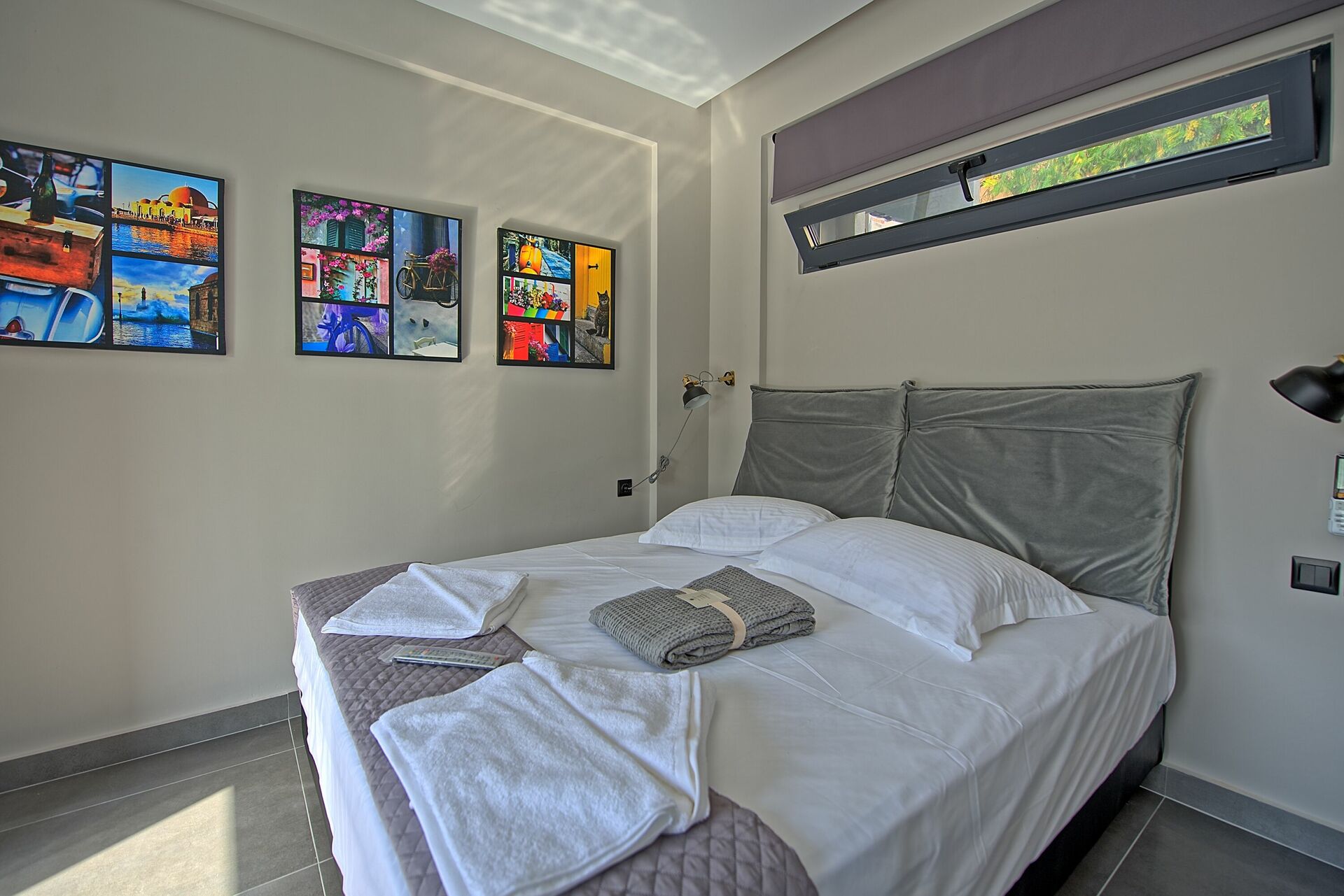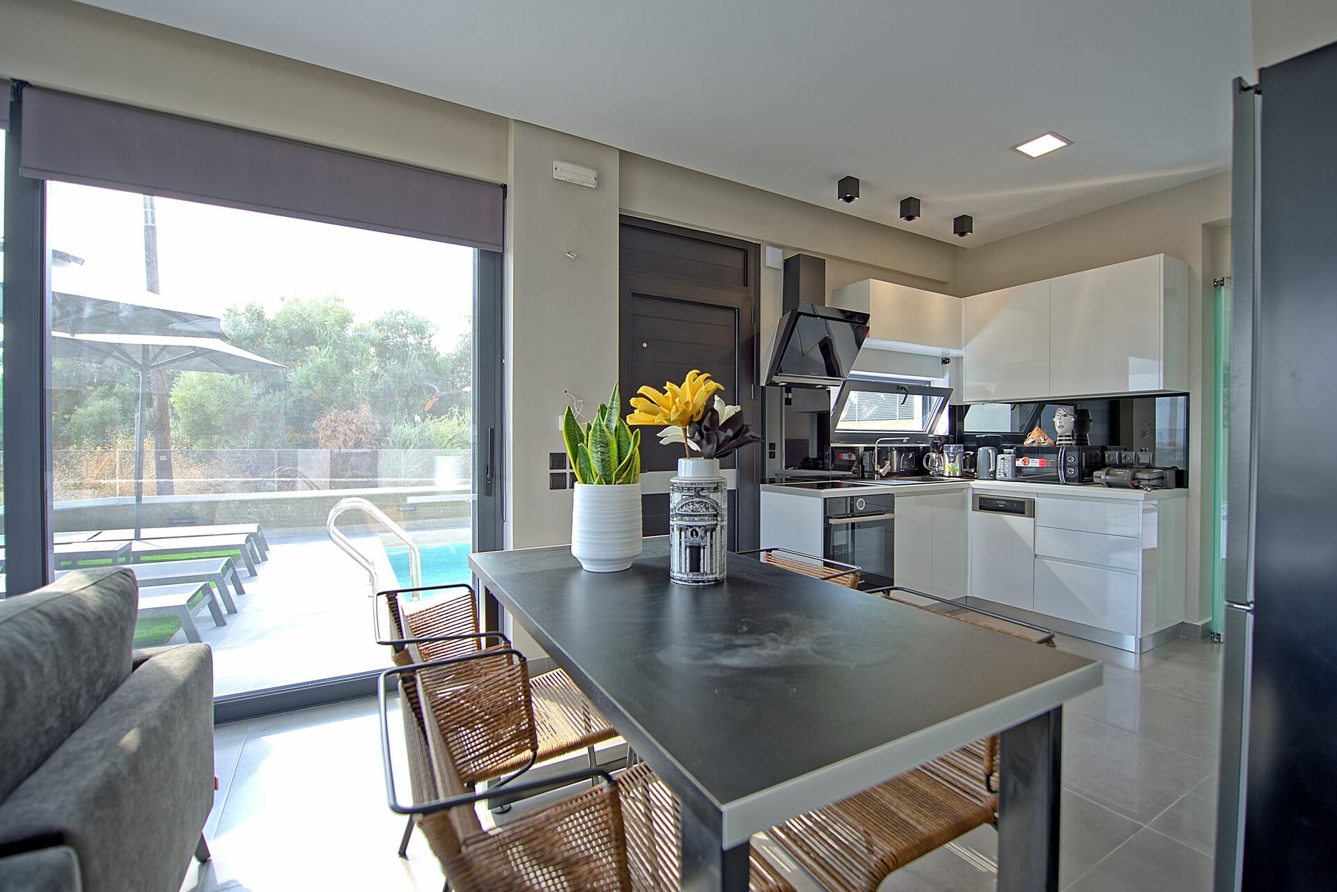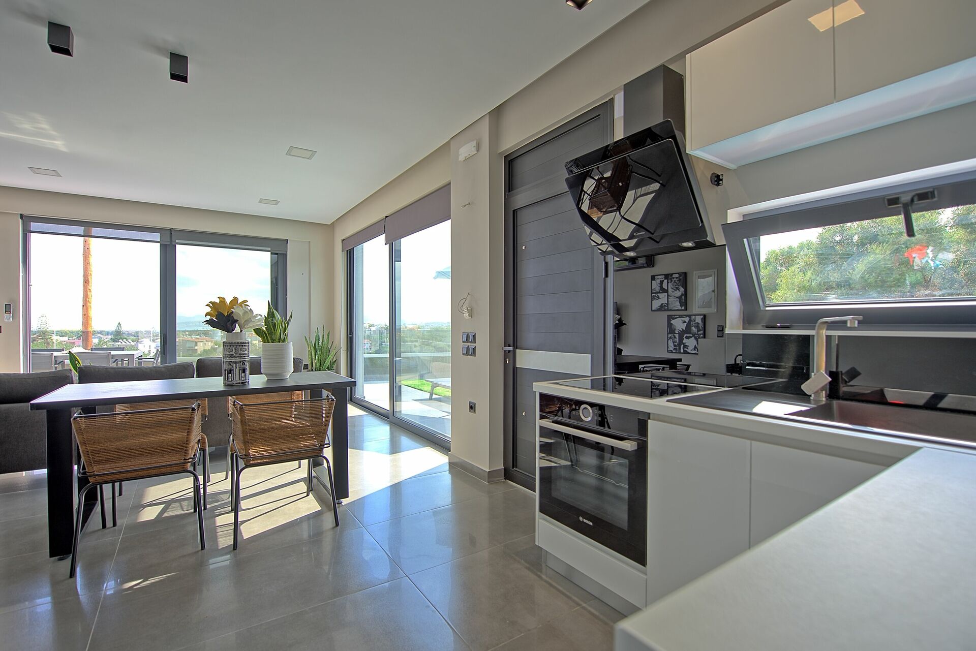 very modern villa with a lovely view of Chania. We didn’t rent a car and walked to the seafront which was doable but needed the pool afterwards. There was a bit of a problem with ants in the kitchen during our stay.
