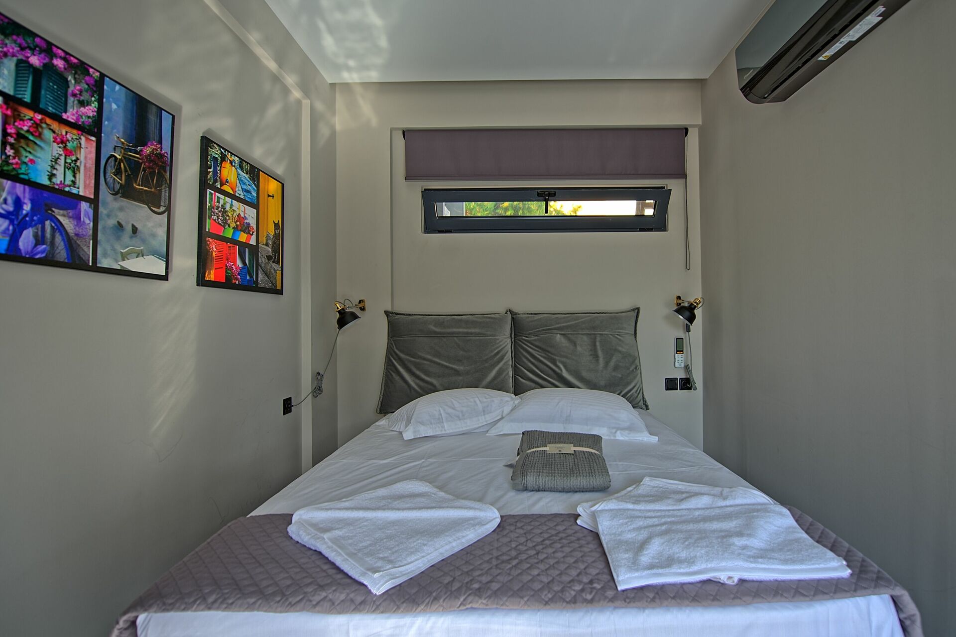 Beautiful! Pictures do not do this place justice. It’s located above a vineyard overlooking the sea. I don’t think you will get a better back drop. We went two adults 3 kids and it was perfect for us. Can’t cook plain one bit. The owner also very nice people. We got there late because of a delay and didn’t arrive until 00:30 which he then took me to the shop. Also his wife made us a dish as a gift and gave us some local raki as a gift.