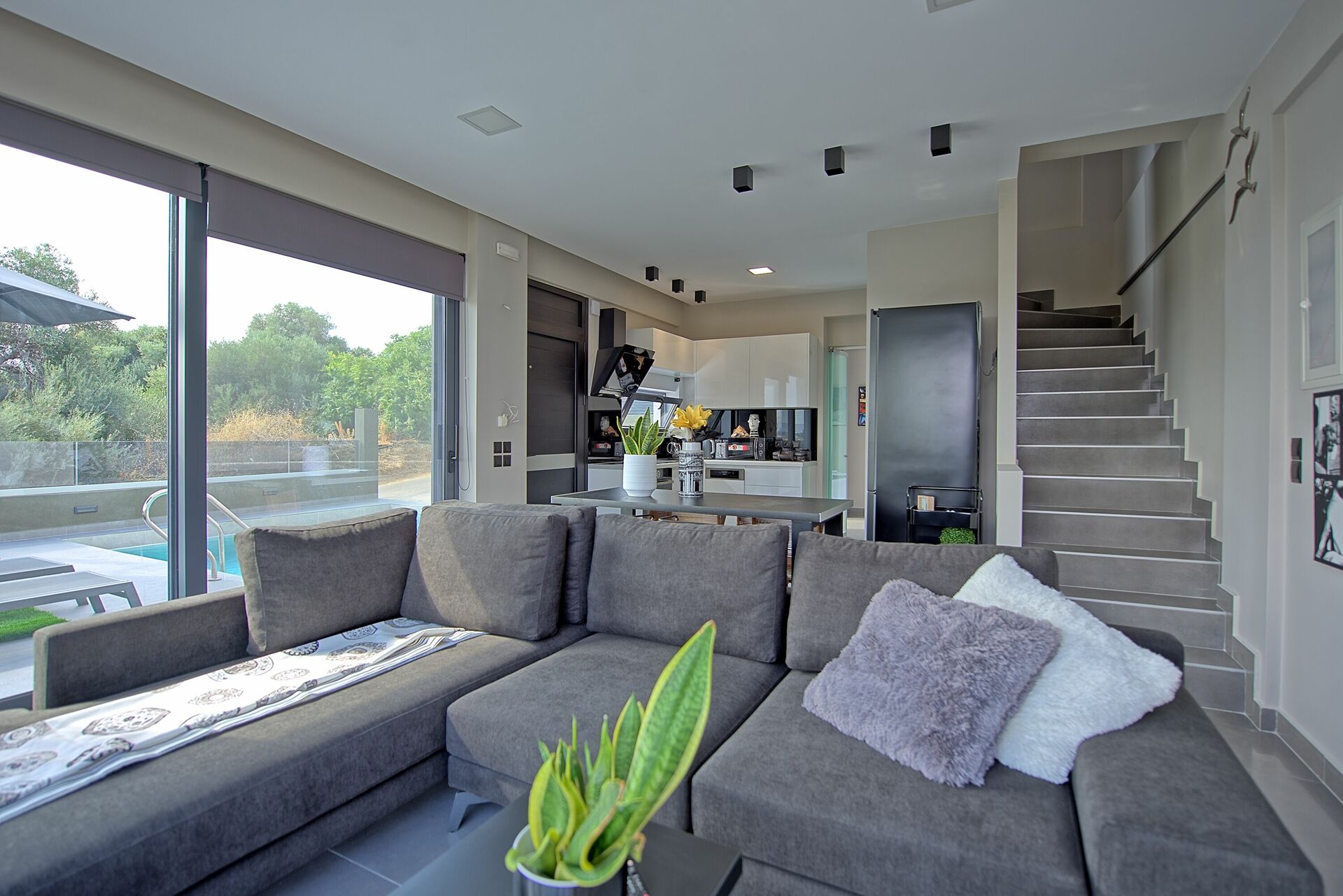 Très belle villa, bien placée proche de la mer et de La Canée. Moderne, bien équipée et décorée, piscine parfaite et place de parking dans la villa. Vue dégagée avec la mer au loin. Une fois les cigales endormies on entend un peu la route mais pas trop gênant. Kostas et Maria très gentils et serviables, accueil parfait. Je recommande !