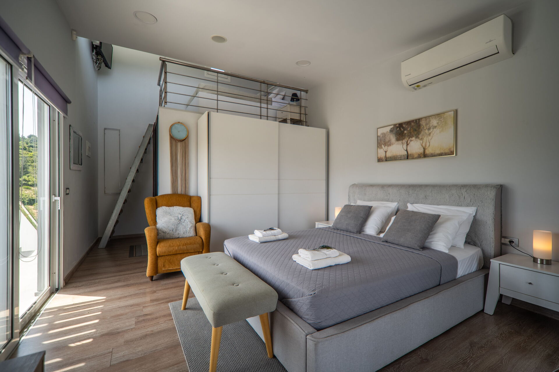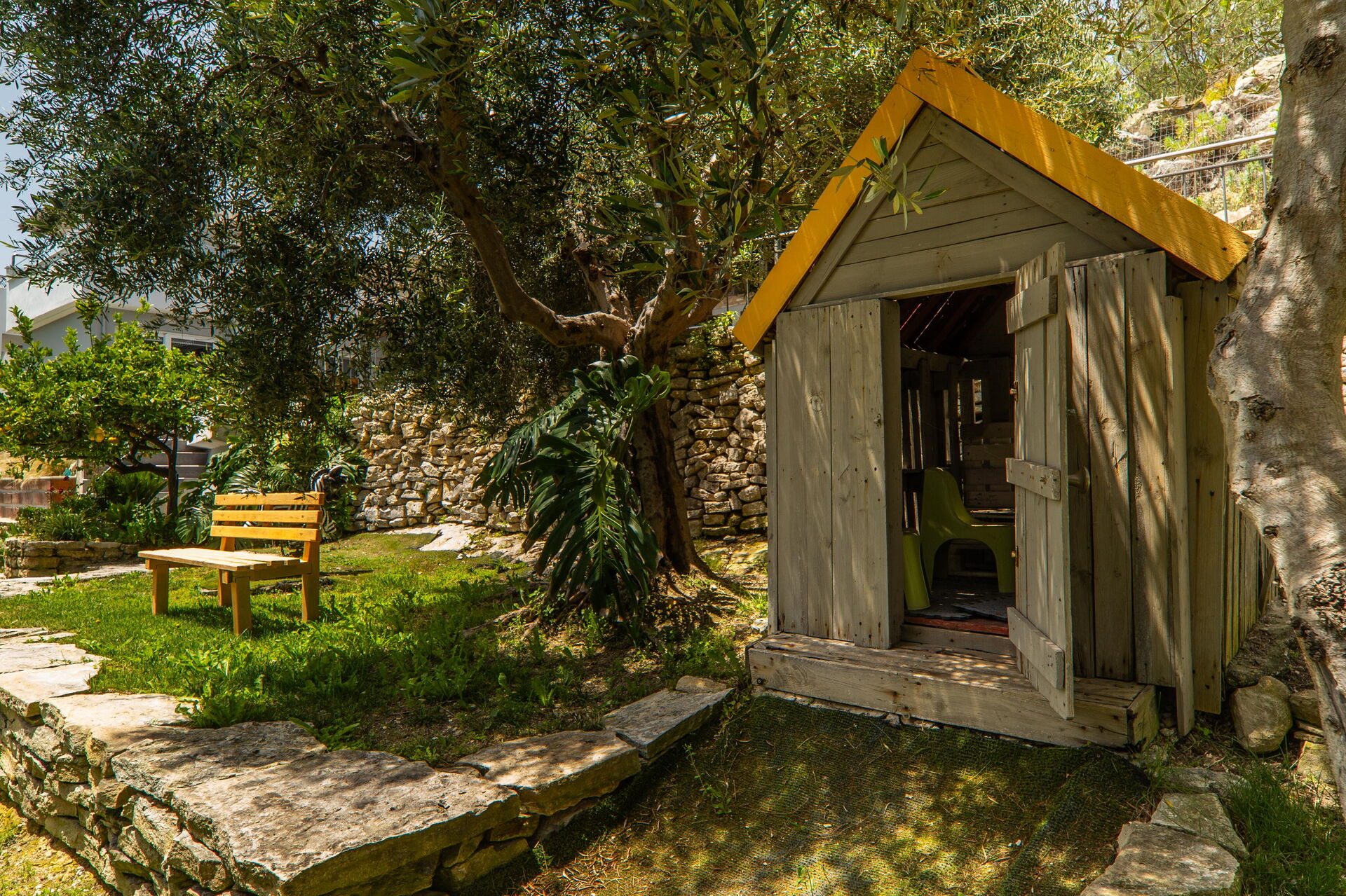 It offers a gorgeous garden, with plenty of trees, plants and flowers , all of them perfectly kept. What impressed us the most were the great number of lovely spots to relax: the 2 hammocks, at least 3 hanging chairs, sunloungers, 3 tables and chairs to sit and eat outside... one in the main garden, one on the first floor terrace, one at the Bbq: you will be spoiled for choices! We used to have breakfast on the terrace on the first floor, to enjoy the lovely view of the hills, and the sea in the distance in early morning, while we prefered the one in the garden, in front of the enlighted pool for dinner! For children a real playground has been created: swings of every kind , slide, a cute wood house, a climbing arch....and the 2 pools!!! Indoor, the property is not less attractive: the master bedroom is dreamy, with a gorgeous view and access to the jacuzzi! The other 2 bedrooms are lovely and both have access also on the garden. Every room is provided with smart tv and Ac. Also the kitchen area is just fabolous: you will find everything you may need: Oven, dishwasher, many tools to cook... and eveything is very convenient: you can access the first floor also from an external staircase for example, there is a nice area to hang clothes after using the washing maschine, the villa is equpped with an alarm system, and the outdoor automatic light system works perfectly. But what makes this property so special, are of course the owners and their welcome.