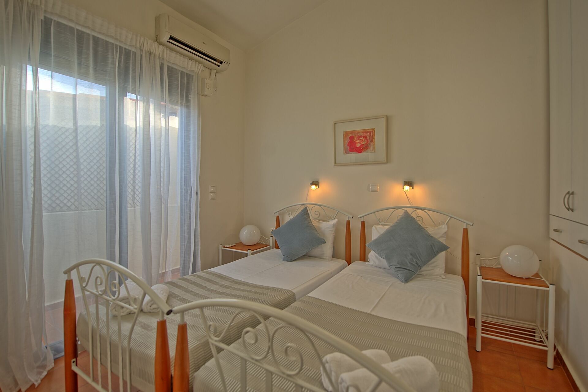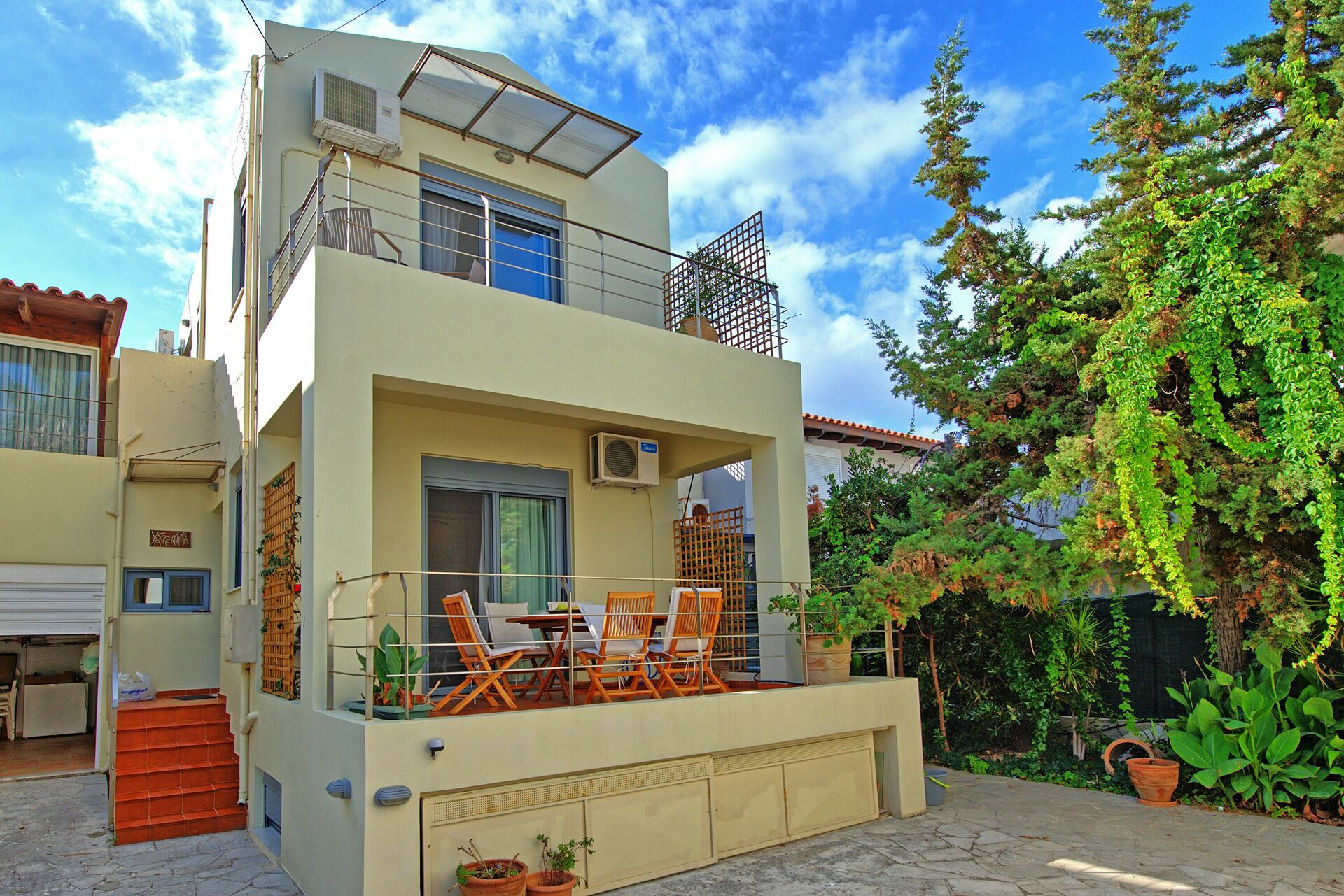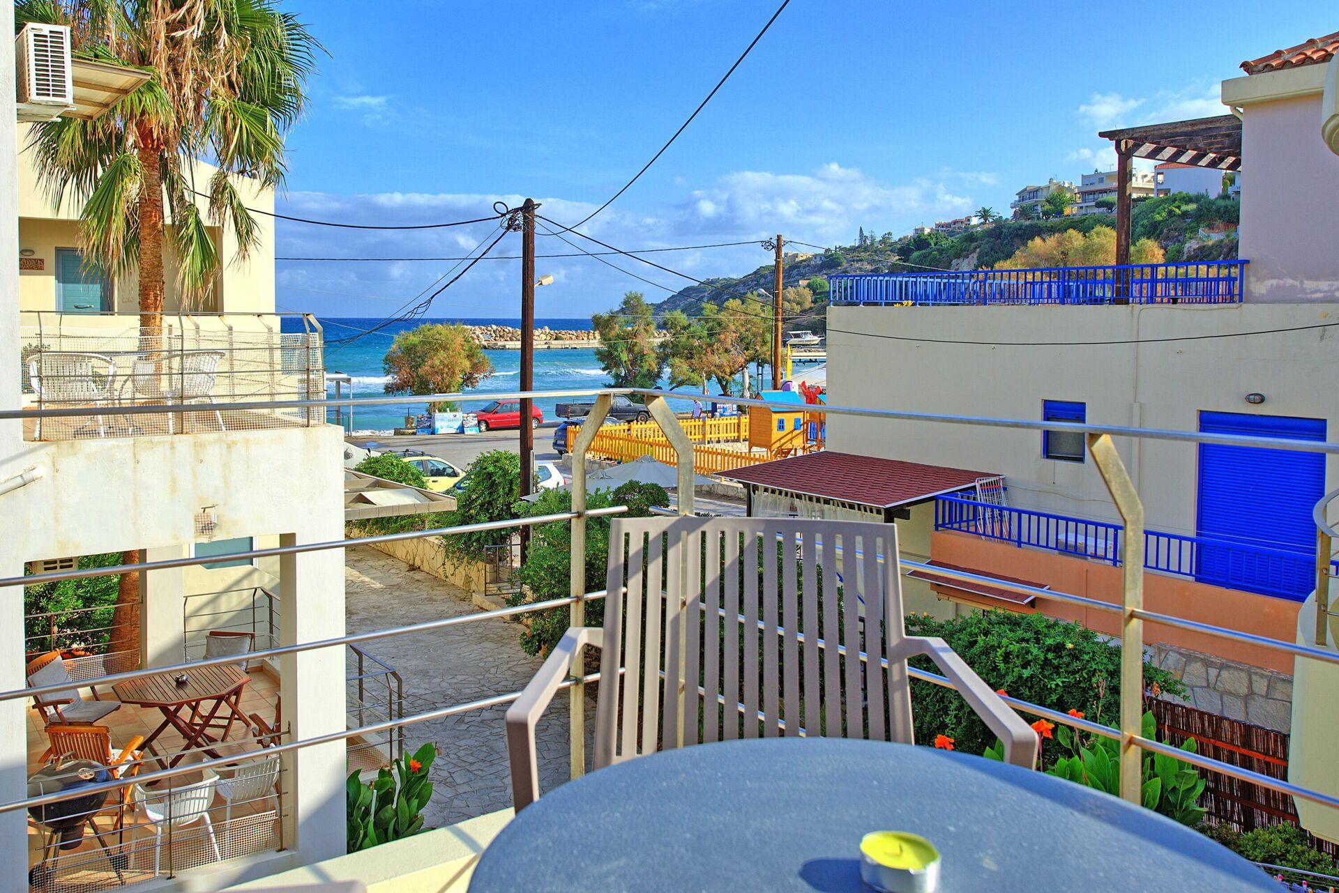 An ideal villa in the centre of Almyrida, steps from the beach. This was an ideal home for our family vacation. The basement room was great for my teenage sons whilst the upstairs bedrooms had bright views from their balconies.