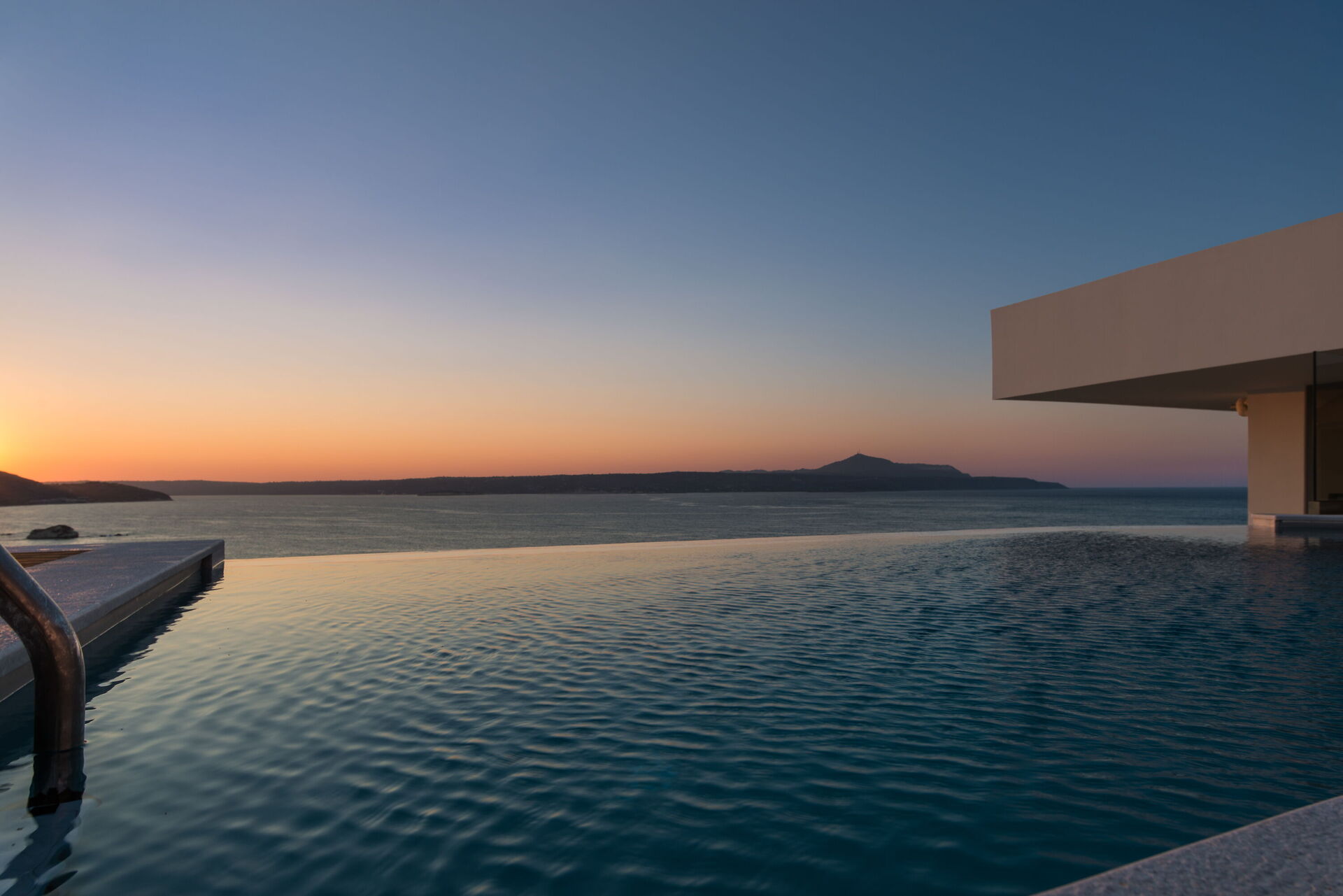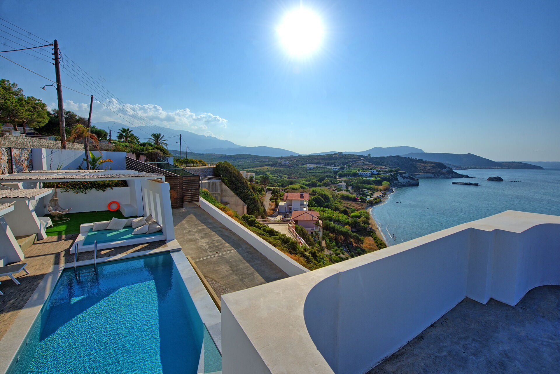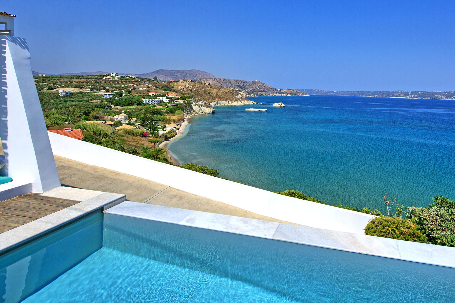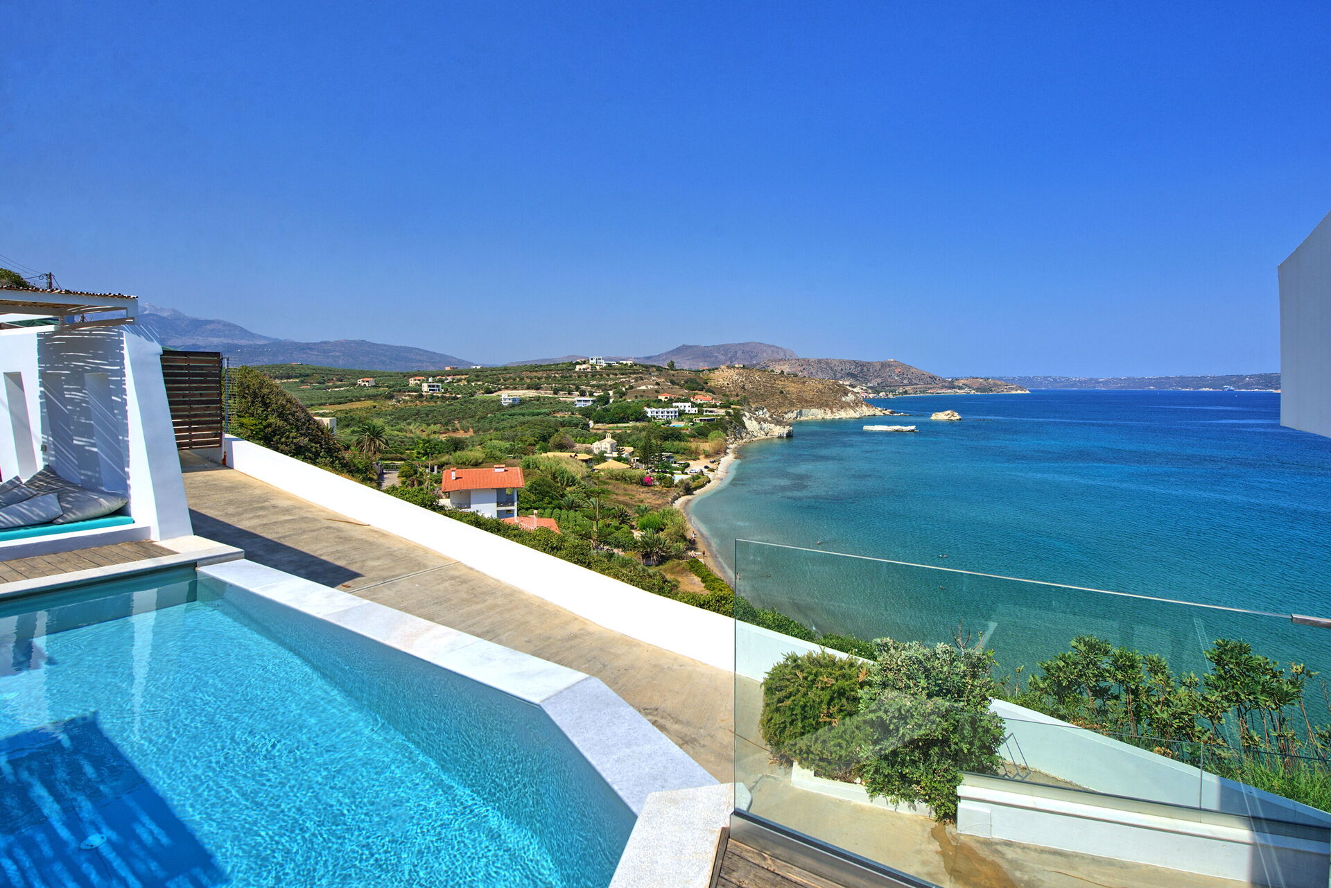 Villa Sapphire är ett elegant semesterhus på Kreta med en privat pool och panoramautsikt över havet.