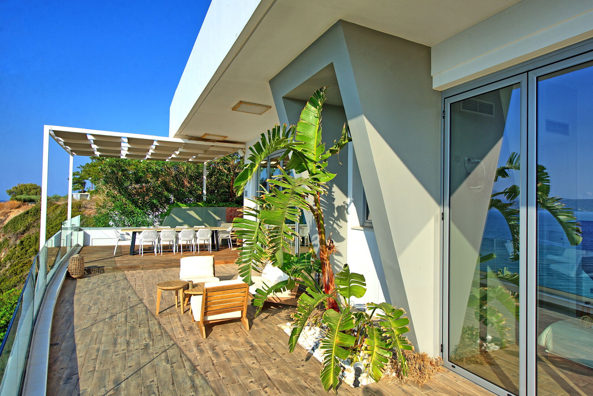 Semesterhuset är byggt längs de naturliga terrasserna och havsklipporna, smart arrangerade för att erbjuda en parkeringsplats, en underbar infinitypool där du kan sola och läsa en bra bok. det finns också en möblerad terrass för att sola eller njuta av middagar utomhus med fantastisk utsikt över havet och solnedgången.