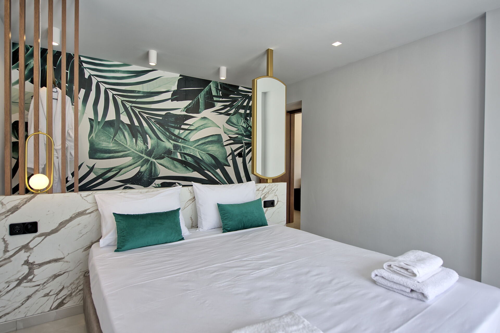 Dubbelrum (luftkonditionering) med dusch i sovrummet, egen wc och tillgång till balkong