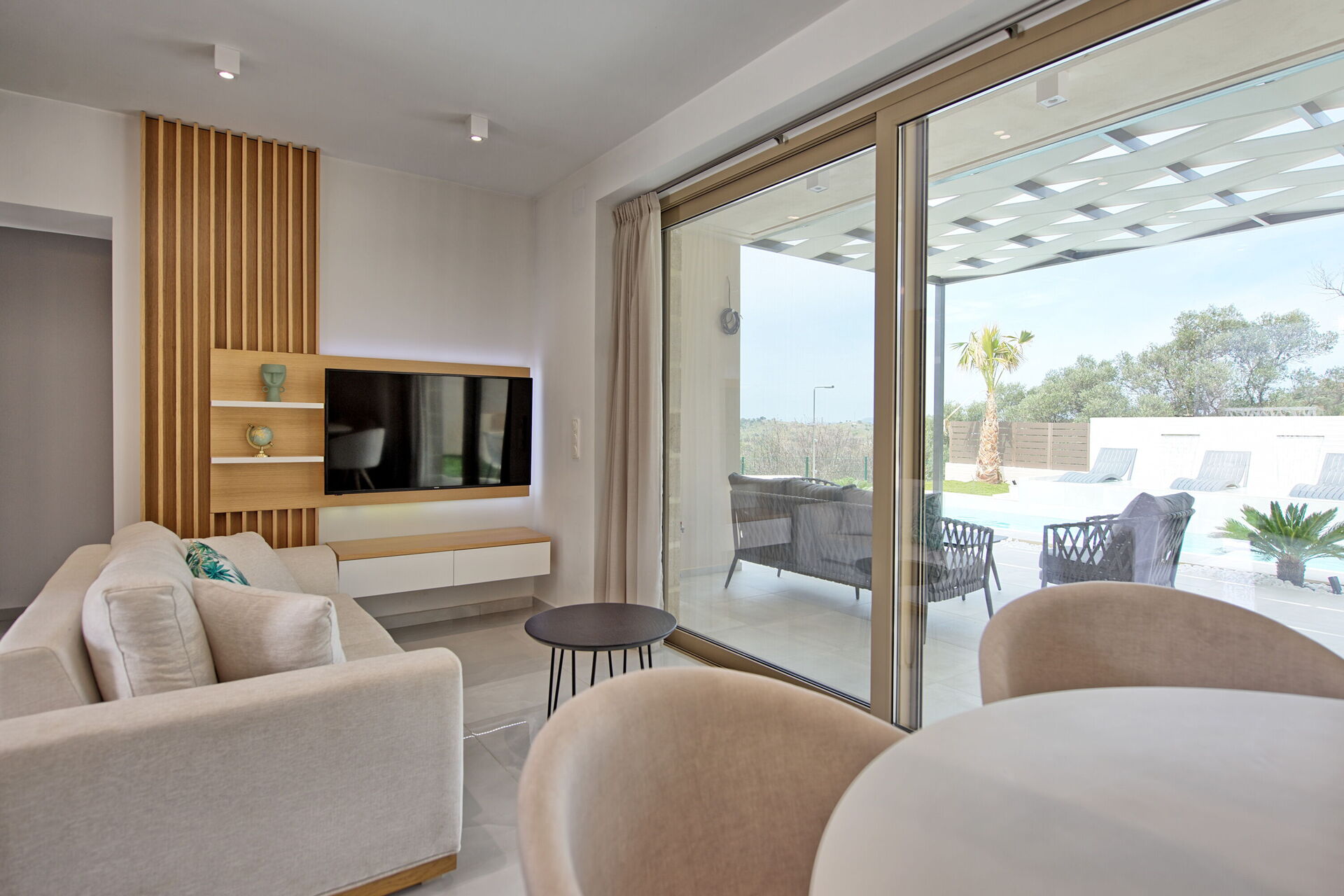 Semesterhuset är en del av Silentium-komplexet, en naturskön grupp med 3 fristående semesterhus, alla 3 med egen pool. Förutom Villa Silentium Olia hyr vi ut Villa Silentium Ionia och Villa Silentium Evilia: de tre semesterhusen kan hyras tillsammans av stora familjer eller en stor grupp vänner.