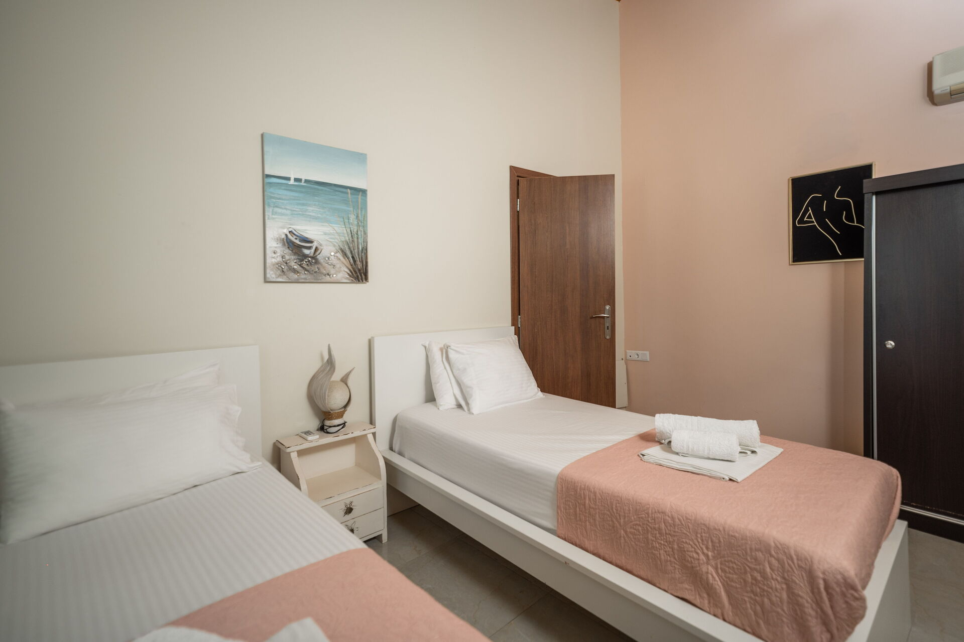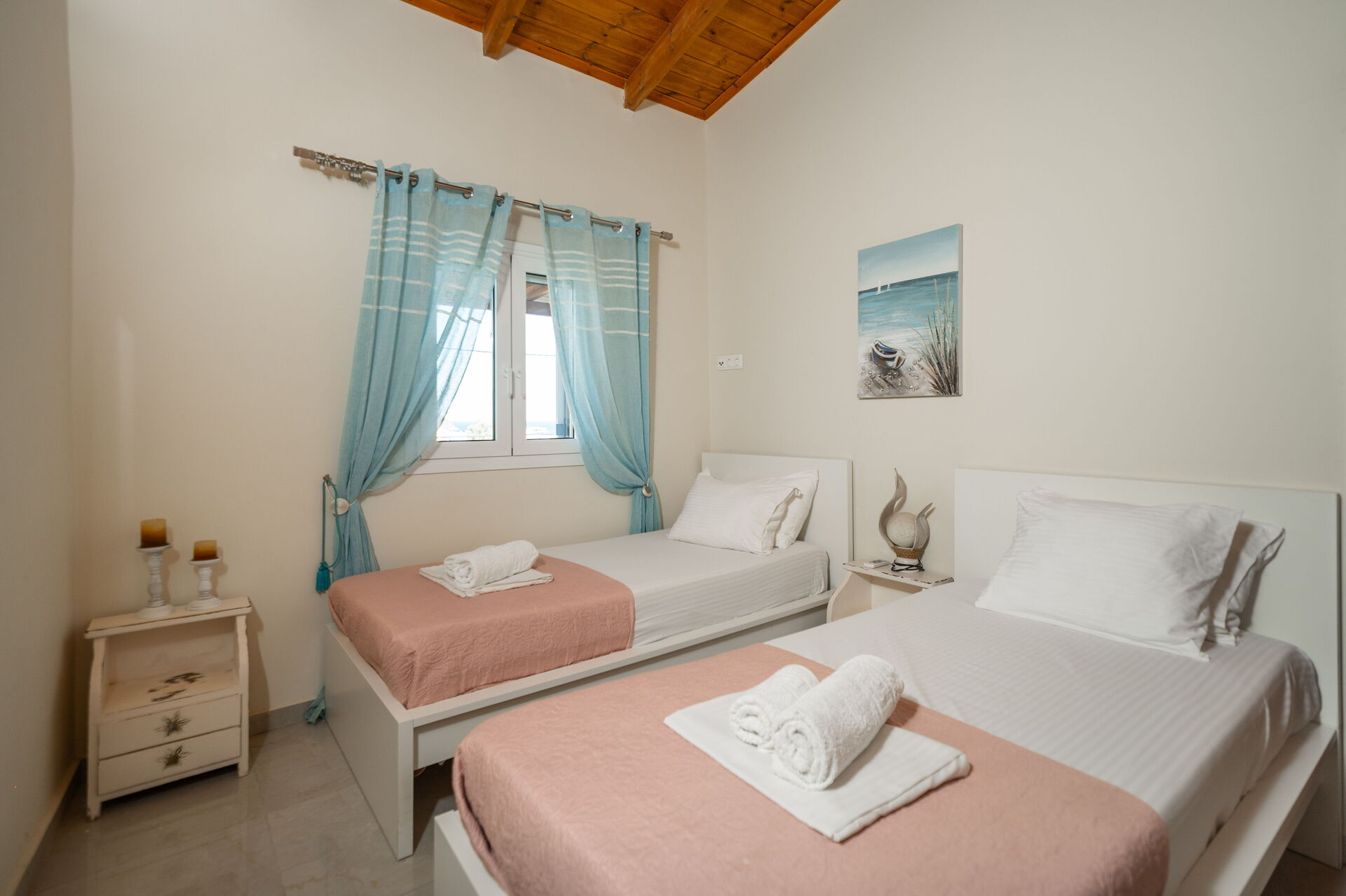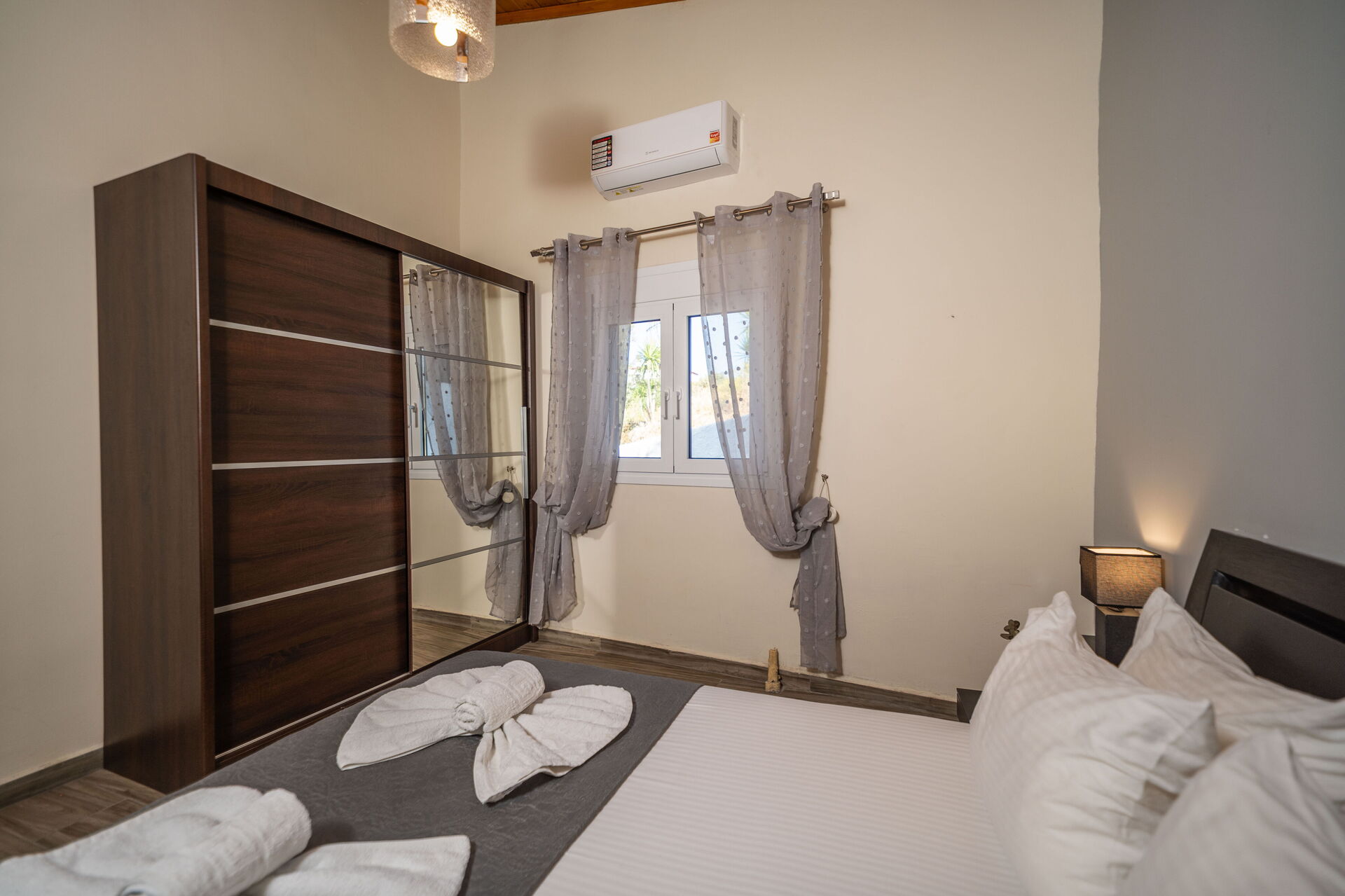 Semesterhuset är i ett plan, har luftkonditionering och är smakfullt inrett i en enkel och modern stil. Huset har plats för upp till sex gäster tack vare tre mysiga sovrum. Det finns också två badrum, så här finns gott om utrymme för alla!