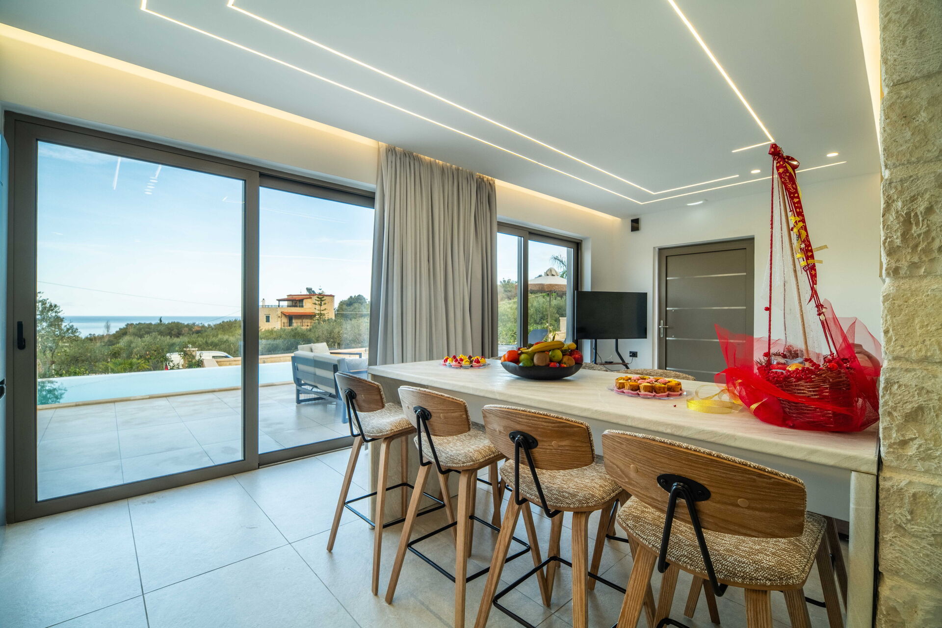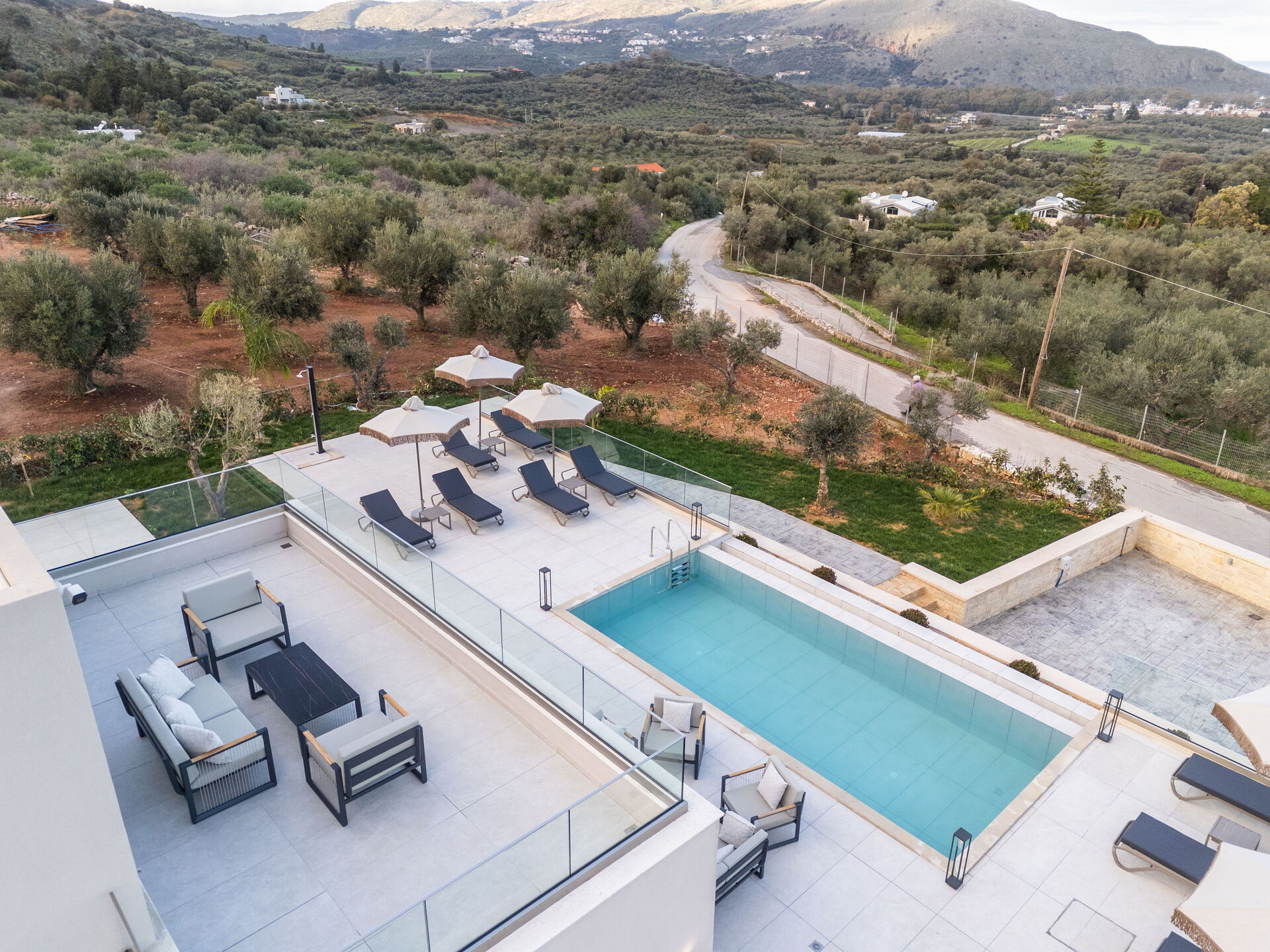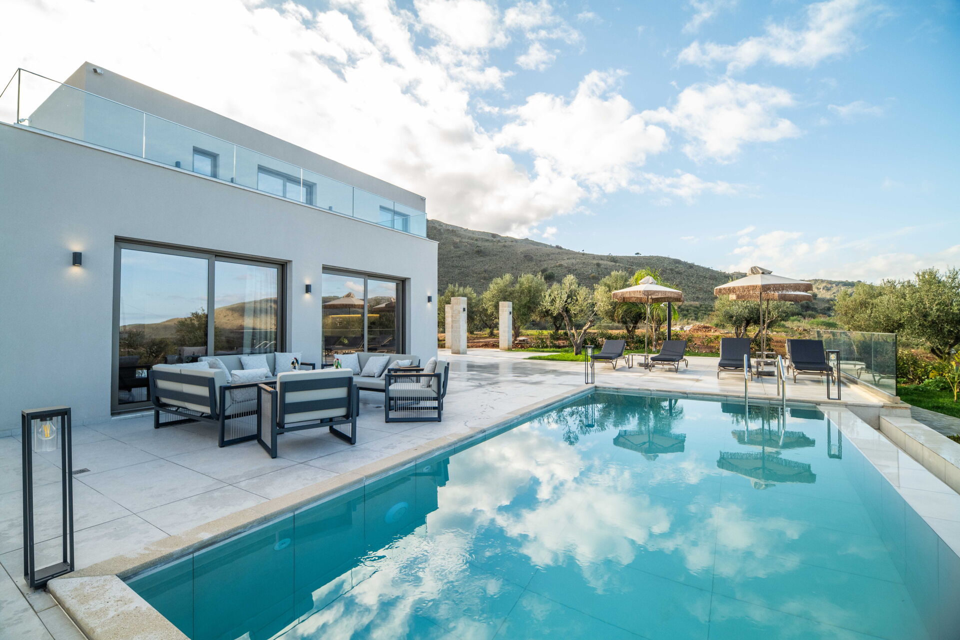 Huset stod färdigt i januari 2026, så allt i Villa Vasilissa är helt nytt. På tomten finns en naturskön pool med panoramautsikt över havet och det omgivande kretensiska landskapet – perfekt för ett svalkande dopp under varma sommardagar.