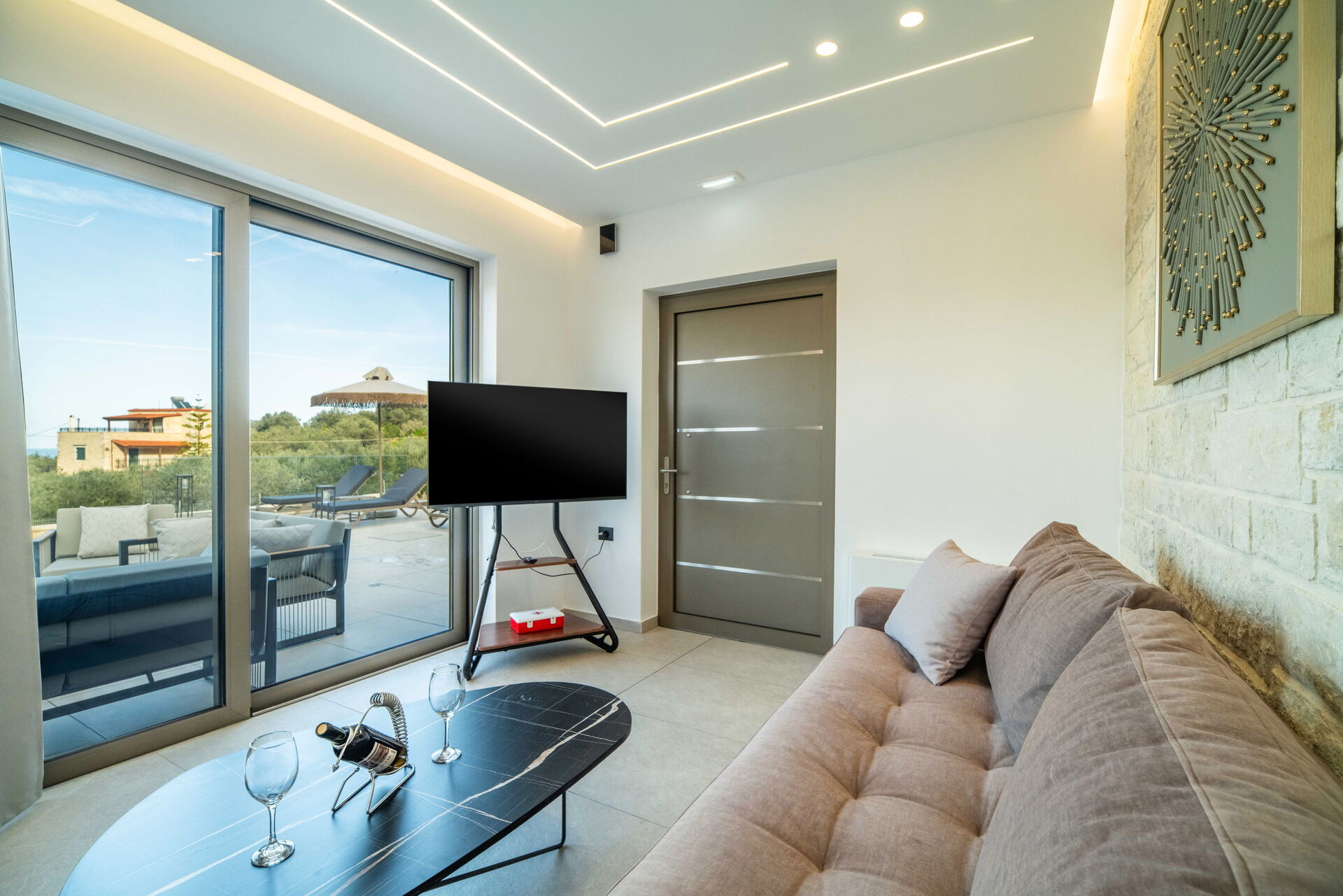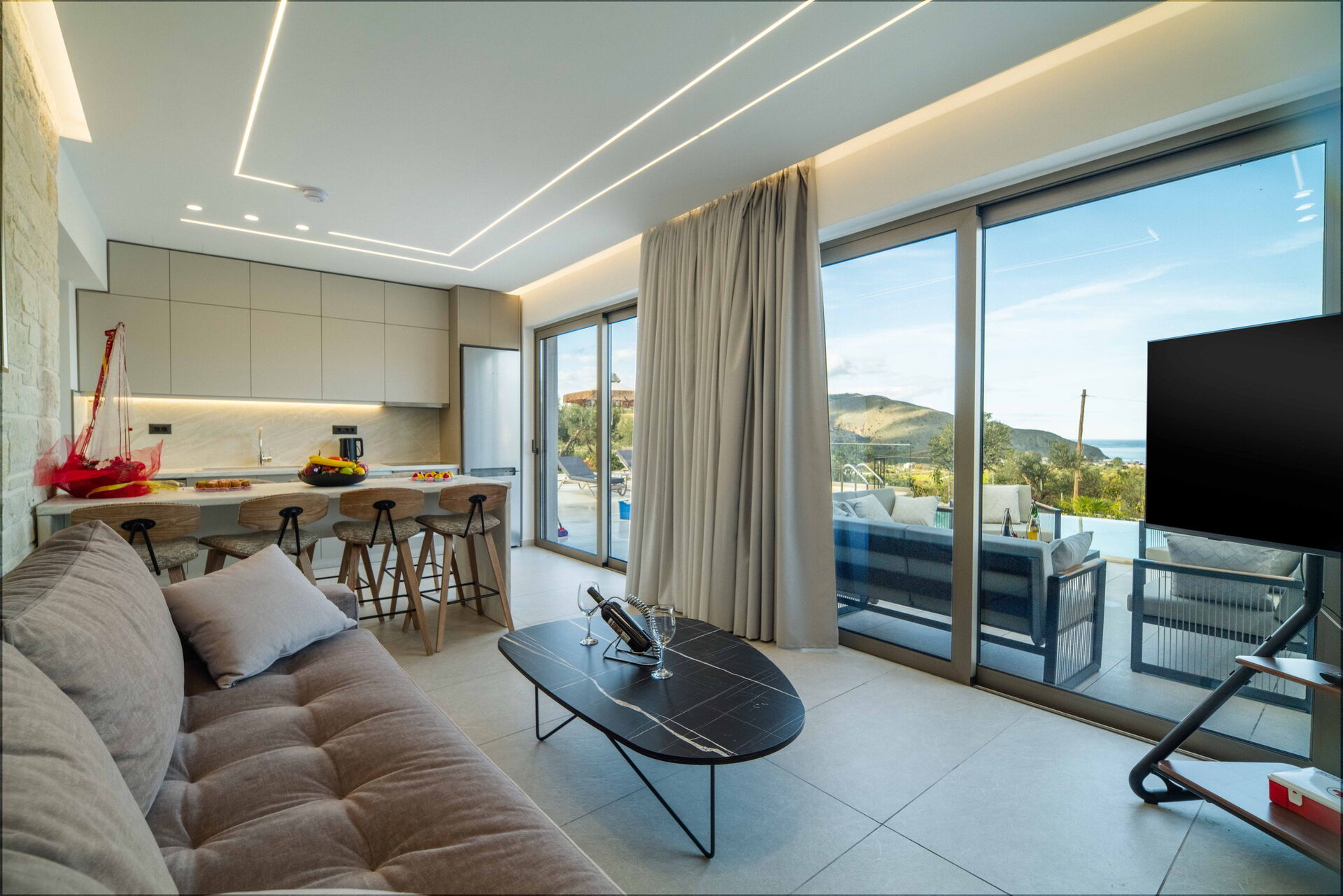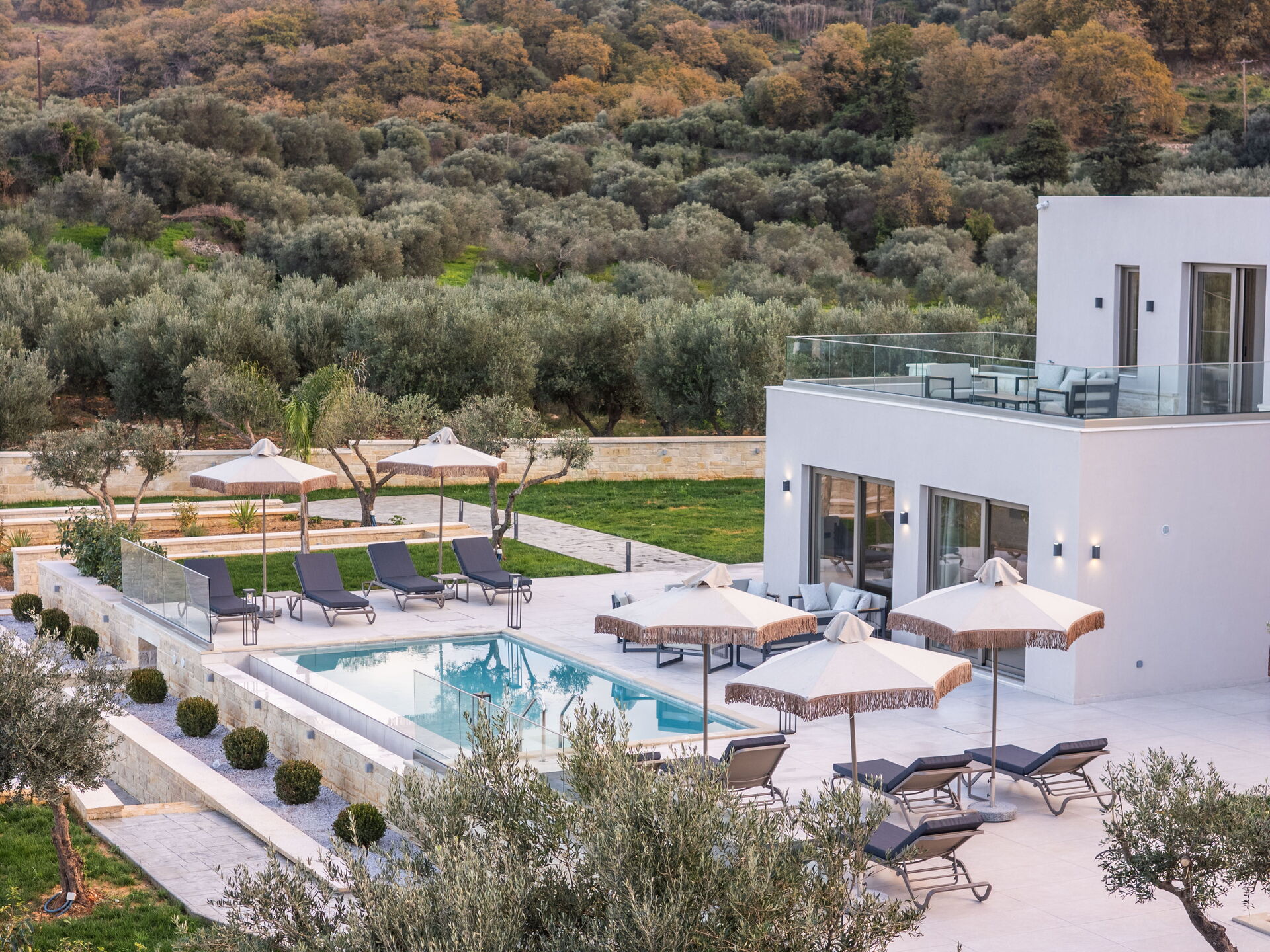 Huset stod färdigt i januari 2026, så allt i Villa Vasilissa är helt nytt. På tomten finns en naturskön pool med panoramautsikt över havet och det omgivande kretensiska landskapet – perfekt för ett svalkande dopp under varma sommardagar.