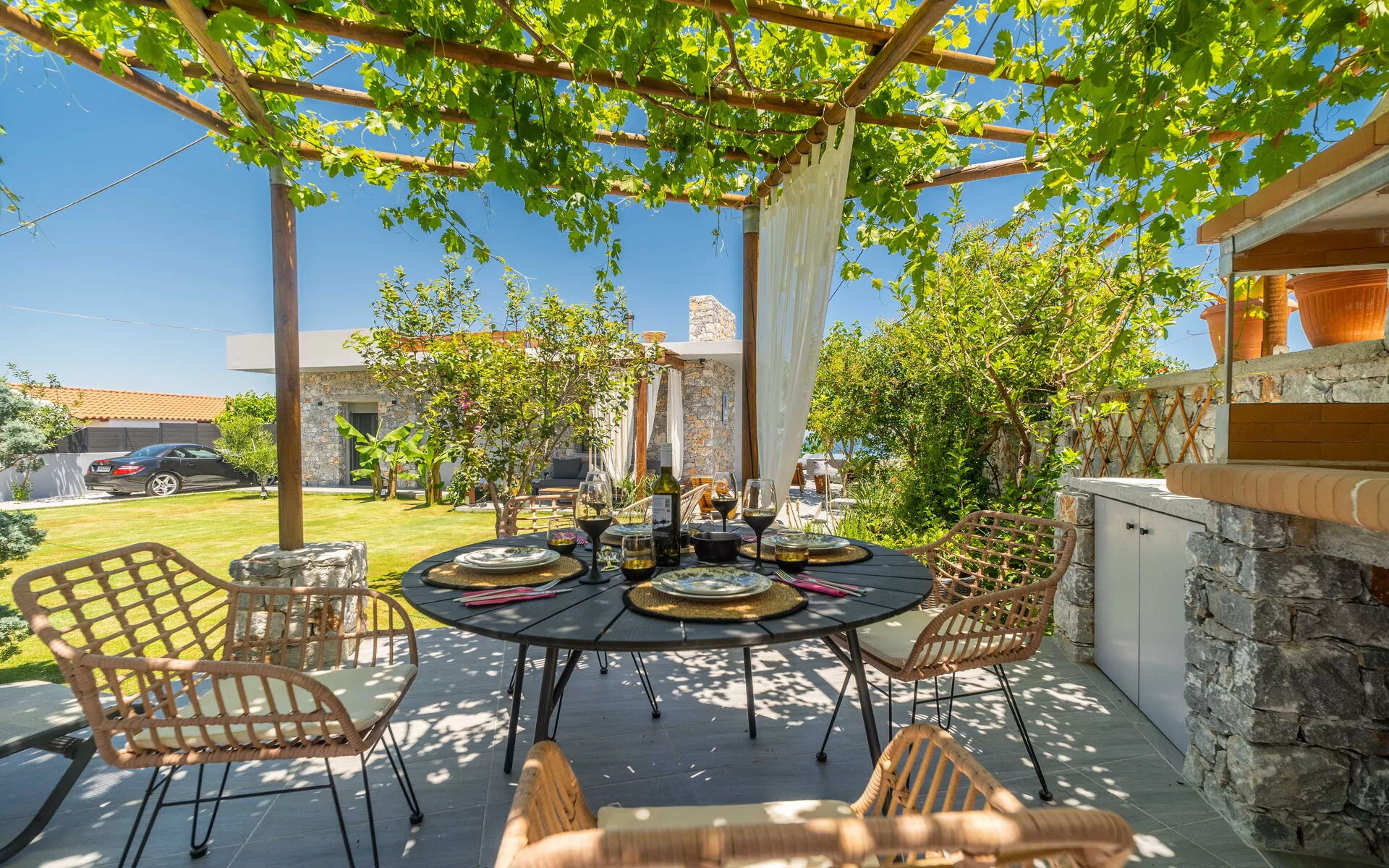 La Villa Katrine est un véritable havre de paix. Nichée dans le charmant village de Kastellos, elle bénéficie d’un emplacement idéal : seulement 10 minutes des supermarchés, commerces locaux et stations-service. La maison est décorée avec goût, dispose d’une cuisine parfaitement équipée, d’un superbe jardin et d’une piscine offrant une vue imprenable.