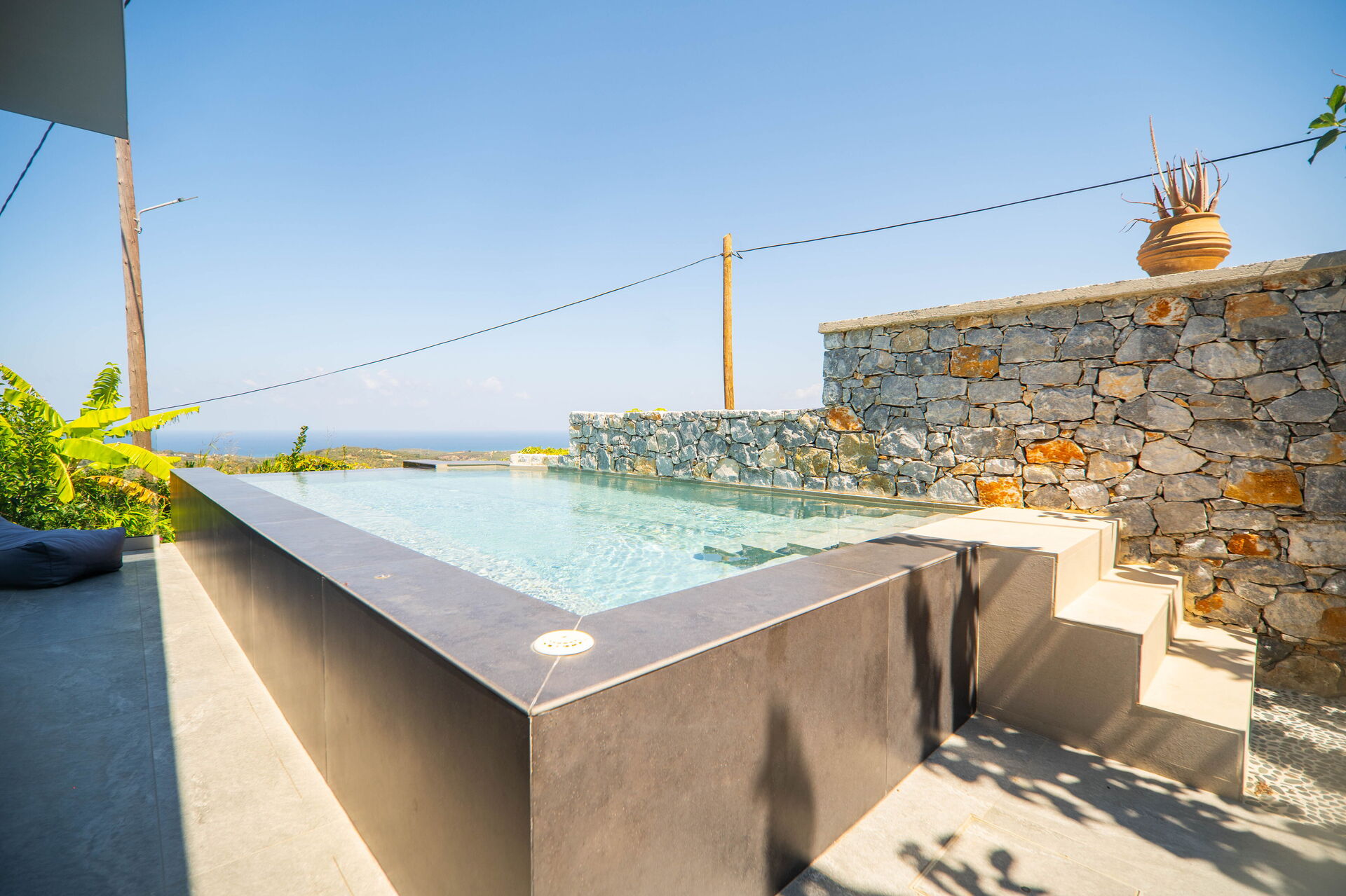 - Privat pool med jacuzzihörna (6 x 3 m; djup: 1 m)