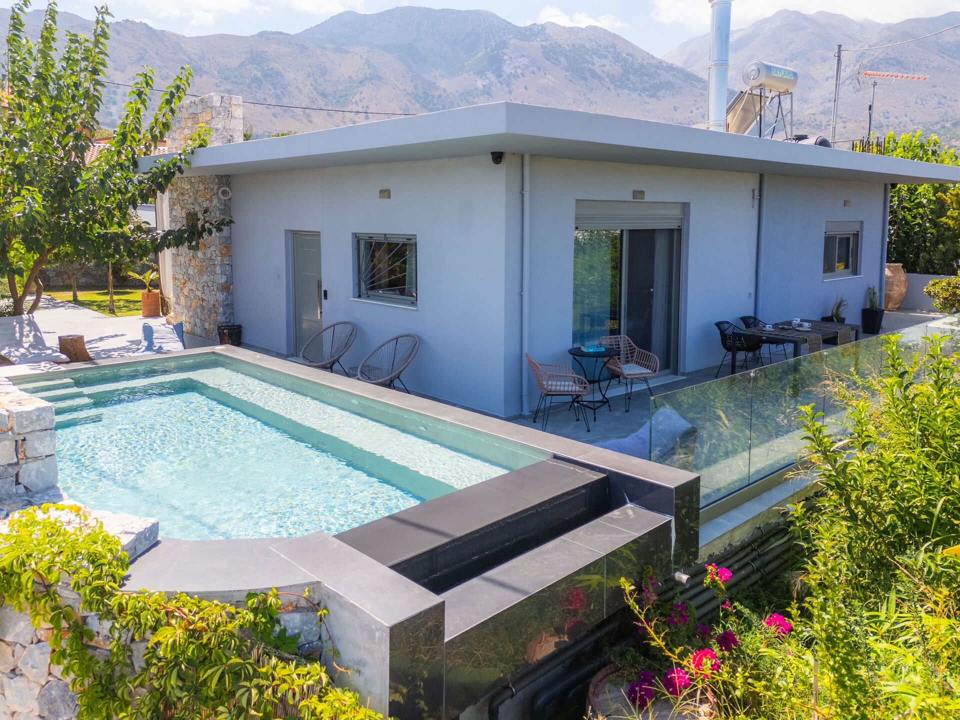 Från semesterhuset kan du nå viktiga sevärdheter som Chania, som har venetianska rötter, och Rethymno. Upplev den romantiska atmosfären i de gamla stadskärnorna, utforska butikerna vid stranden och smaka på det grekiska köket i de traditionella restaurangerna vid havet.