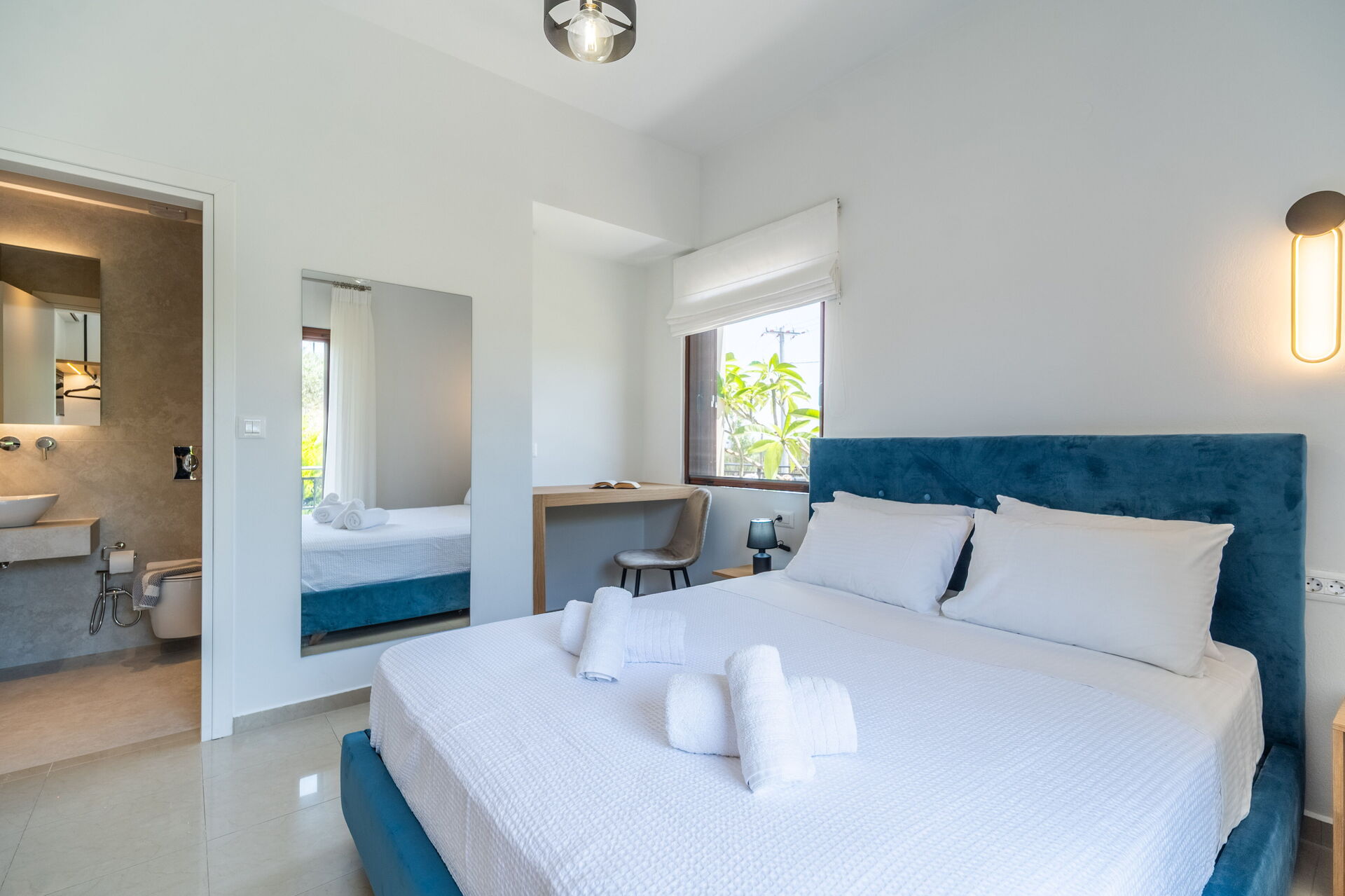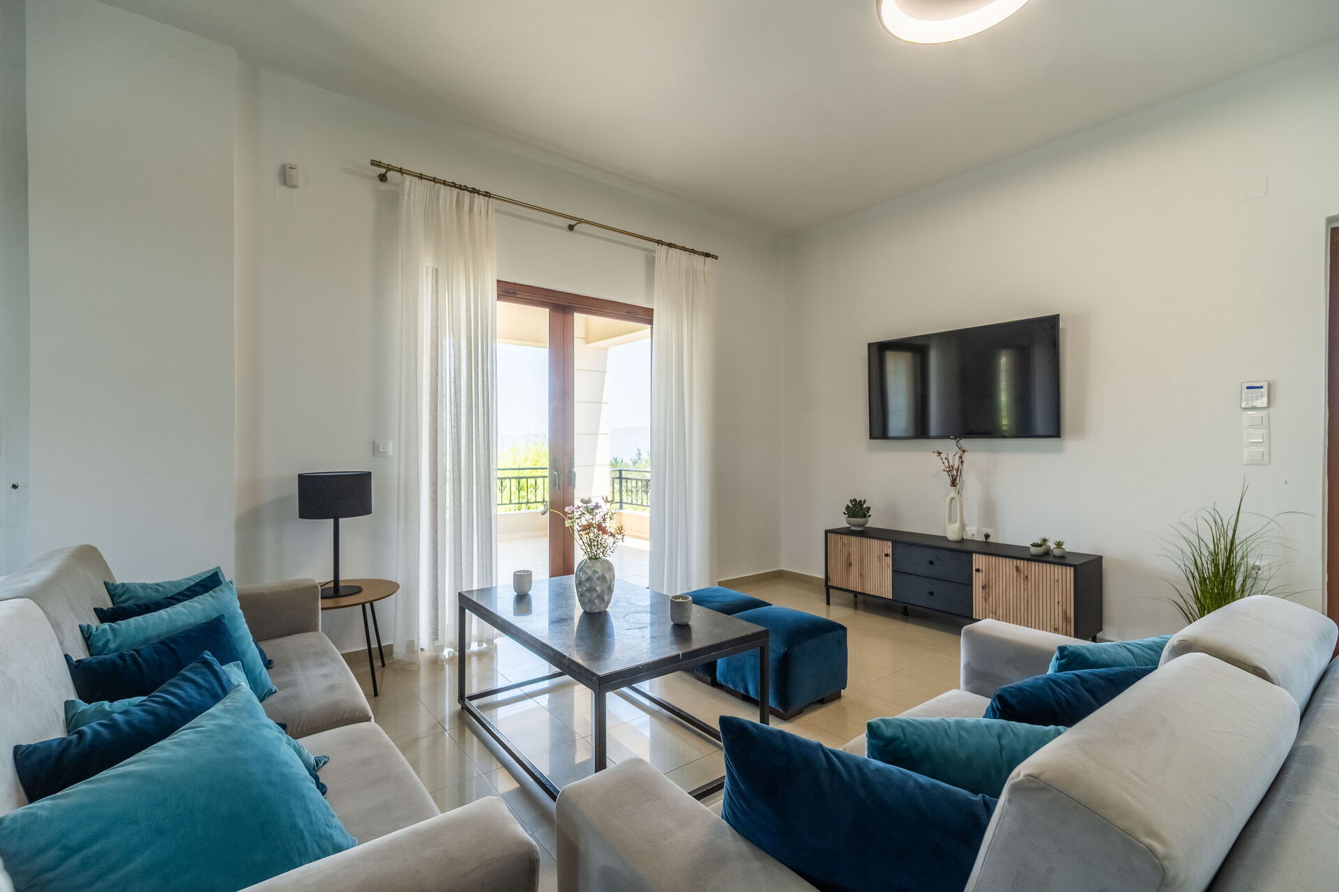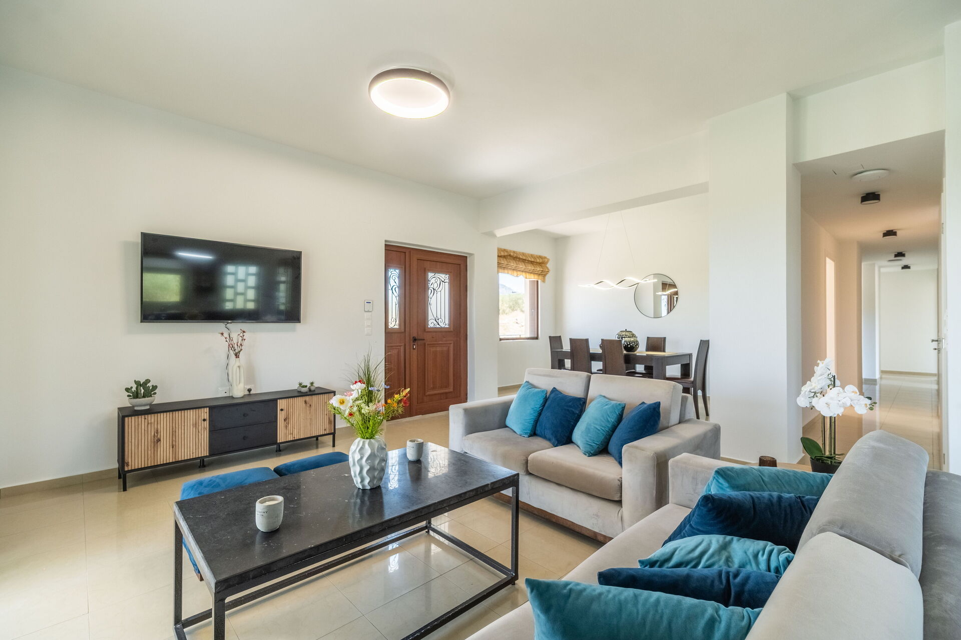 Villa Aetheria är perfekt för en familj eller en grupp vänner som vill semestra tillsammans på Kreta. Huset är enplans och har 4 sovrum, stilfullt inrett med en ljus och inbjudande interiör. Huset har bekvämt utrymme för 8 personer.