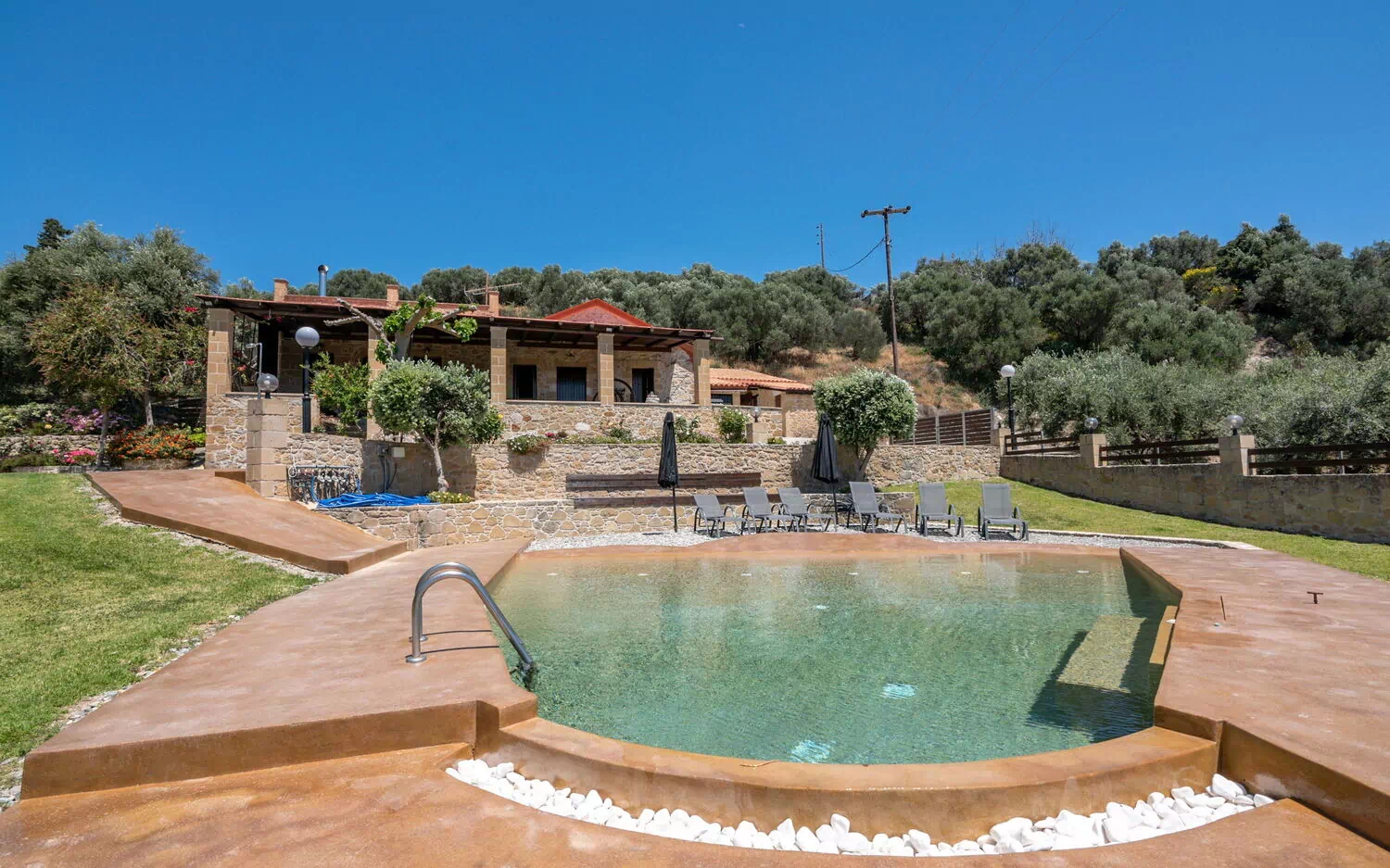 - naturskön solplats runt poolen