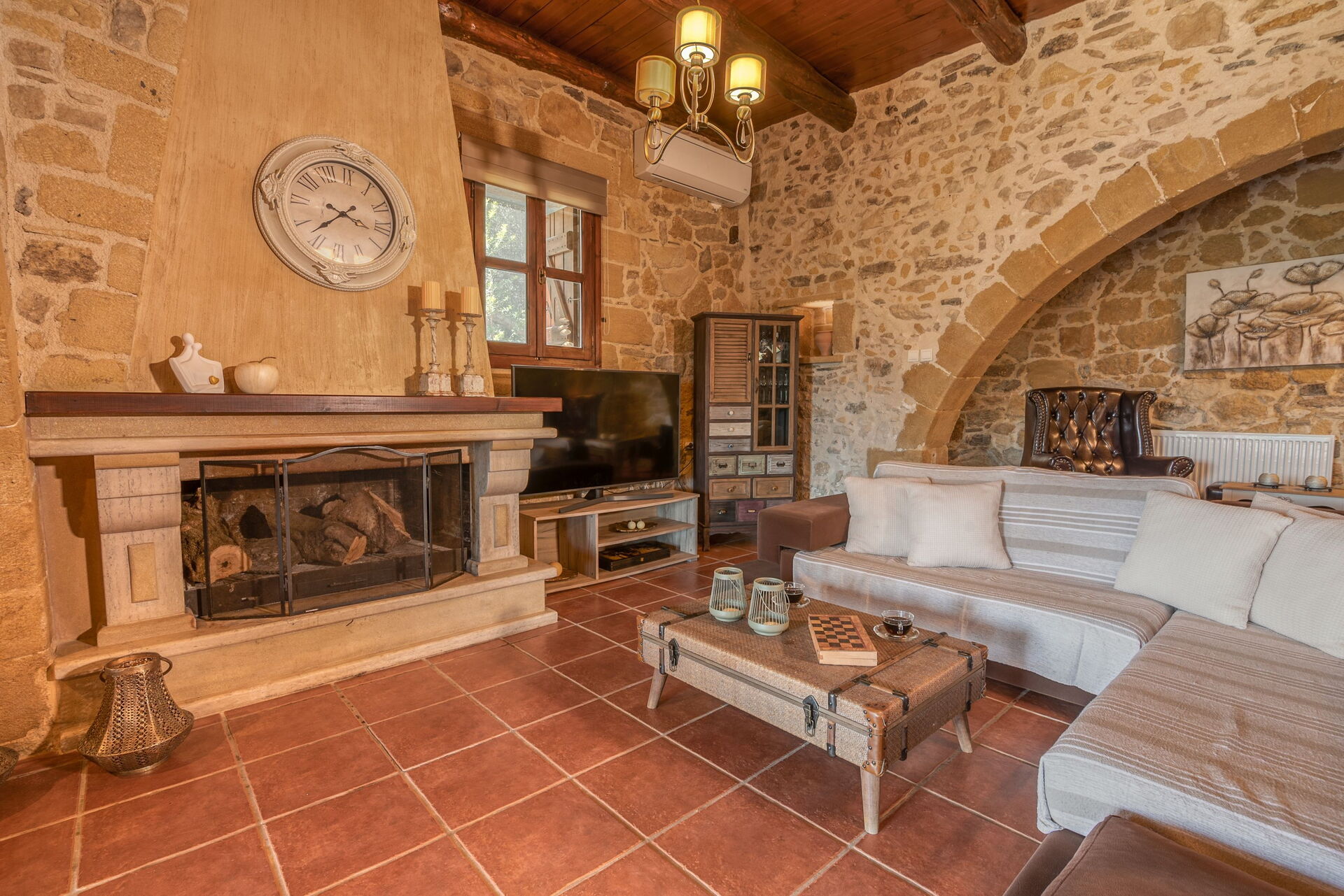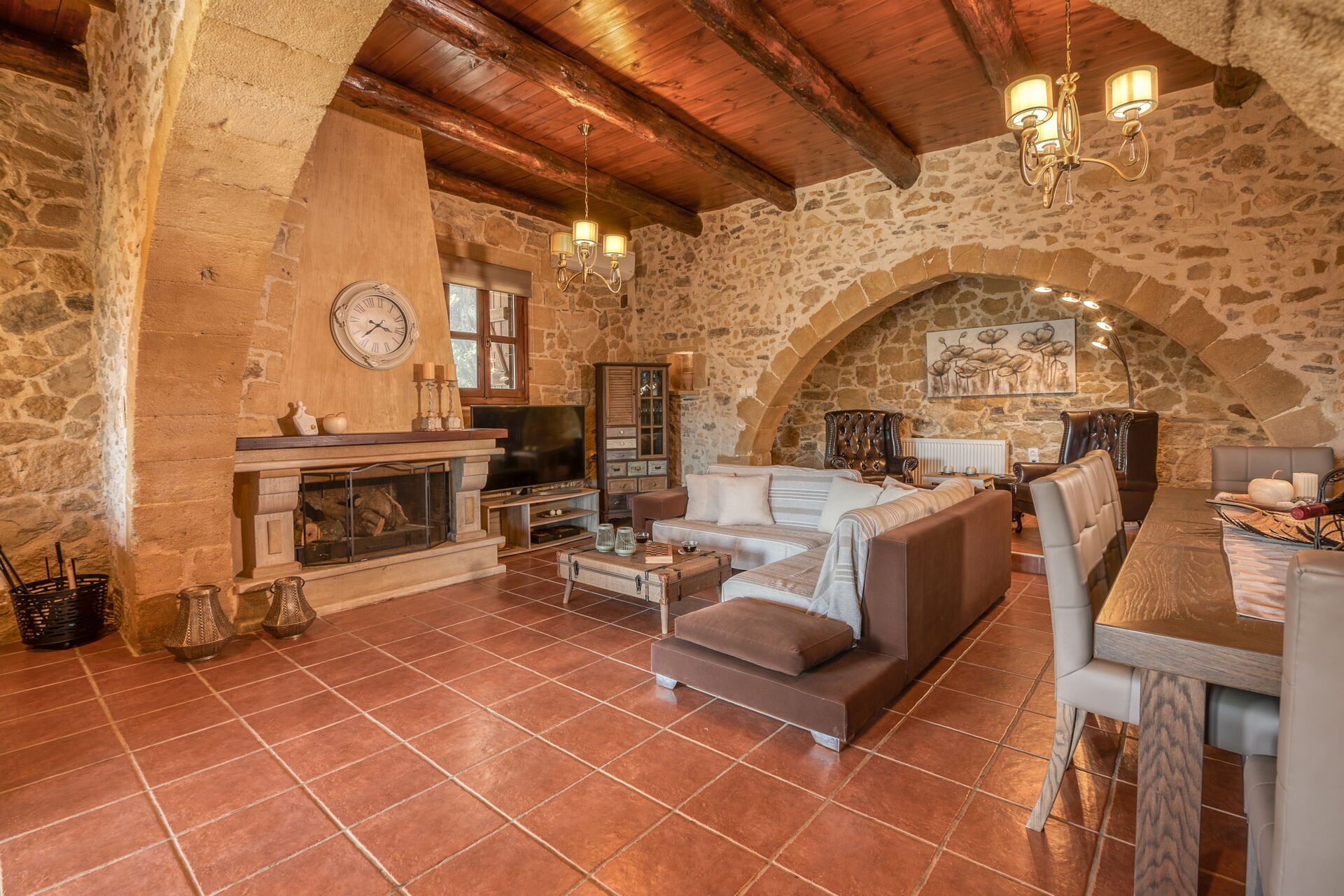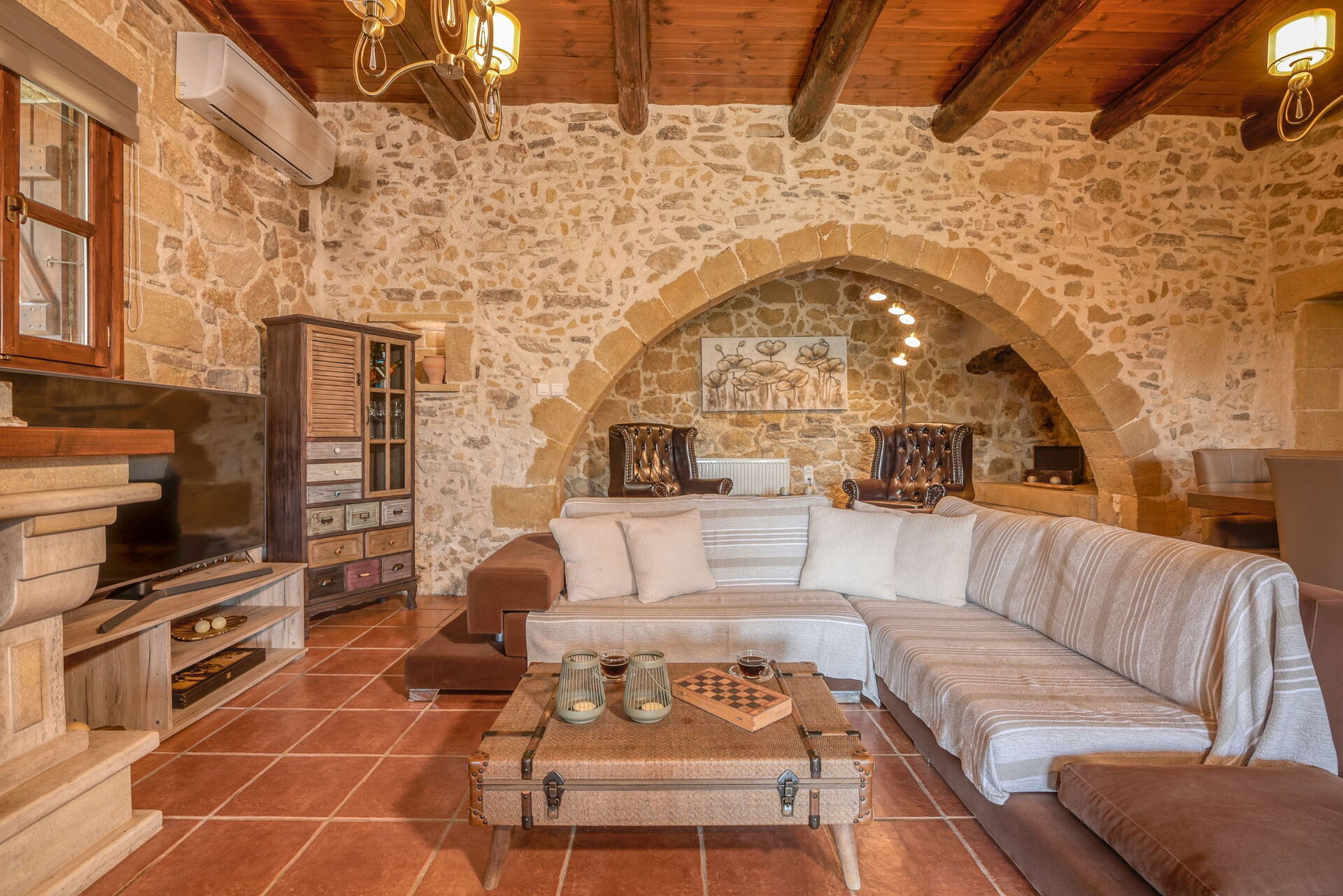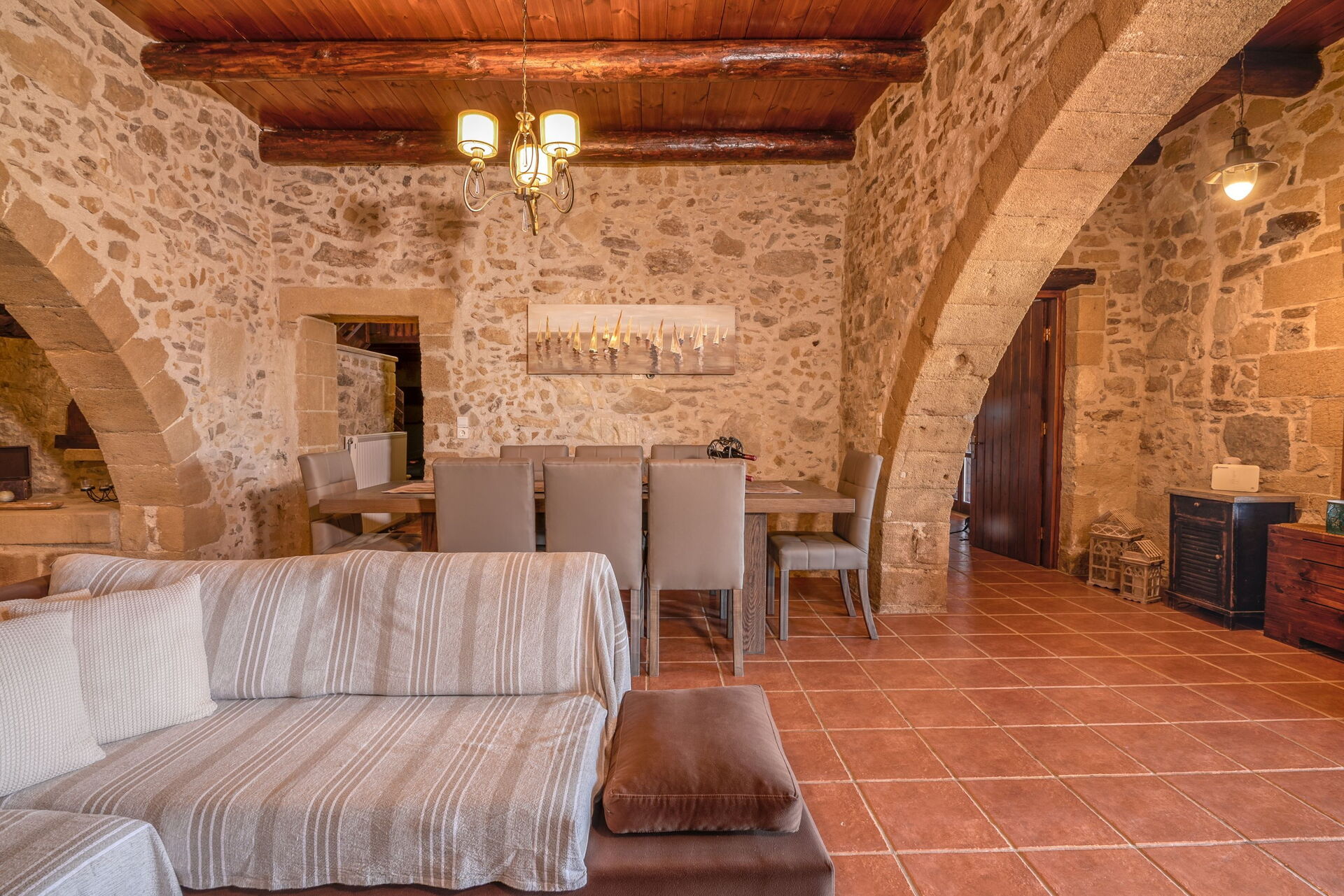 Huset är smakfullt inrett och utrustat med alla bekvämligheter. De ursprungliga arkitektoniska dragen har bevarats med lokal sten och traditionella kretensiska inslag.