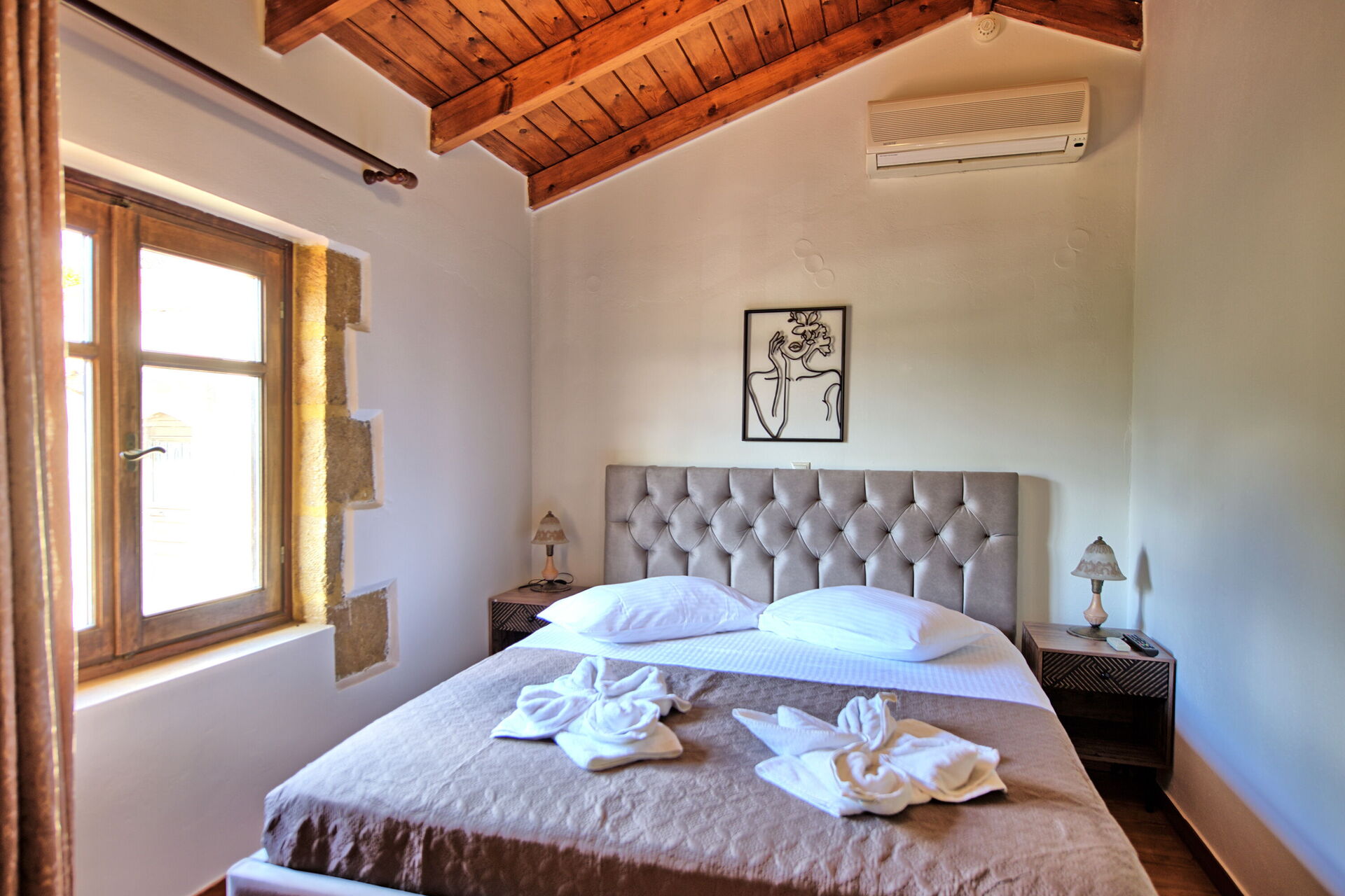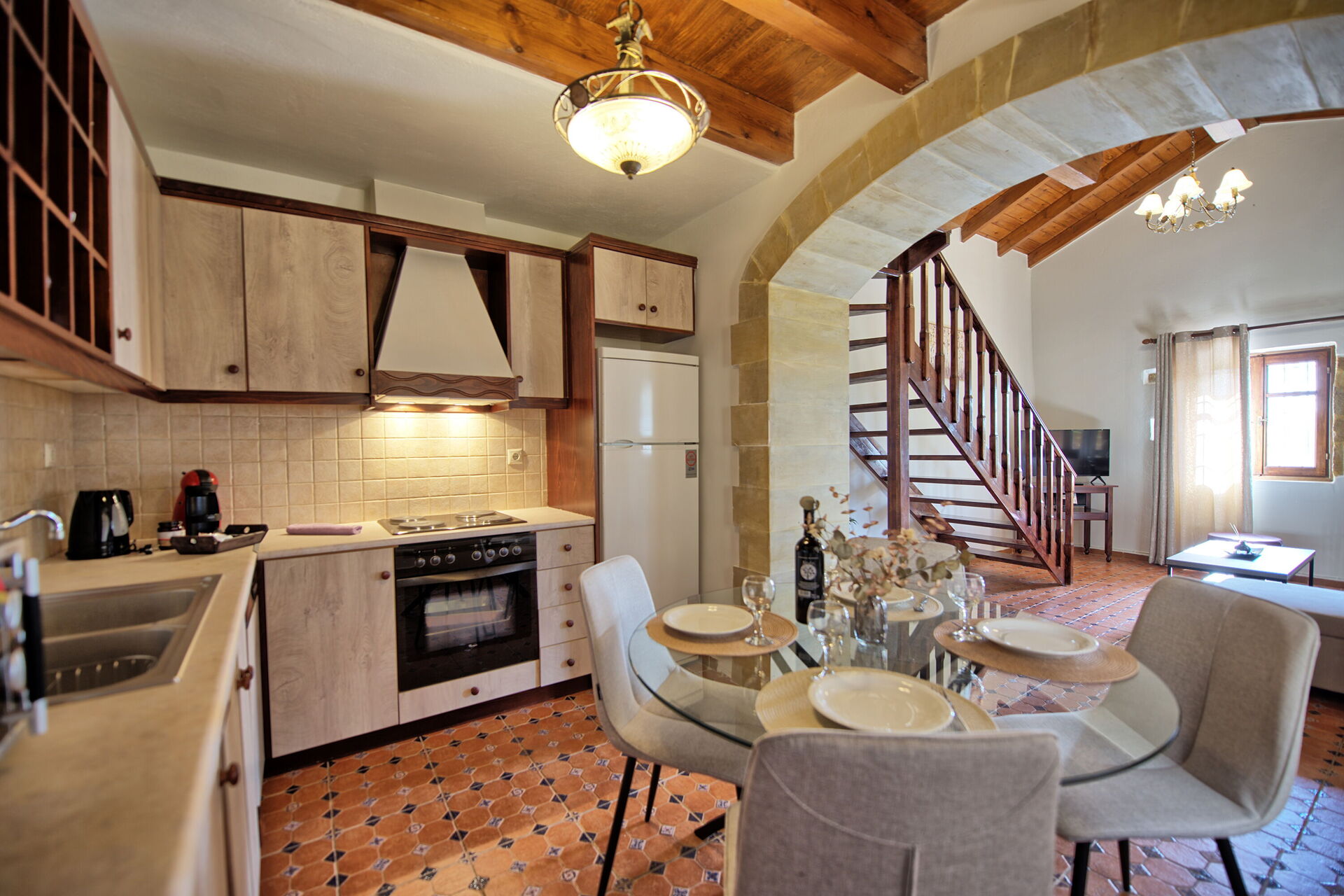 Interiören är klar till en hög standard, med inslag av antikviteter och moderna bekvämligheter (som fullständig luftkonditionering, jacuzzidusch, wi-fi, etc.). Köket är fullt utrustat (diskmaskin, tvättmaskin och alla vitvaror finns), vardagsrummet är romantiskt och inbjudande och sängarna är gjorda av fin bomull. Alla ingredienser för en oförglömlig semester!