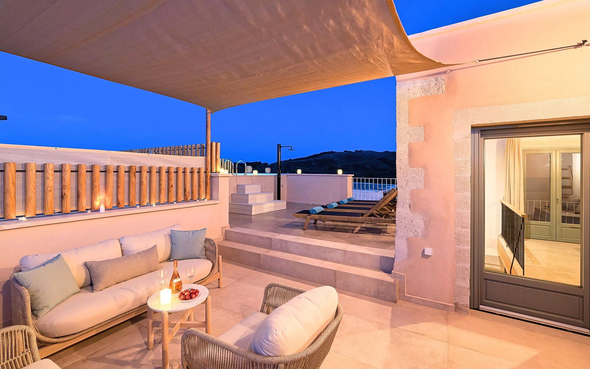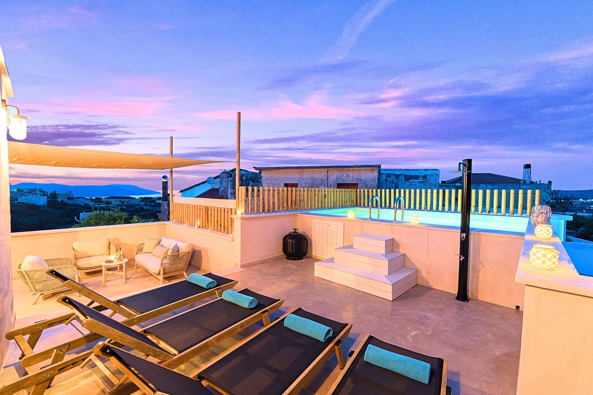 The photos are stunning and the place is even better. A beautiful property that is so well looked after and clearly a labour of love from the owners rather than just a business. There was plenty of room for our family seven and a nice layout to the place. Every little detail throughout had been well considered and everything was of a really high spec. Well above and beyond what we could have hoped. The pool on the roof a great addition to take the edge off the Cretan summer. The owners personally greeted us, were very friendly and made us feel so welcome. Can’t thank them enough for their hospitality. Kournas is lovely too. Very small and peaceful but still has three good tavernas within about a minute’s walk from the property. Would highly recommend to anyone.