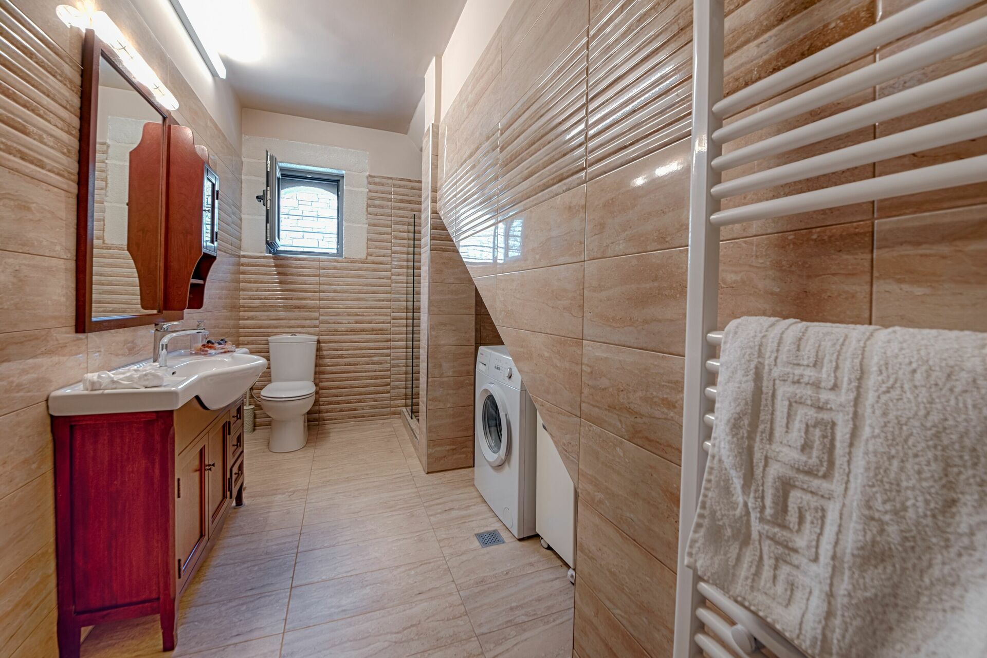 The house is new, spacious, very clean, airco is silent and works really well, beds are big and comfortable, master bedroom has an extra long bed so very comfortable for taller people like me. Outside you will find beautiful gardens all around the house which are full of beautiful plans and flowers. The swimming is fantastic, it's very big and the area around is very spacious, there is also a play area for the little ones. There is a covered outside kitchen with a BBQ which we didn't use to avoid fire risks, attached there is also another WC so you don't have to enter the house every time. The villa has beautiful views although there are still a few villas under construction in front but that didn't bother us at all. On the property you will find lots of olive trees and dozens of different fruit trees, they are all maintained by the owner Tony, ask him for a little tour and he will be happy to show you around. The villa is located just outside a small village, there is a restaurant/pizzeria just a 6 minutes walk, they don't have a big menu but all they make is fresh and delicious and at a very good price. Otherwise a 5 minute drive to Vamos and you will find several more restaurants, minimarket and bars. There are many beaches nearby, the 2 closest ones are both about 15-20 min drive, one is in Almirida, this one is smaller and can get a bit crowded. The other one is towards Georgioupoli, here you will find a small beach in the town, this one is very crowded, but if you drive a bit further you will find a huge beach (Peristeras Beach) with plenty of space, beautiful water and many bars and restaurants. We advise a place called Giorgiali, they have free sunbeds (just consumption), shower, toilet and a nice restaurant, we often spent the morning in the villa and the afternoon at the beach ending at the restaurant Giorgiali (beach dinner with a wonderful sunset). Other place to visit is Chania, very beautiful harbour, ask Tony and Debbie for directions. We totally recommend this property and will definitely come back!