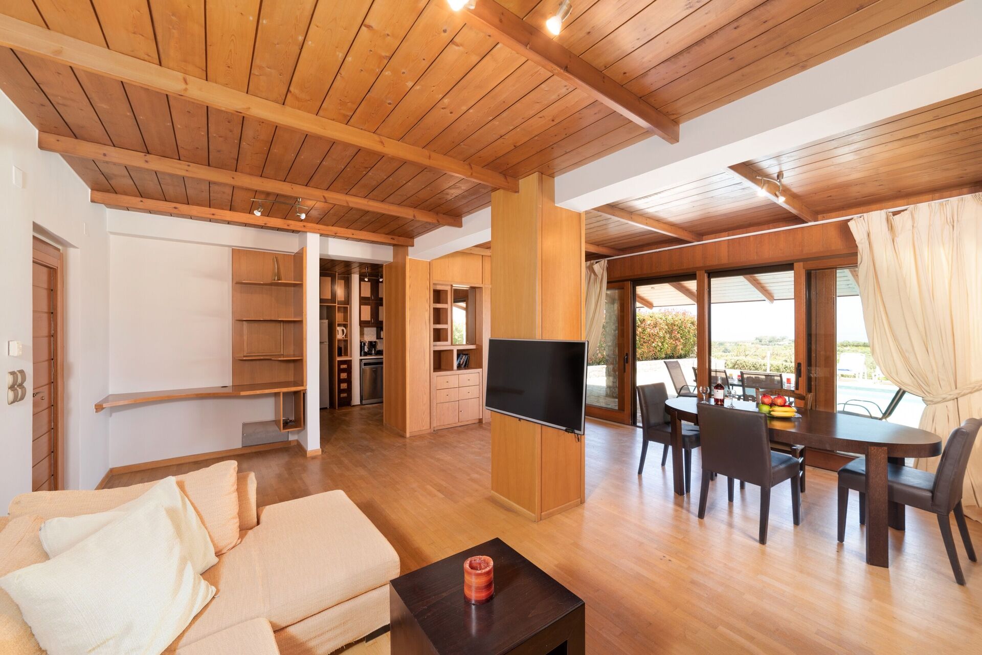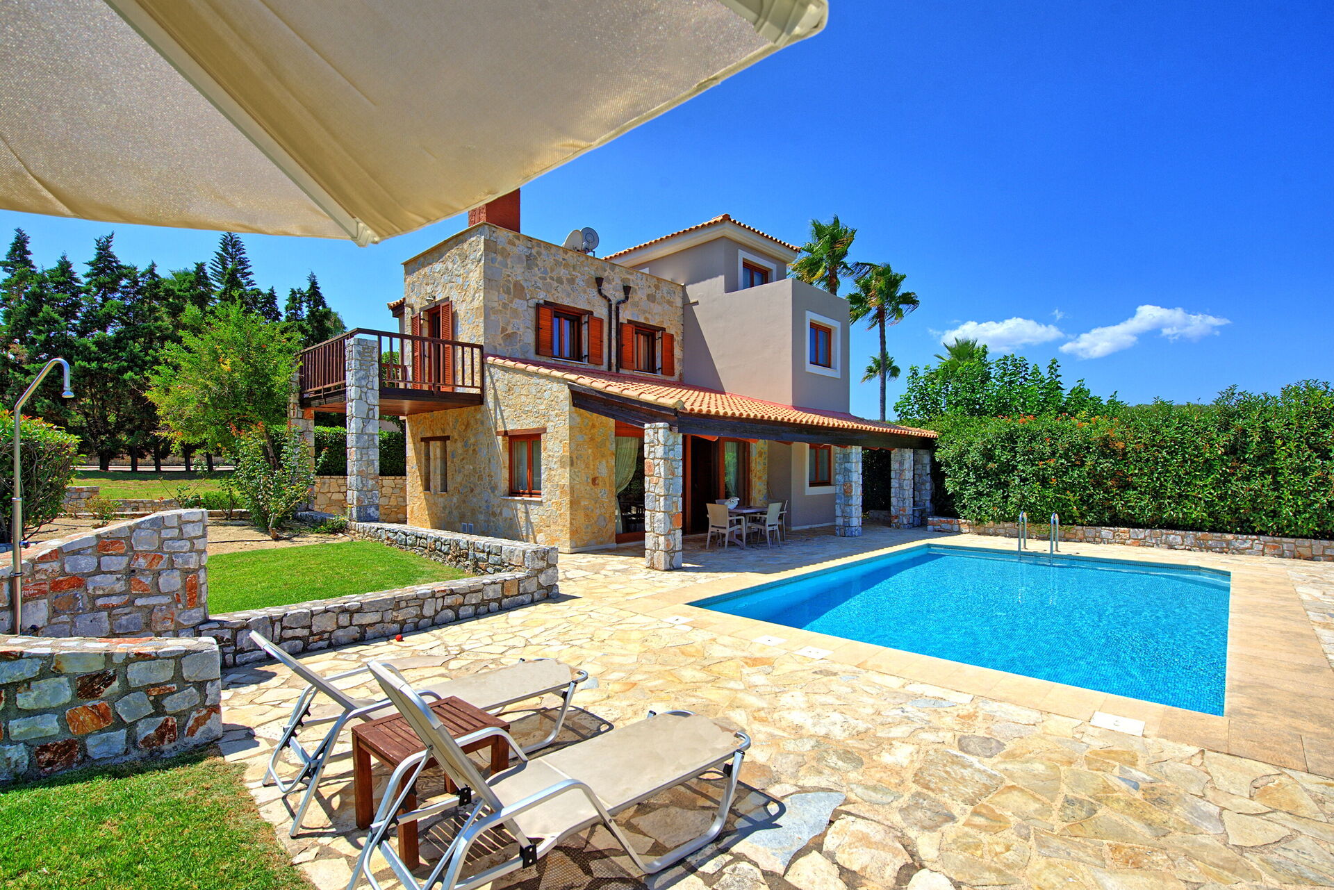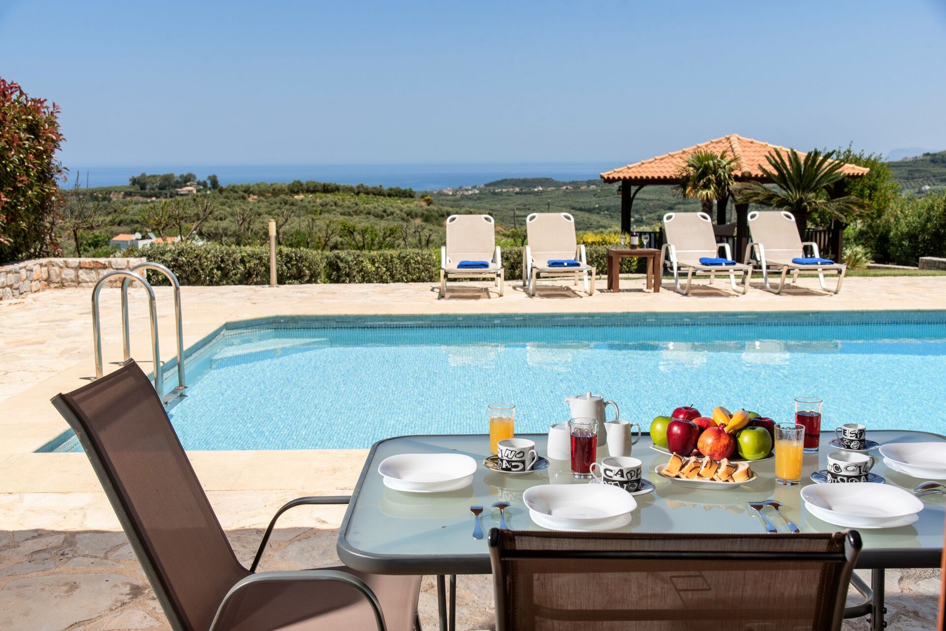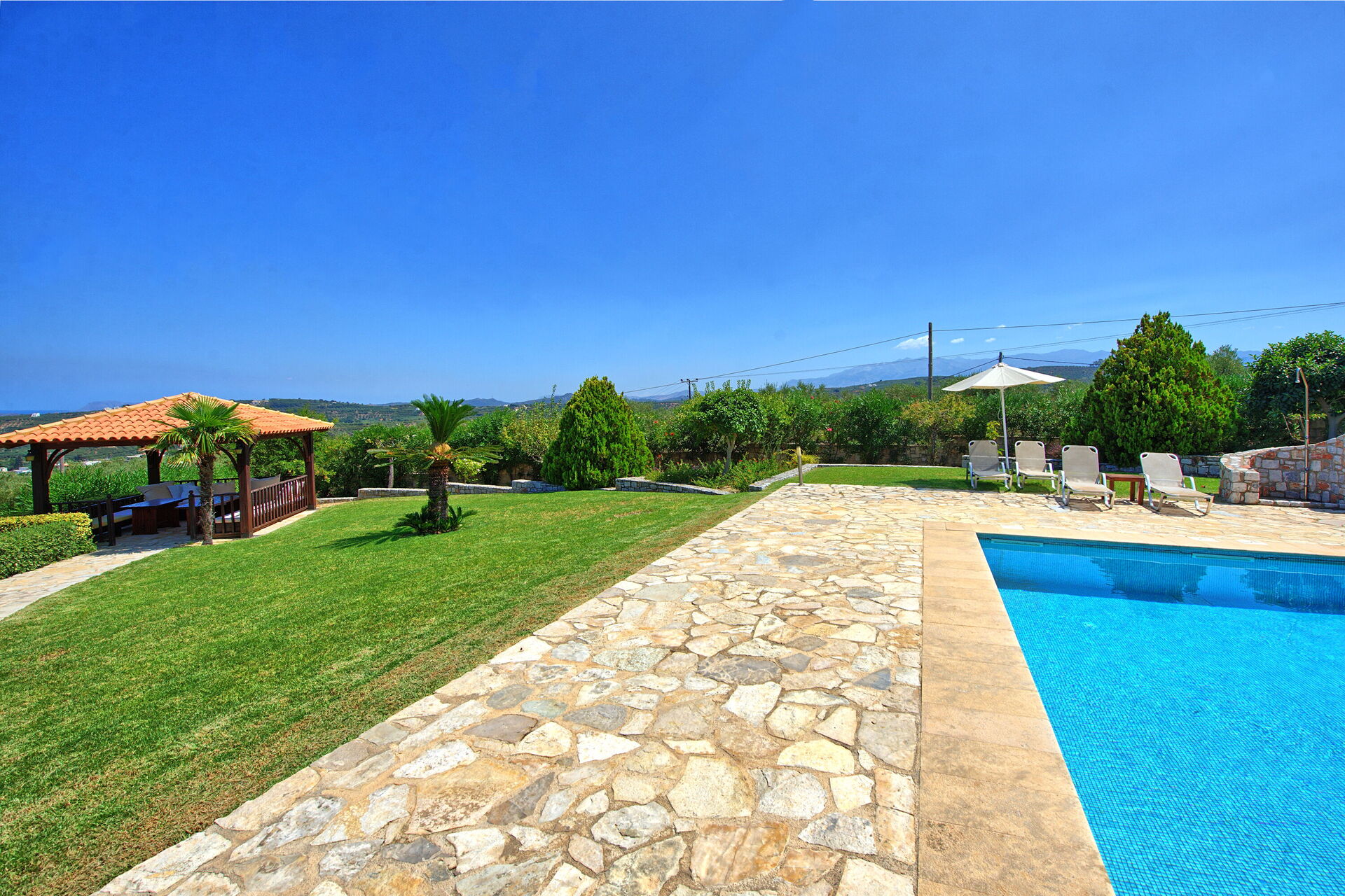 The villa and the yard is wonderful. The view is also very beautiful and the surrounding villages are filled with tavernas and wineries so you can find every night some where new to eat and drink.