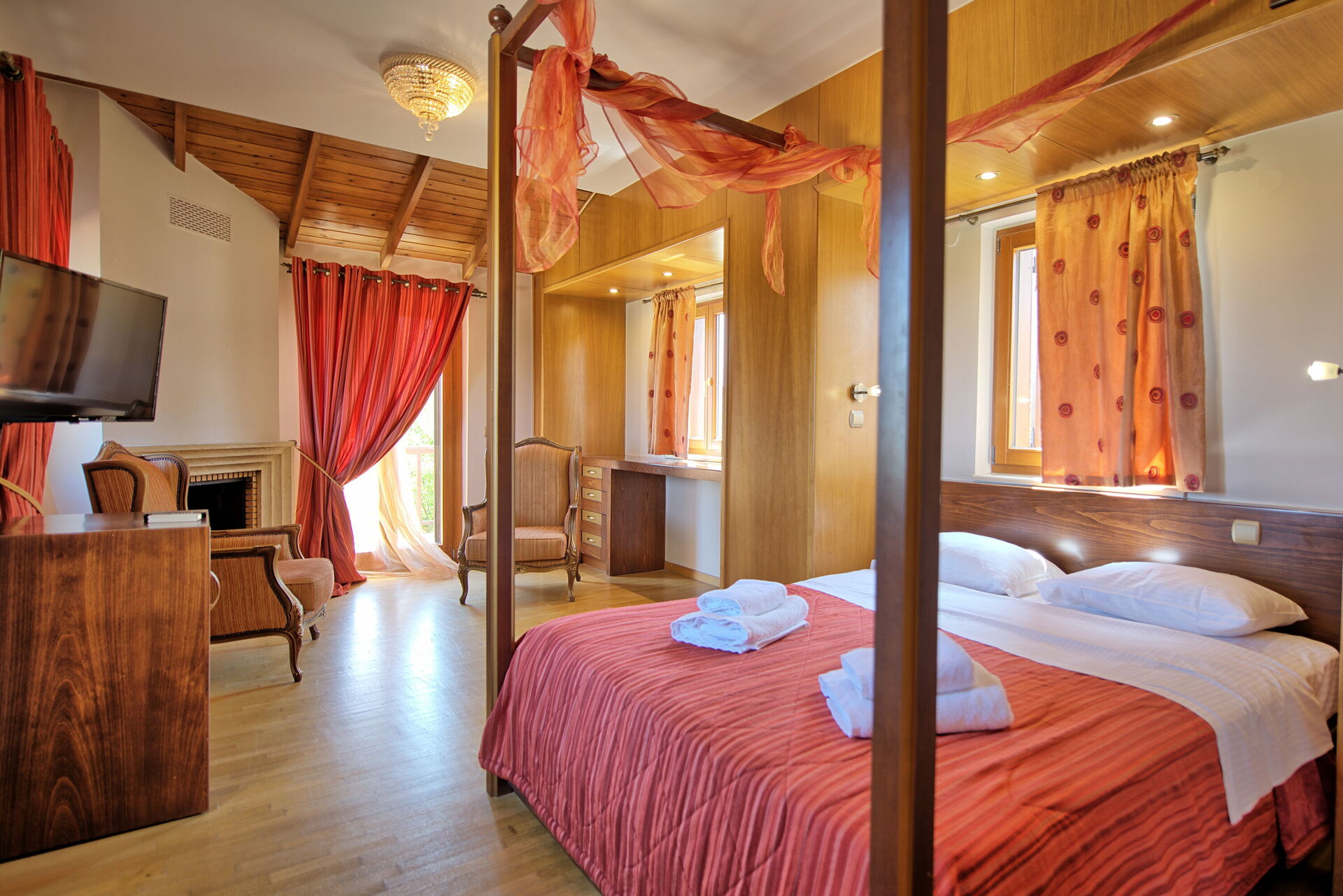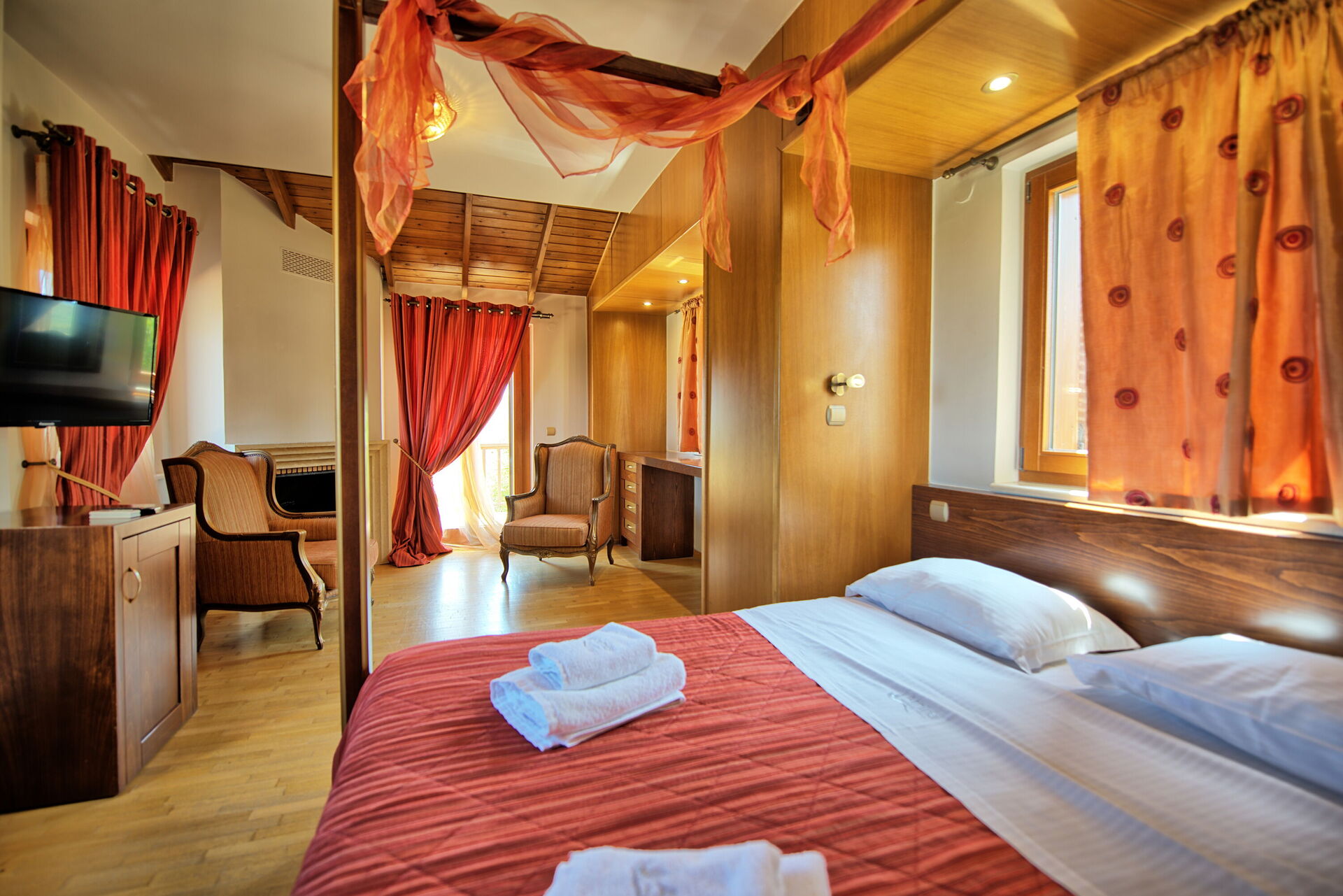 Dubbelrum (king-size, himmelssäng), badrum med bubbelpool.