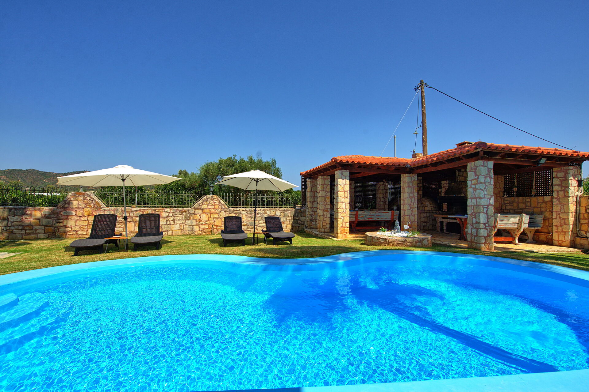 Very nice and calm area, big garden, great terrasse and barbecue area. Even with 10 people you can find easy an area to relax or have fun in the pool. Inside is comfortable with big salon to cool down and nice kitchen area. Chania, Beaches, mountains, local greek taverns are all around the corner, best to rent a car and/or scooter