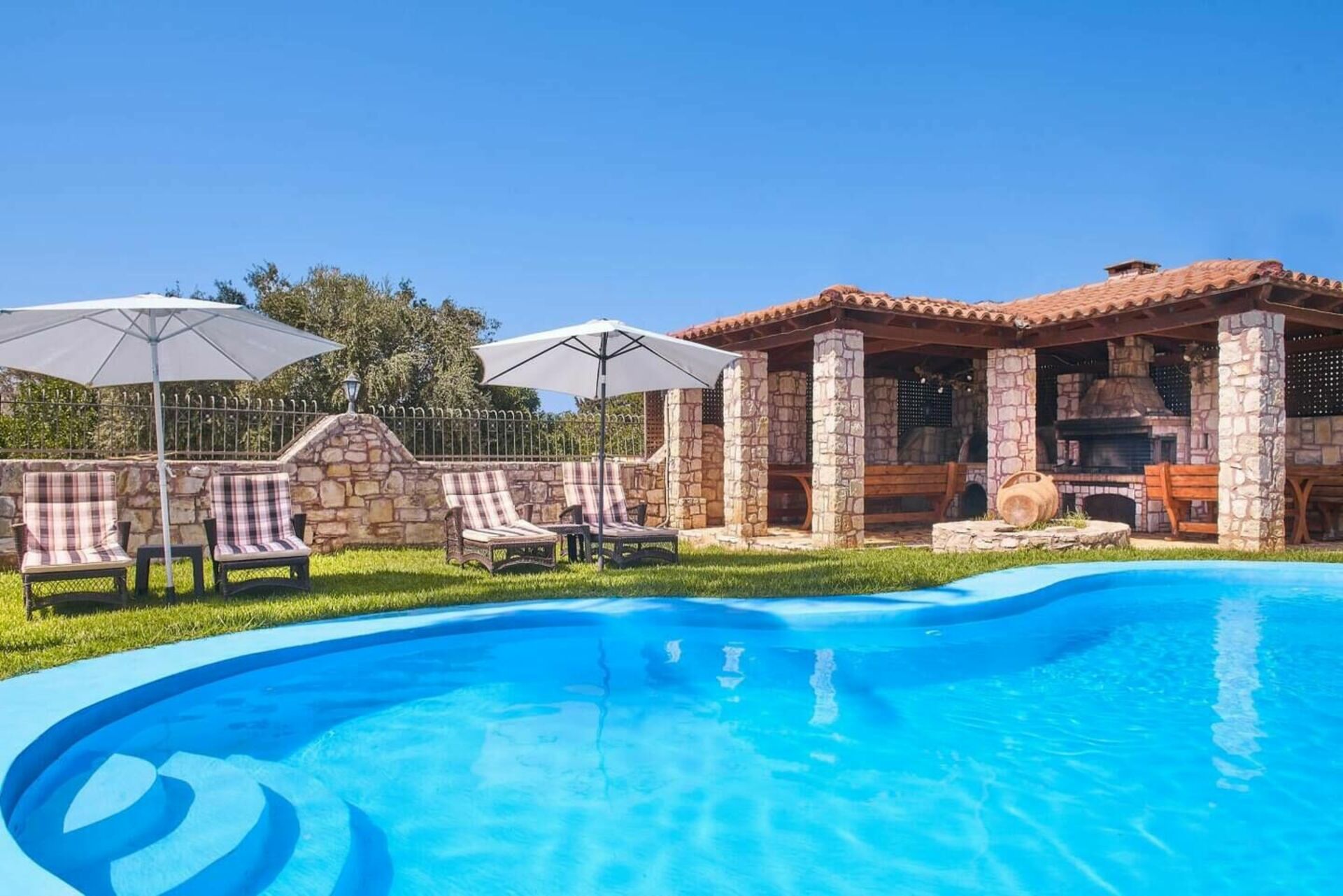 We would recommend staying here. The living are and pool are clean. We got great use out of the bbq and pizza oven in the beautiful outdoor eating area. A small supply of food cupboard stuff and wine was there on arrival which was appreciated. Our host was available through the week and eager to help. Very good.