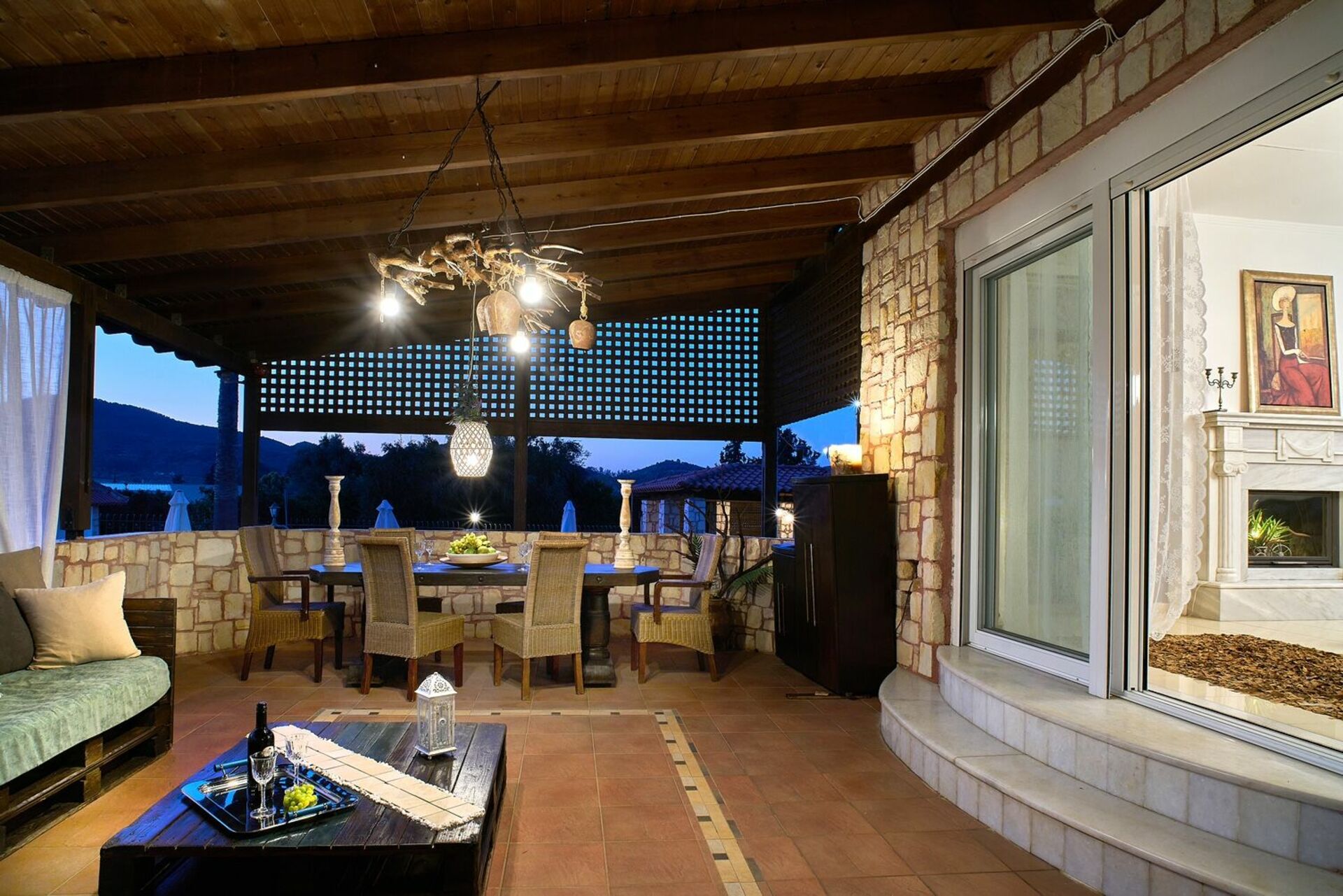 - Täckt terrass med utemöbler