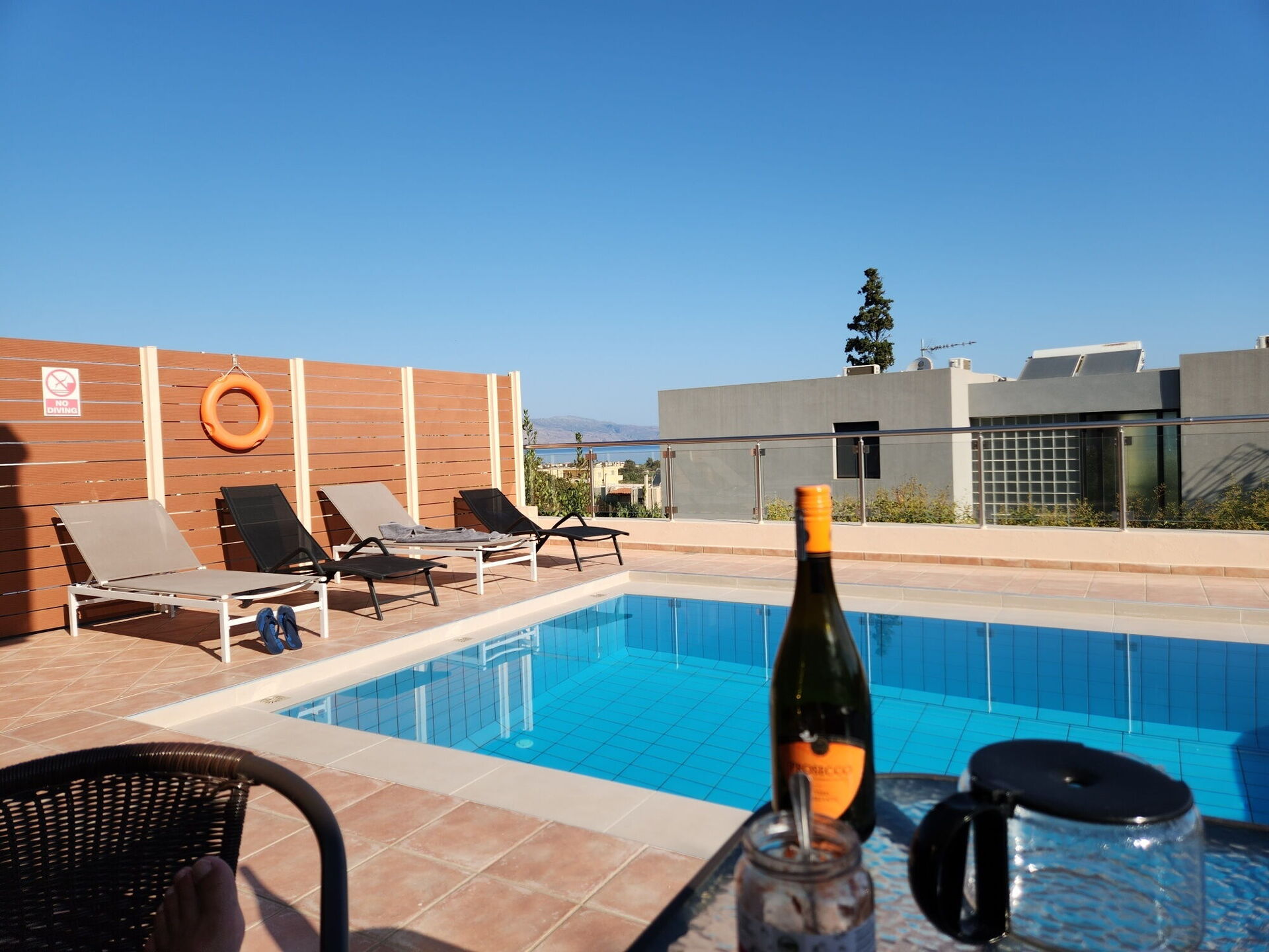 Ottimo appartamento, moderno, spazioso e dotato di ogni icomfort. Pulizia eccellente. Ideale anche per due famiglie. Buona la posizione + o meno un ora di auto dalle spiagge + belle. La città di Chania è a circa una ventina di minuti. Ristoranti e bar nelle vicinaze. Indispensabile in ogni caso avere un auto per muoversi. Bella la piscina ad uso esclusivo pulita e con una vista Top!!! Proprietario super disponibile ed efficiente. Consigliato per trascorrere una piacevole vacanza a Creta.
